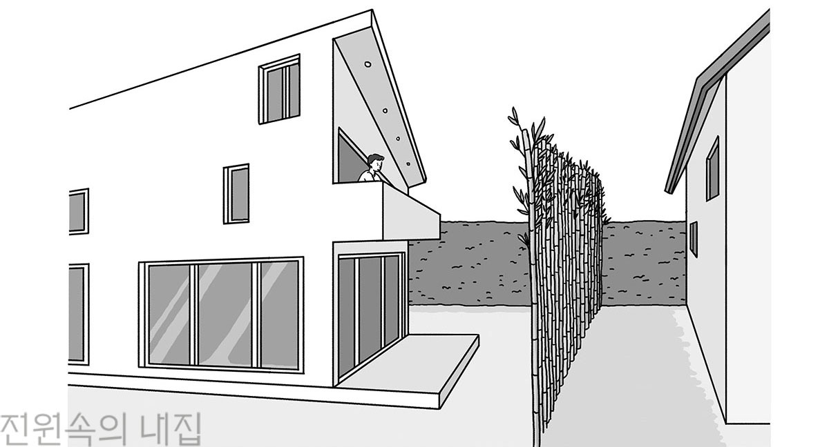 프라이버시 확보를 위해 심는 생울타리는 대개 사람 어깨높이 정도로 키웁니다. 2층 창을 통해 나무를 감상하거나 중정에 키 큰 수목을 심고자 하는 건축주는, 생울타리로 주로 쓰는 측백이나 향나무 외 대나무나 자작나무를 떠올리게 되는데, 이 경우 고려해야 할 점이 있습니다.