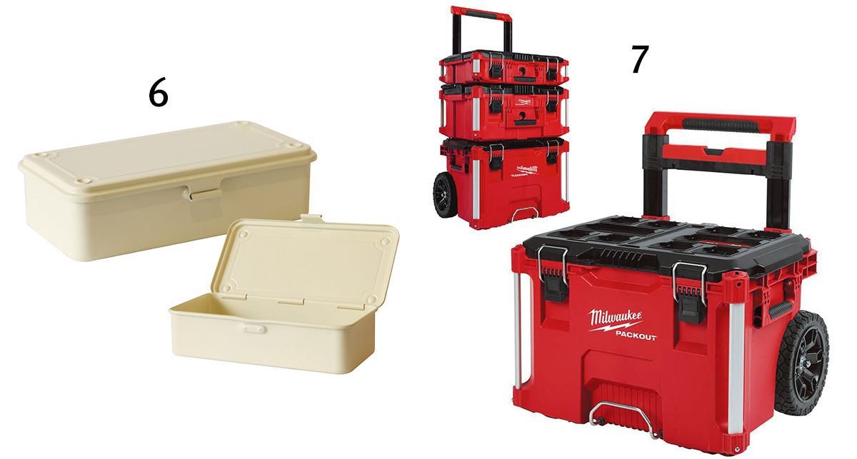 7 다양한 크기의 박스를 필요에 따라 결합해 사용하는 ‘팩 아웃’ 방식의 롤링 툴박스. 작업 현장에 최적화된 제품이지만, 집 안에서는 유니크한 인테리어 소품으로 변신한다. Milwaukee