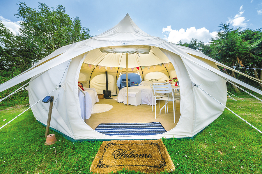 건축가그룹 ‘건축공방’이 설계한 이 텐트는 화장실과 샤워실을 포함한 신개념 럭셔리 텐트다. 13평형(모듈러)과 15평형(도넛형) 두 가지 타입으로 제작·판매한다. 글램퍼스 http://cafe.naver.com/frhouseofmind