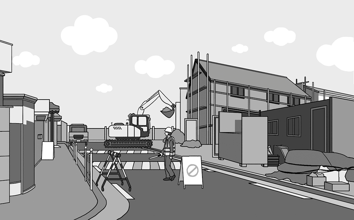 그중에서도 진입로 형성 시에는 도로점용허가라는 것을 받아야 합니다. 도로점용이라는 말부터 풀어보자면, ‘도로 구역 안에서 어떤 시설을 신설, 개축, 변경, 제거하거나 그 밖의 목적을 위하여 도로를 차지하여 사용하는 일’을 가리킵니다. 그리고 이는 도로법 제61조에 근거해 도로점용을 하고자 하는 자는 관리청의 허가를 받아야 함을 뜻하기도 합니다. 통상적 집짓기에서 이에 해당되는 사례는 도로 인접 대지에 건축물을 지을 때, 그저 도로일 뿐이었던 곳의 일부, 인도를 통과해야 주차장으로 진입로를 낼 수 있는 경우입니다.