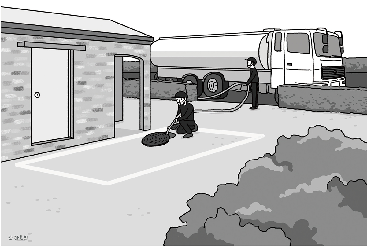 정화조 청소는 ‘주말주택이라 적게 쓰니 오래 뒀다가 청소해야지’하는 식으로 청소 주기를 임의로 바꿀 수는 없습니다. 청소는 ‘하수도법 제39조’나 ‘하수도법시행규칙 제33조’ 등에 규정되어, 규모가 큰 시설이나 관광숙박 등의 목적일 때는 6개월 내에 1회, 일반적인 단독주택의 경우 연 1회 이상 청소를 해야 합니다. 이를 지키지 않으면 100만원 이하의 벌금에 처할 수 있습니다. 그렇다고 정화조 청소에 아주 민감해 할 필요는 없습니다. 준공 후 1년쯤 되면 지자체로부터 지역마다 형식은 다르지만, 청소 요금과 구역별 정화조 청소업체 리스트가 담긴 안내문을 받게 됩니다. 이때 안내문에 나오는 청소업체에 연락해 청소 일자나 시간 등을 조율하고, 청소업체가 와서 건축주 입회하에 청소와 분뇨 수거를 진행하도록 합니다.
