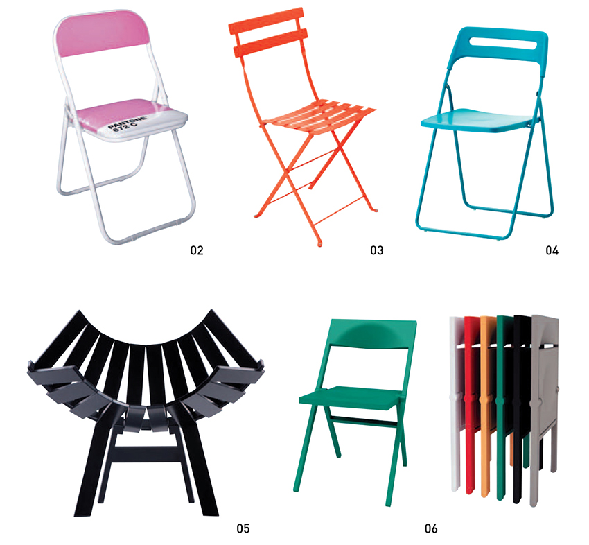 02 PANTONE Metal Folding Chair는 상큼한 컬러가 눈에 띄는 제품이다. 등받이와 시트가 PVC 소재로 제작되어 편안한 착석감을 제공한다. 이탈리아 브랜드 Seletti社 제품으로, 컬러는 10가지. 44×45×79(㎝) rooming(02-6408-6700)