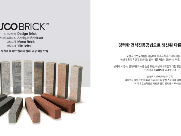 다른 차원의 독특한 컬러의 실내·외장 벽돌 탄생 강력한 건식진동공법으로 생산된 다른 차원으l Brick 오랜 시간 연구개발을 거듭하며 우수규격 콘크리트 제품 생산에 힘써온 40년 전통의 유한이 선보이는 전혀 다른 차원의 콘크리트 벽돌 유코브릭 (UcoBrick) 설계사, 시공사, 건축주들의 수준 높은 취향, 혁신과새로움에 대한 갈증을 충족시키기 위한 첫걸음 신개념의 유코브릭을 소개합니다. https://smartstore.naver.com/vdrdid