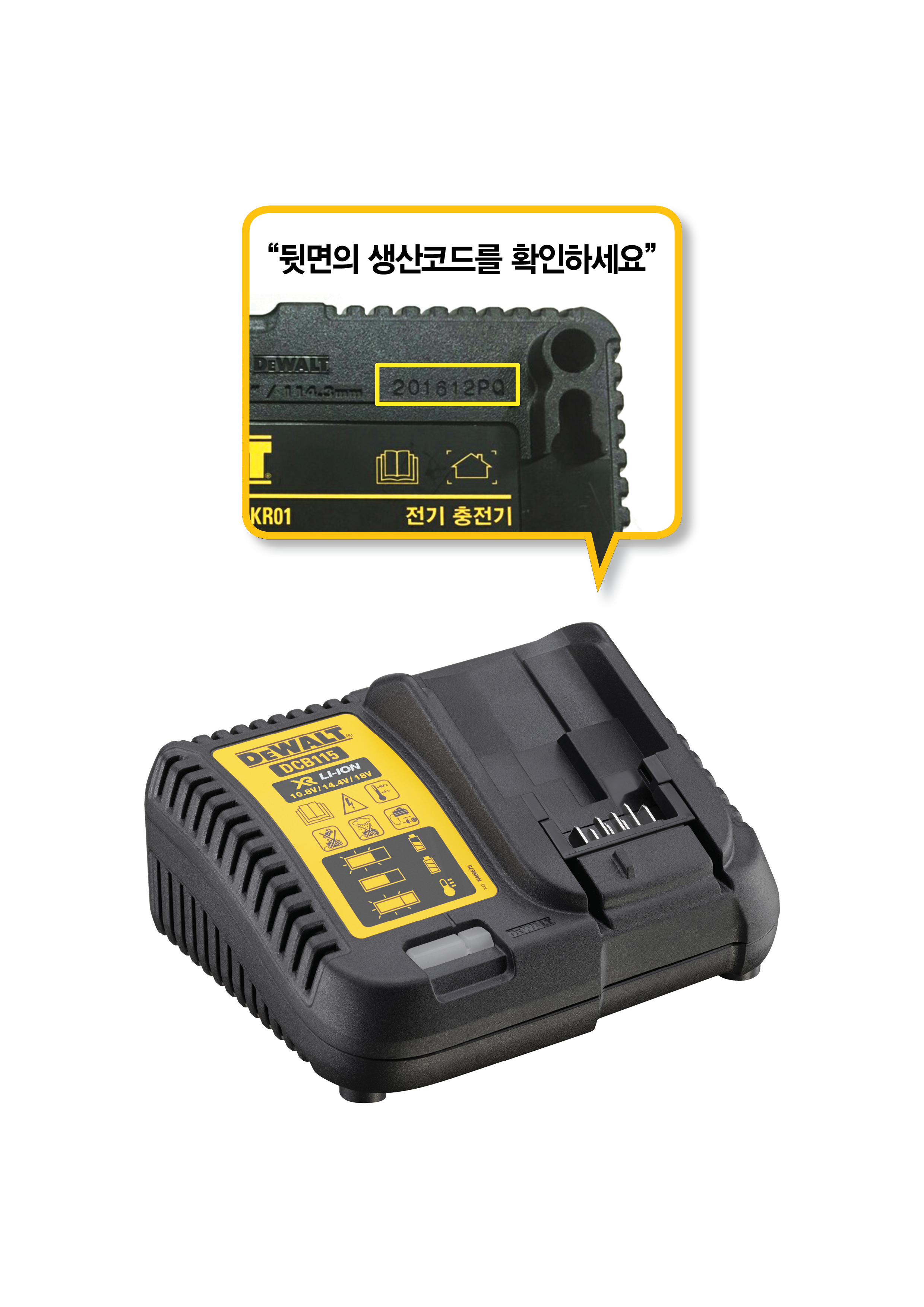 지난 4월 이후 디월트 멀티충전기를 구매한 소비자는 해당 제품 하단의 생산코드(201612PQ)로 보유중인 제품이 점검 대상에 포함 되는지 확인 할 수 있으며,