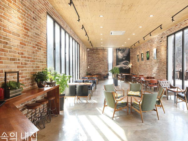 오가는 차량이 많지 않은 한적한 도로변, 하얀 건물 한 채가 놓여있다. 문틈으로 새어 나오는 진한 커피 향은 그곳이 카페임을 짐작게 한다.에르고 커피 내부 전경길 건너에서 바라본 단층의 카페 전경커피와의 인연에그로 커피 이정빈 대표가 커피 사업을 본격적으로 시작하게 된 건 13년 전. 그리 거창한 계기는 없었지만, 좋아하는 일을 할 수 있는 것만으로도 힘이 나던 때였다.“2006년이니 꽤 오래전 일이네요. 그때만 해도 커피 체인점이 많지 않았어요. 그래서 프랜차이즈화를 생각하고 서울 홍대 앞에 ‘1호점’이라 할 수 있는 카페 하나를 오픈했어요. 당시 24시간 문을 열었는데, 장사가 너무 잘 되었죠. 그러다 보니 건물주로부터 가게를 뺏기다시피 쫓겨나게 되었고요.”ELEVATION외관은 가장 단순한 형태를 취해 자연과 어우러지도록 디자인했다. / 건물 뒤편에 놓인 넓은 데크. 옆으로 흐르는 실개천의 물소리에 반해 이곳에 카페를 짓게 되었다고.따뜻함이 녹아든 카페 내부. 데크와의 연결부에는 폴딩도어를 설치해 두 공간이 서로 소통할 수 있게 했다. HOUSE PLAN대지위치 ▶ 경기도 양평군 | 대지면적 ▶ 660m2(200평)건물규모 ▶ 지상 1층 건축면적 ▶ 198m2(60평) | 연면적 ▶ 198m2(60평)건폐율 ▶ 30% | 용적률 ▶ 30%주차대수 ▶ 10대 | 최고높이 ▶ 4.8m구조 ▶ 기초 – 철근콘크리트 매트기초 / 지상 – 철근콘크리트(벽), 무근콘크리트(지붕) 단열재 ▶ 비드법단열재 2종3호 120mm외부마감재 ▶ Sto 외단열시스템내부마감재 ▶ 미송합판, 파벽돌, 수용성 에폭시, 던에드워드 친환경페인트담장재 ▶ 디자인 블록 쌓기 | 창호재 ▶ 폴딩도어데크재 ▶ 방부목 구조재 38mm설계·시공 ▶ 에그로 커피(EGRO COFFEE) 이정빈 010-6377-6255 bean0725@hanmail.net에그로 커피 원두로 만든 라테와 당근케이크 / 화장실은 선명한 오렌지와 블루 컬러를 입혀 포인트를 주었다. 카페 인테리어는 목재와 파벽돌로 아늑함을 살렸다.본인이 직접 설계·시공한 카페에서 여유를 즐기고 있는 이정빈 대표. 많은 이들이 이 공간에서 행복을 느꼈으면 좋겠다고 소회를 밝혔다. 여러 상황이 겹치며 상처받은 그는 결국 커피 관련 일을 접었다고 했다. 이후 마음을 다잡고 제주에서 건축업을 시작했지만, 그조차도 잘 풀리지 않았다. 쉴 곳이 필요해 다시 찾게 된 것이 바로 지금의 ‘에그로 커피’. 돌이켜보면 커피 향이 머무는 공간을 통해 마음의 위안을 삼고 싶었던 것 같다는 그다.다시 일어선 만큼 작은 부분에도 많은 신경을 기울였다. 도심을 벗어나 전원에 마련하는 카페였기에 건축적인 부분을 꼼꼼히 체크하는 것도 잊지 않았다.“길을 가다 기대 없이 우연히 들렀지만, 나갈 땐 또 오고 싶다는 마음이 들길 바랐어요. 그저 단순한 카페가 되는 것은 원하지 않았죠.”PERSPECTIVE PLAN(1F – 198㎡) ①주차장 ②옥외데크 ③카페 홀 ④카운터 ⑤입구 ⑥창고 ⑦화장실 높은 층고의 천장까지 길게 이어진 세로창은 바깥 풍경을 고스란히 담아낸다.카페, 그 너머의 공간계절마다 아름다움을 더하는 양평 용문사로 가는 길. 경치 좋은 그곳에 에그로 카페가 자리한다.“아무래도 카페는 다른 상업공간에 비해 인테리어가 중요해요. 그래서 내·외부 모두 누구나 좋아할 수 있도록 심플함을 콘셉트로 잡았고요.”자연과 어우러지고, 동시에 그 속에서 돋보일 수 있게 건물은 직선적인 형태와 화이트 컬러로 단순하게 표현했다. 반면, 내부는 들어왔을 때 편안함이 느껴지도록 노출형 천장을 피하고 목재와 파벽돌을 사용해 따뜻한 공간을 완성해주었다. 필요에 의해 천천히 꾸민 공간이 그렇듯, 에그로는 거추장스럽지 않고 커피를 마시며 여유를 즐기고 싶은 이들에게 더할 나위 없이 좋은 장소가 되어준다.심플한 건물이라 출입구 부분만큼은 각도를 조금 틀어 외관에 변화를 꾀했다. 화장실과 이어진 벽면에는 그동안 모아둔 빈티지 아이템을 놓아 밋밋한 공간에 재미를 더했다.깔끔하게 정돈된 카운터 쪽 모습“커피를 좋아하는 많은 사람이 이곳에서 향과 맛을 즐기는 것을 넘어 시각적인 기쁨도 누린다면 얼마나 멋질까, 그런 생각을 했어요. 커피도 마시고, 그림도 감상하고, 조용히 책도 읽을 수 있는. 힘들 때 모든 생각을 내려놓고 사람들과 즐거움으로 마주할 수 있는 복합 공간 말이죠.”이 대표는 현재 건물 옆 200평의 대지에 갤러리와 베이커리를 지을 계획이다. 이미 설계안은 나왔고, 4월에 착공해 6월 오픈을 목표로 하고 있다. 사람들이 다양성을 바라는 만큼 다른 여러 가지 문화 형태와 결합한 공간을 만들고자 한다.“뜻이 맞는 이들과 함께 좋은 땅에 이런 장소를 많이 선보이고 싶습니다.”질 좋은 커피, 아늑한 분위기, 한적한 자리에 앉아 흘러나오는 음악을 들으며 보내는 시간. 그 찰나는 이곳, 에그로 카페에서 보낼 수 있는 가장 좋은 순간이다.취재협조_에그로 EGRO경기도 양평군 용문면 용문산로 255 www.egrokorea.com취재_김연정| 사진_변종석ⓒ 월간 전원속의 내집 /www.uujj.co.kr