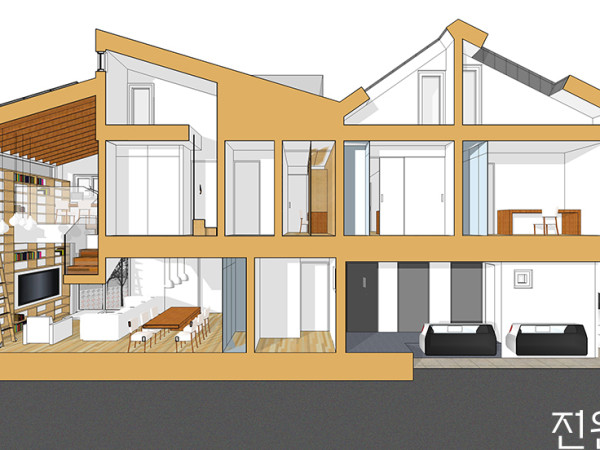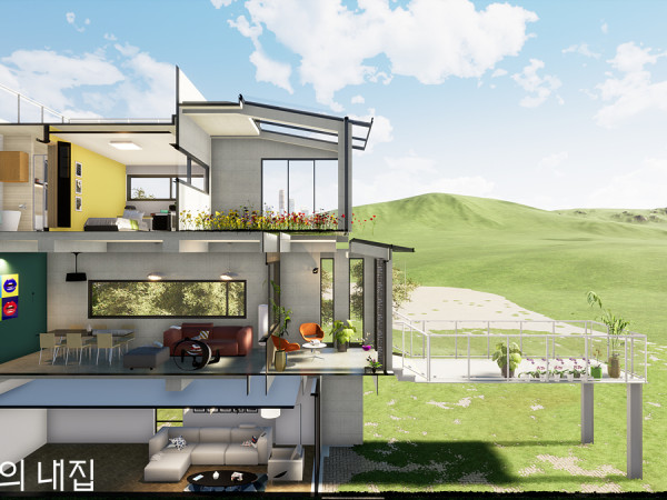 우리 시대 ‘집’의 가치가 변하고 있다. 혼란스러운 부동산 시장에서 진정한 내 집 마련의 의미, 그리고 정답은 아니지만 하나의 방법으로서의 가이드를 제시한다. 직접 땅을 사고 설계에서부터 시공까지 모든 과정을 직접 경험한 한 건축가의 집짓기 수기, 그 좌충우돌 분투기가 지금부터 펼쳐진다. 글 곽은선 건축가 정리 편집부 집 값 상승세의 종점이 머지않았음을 예측한 3년 전, 우리 가족은 내 집 마련을 위한 준비를 시작했다 한 아이의 엄마이자 야근과 철야를 밥 먹듯이 하는 일하는 여성, 그리고 온전히 우리의 힘으로 집을 마련해야 하는, 우리 주변의 평범한 가정 속에 내가 있다. 아이가 초등학교에 들어가고 이제 진짜 ‘내 집’을 마련해야 하는 시기가 왔고, 우리 가족은 아파트를 살 것인가 말 것인가 하는 고민에 빠졌다. 설계를 하는 건축가로서 획일적인 아파트는 이미 예전부터 그 가치 이상의 과잉가격으로 거래되고 있다고 생각해 왔다. 설령 지금 아파트를 사더라도 30년 후 배관이 낡거나 내외부가 노후화되어 리모델링이나 재건축을 하게 된대도 소위 ‘돈’이 안 되기 때문에 대형 건설사들이 이 일에 뛰어들기 힘들다는 판단이 들었다. 만약 재건축을 하게 되더라도 각 세대가 부담해야 하는 비용도 상당할 것이었다. 무엇보다 지금 당장은 경제활동을 하고 있지만 30년 후 노인이 된 주민 대다수가 마음이 맞아 아파트를 고쳐가며 살 수 있을까? 30년 후 슬럼화 될 가능성이 큰 아파트 장만을 위해 전 재산을 쏟아 붓고, 거기에 대출금을 갚기 위해 10~20년의 삶을 은행에 저당 잡혀 살고 싶지는 않았다. 게다가 내가 내는 돈의 상당 부분은 건물의 가치가 아닌 건설사 영업의 꽃인 ‘아파트 브랜드’의 가치 아닌가! 아파트 전셋값으로 서울 시내 한복판에 내 집을 마련할 수 있음을 보여주고 싶었다 하지만 아파트가 아닌 대안으로서, 도시 거주자들이 건물과 땅에 어느 정도 지분을 가질 수 있는건 다세대나 다가구 뿐이다. 이들은 우리 도시에서 쉽게 볼 수 있는 주거형태이지만, 저급한 재료를 사용하고 층간소음과 단열, 방수 등의 문제로 ‘돈이 넉넉하지 않은 서민이 사는 곳’이라는 사회적 인식을 지우기가 어려운 것이 사실이었다. 건설업자의 돈벌이에, 건축주의 공사비 절감, 그리고 건축 설계자의 공장에서 찍어내는 듯한 설계의 삼박자가 지금의 주택가를 ‘그곳에 살면 춥고, 가난하고, 아파트보다 열악한 주거’로 사람들 머릿속에 심어 놓았다. 닭장 같은 아파트보다 드라마틱해야 할 그 공간을 열악한 환경으로 만든 현재 주택가의 모습에 우리 모두가 반성해야 한다. 그래서 나는 건축가로서, 한 가정의 구성원으로서 사회의 허리를 이루는 중류층과 서민이 따뜻하고 조용하게 살아갈 수 있는 내 집을 만들어야겠다고 다짐했다. 무엇보다 내 아이가 브랜드 아파트에 살지 않더라도 무시당하지 않고, 행복하게 추억을 쌓아가며 건강하게 커갈 수 있는 공간을, 아파트 전셋값으로 서울 시내 한복판에 마련할 수 있음을 보여주고 싶었다. 값싼 땅의 문제를 디자인으로 극복하다 그리하여 우리 가족 총 12명, 3세대가 모여 사는 현대판 대가족이 서울 상도동에 자리를 잡았다. 아이의 육아를 위해 함께 거주할 시어머니와 남편의 외할머니, 그리고 큰시누이와 큰조카가 한 세대를 이루고, 우리 부부와 초등학교에 입학하는 아들이 두 번째 세대를 구성한다. 마지막으로 둘째 시누이 부부와 세 명의 어린 조카가 세 번째 세대를 이룬다. 우리가 모여 살 집을 짓기 위해 1년간 땅을 알아보았고 2011년 말, 시세보다 저렴하게 상도동에 평당 850만원에 40평 대지를 사게 되었다. 대개 가격이 싼 땅은 그만한 문제가 있다. 이 땅도 좁고 길며 땅 면적이 너무 작았다. 철거 전 대지도 도로보다 3m 가량 높았기 때문에 사업성이 떨어지는 부지였다. 1년간 3번의 설계를 변경하며 매달린 끝에 이 땅에 딱 맞는 최적의 디자인을 만들어낼 수 있었다. 주택은 지하 1층과 1층의 절반을 사용하는 A세대, 1층의 절반과 2층의 절반을 사용하는 B세대, 2층의 절반과 3층을 사용하는 C세대가 내부 계단과 화장실 벽을 경계로 각각 완벽하게 구분되며 3세대 모두 복층형 구조를 갖는다. 또한 지하 1층이 도로에 면하여 전면은 온전히 외부로 개방할 수 있다. A세대 지하층의 단점을 1층 테라스의 개방감으로 극복하다 지하 1층에는 3대의 주차 공간과 A세대 시어머니와 시할머니의 방, 화장실, 거실 및 주방이 위치하고 내부계단을 통해 1층으로 올라가면 큰시누의 방과 그녀의 아들 방, 화장실이 위치한다. 지하층이 갖는 단점을 1층 테라스 공간과 시야의 트임으로 극복하고, 한 곳에서 식사를 하면서도 각 구성원들의 프리이버시는 존중될 수 있게 구성했다. B세대 두 층을 어긋나게 사용하며 다양한 공간을 연출하다 주차장 후면에 위치한 외부계단을 통해 올라가면 B세대의 현관이 나온다. B세대는 1층에 거실 및 주방과 안방 1개가 위치하며, 내부계단을 통해 2층으로 올라가면 아이방과 서재가 나온다. 1층에 거실과 방과 연계되는 B세대의 테라스를 계획하였고, 2층의 서재에 외부 발코니를 계획하여 거주 공간을 내부에 한