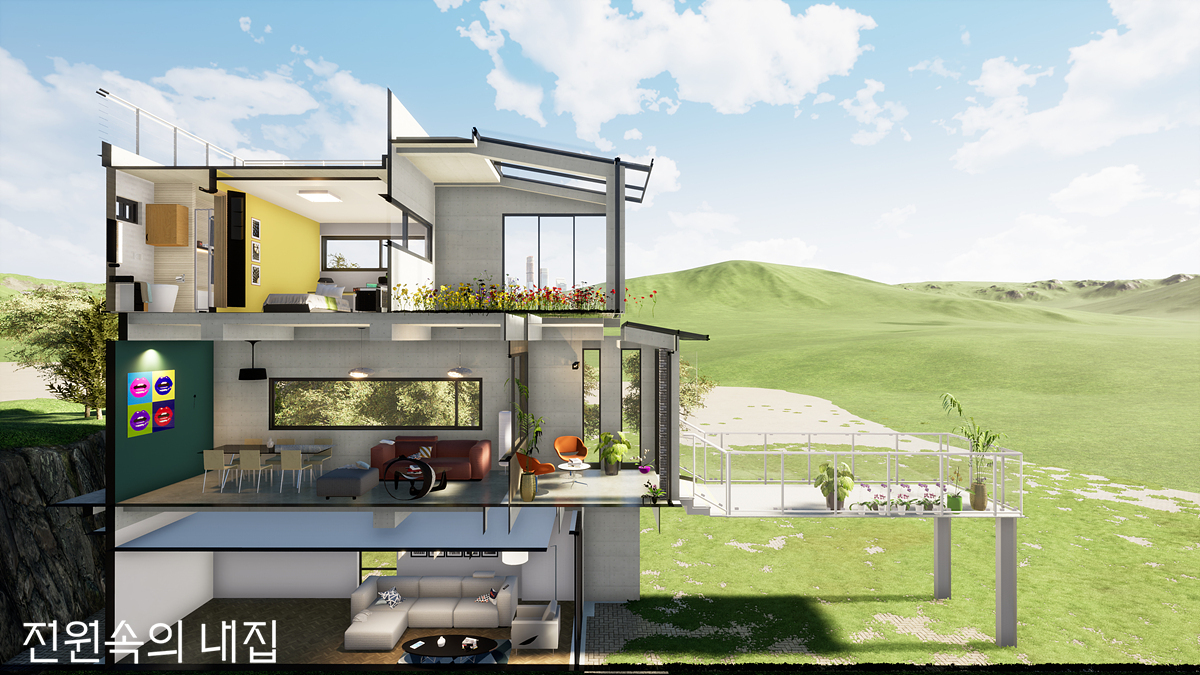 층에 따라 주택의 기능을 명확하게 분리하면서도 서로 유기적으로 연결되도록 했다.