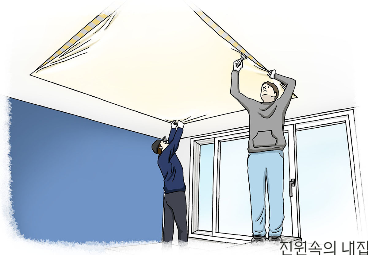 ▲ 조명 틀 제작과 시트로 마감하는 과정에서 숙련공이 필요하고 설치 시간도 짧지 않아 단가가 높습니다. 과거보다 가격이 많이 내려갔다고 하지만, 일반적인 거실 규모 공간에 부정형으로 설치하는 경우 150만~160만원대 비용이 예상됩니다.