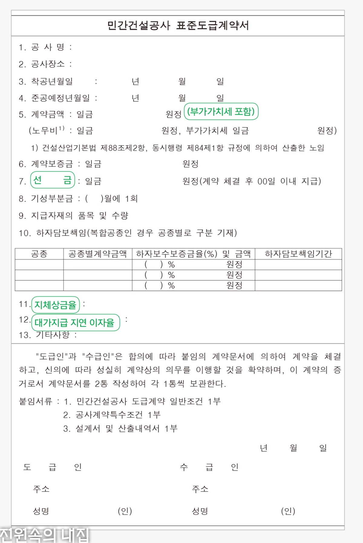 집짓기 계약서의 기본, 표준계약서