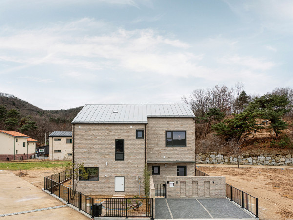 길 하나를 사이에 두고 남매의 집이 각각 들어섰다. 아이들을 위한 자유로운 공간에 건축의 부담을 줄인 임대세대를 같은 듯 다른 개성 있는 든든한 벽돌집에 차곡차곡 쌓았다. ARCHITECT’S SAY 건축할 대지의 상황이 허락한다면 다양한 모양의 단독주택 같은 느낌의 다가구주택 건축이 가능하다. 예산 부담 때문에 작게 건축하기보다는 임대라는 방법을 통하여 건축비를 확보해 제대로 된 건축을 하는 게 길게 보면 좋은 선택이다. 거주성과 임대성을 고려하여 임대세대는 단기 렌트에 적합하거나, 신혼부부 정도에게 장기임대를 줄 수 있는 크기로 잡았고 각 세 가구 모두가 전용 출입구를 갖는 주택이 되도록 하였다. 전면 도로의 외부 시선으로부터 프라이버시를 확보하면서 갑갑함을 덜기 위해 벽돌 영롱 쌓기를 적용한 아늑한가. 왼쪽은 남동생네인 화목가, 오른쪽은 누나네인 아늑한가. 작년 봄 어느 날, 서울시 송파구에 위치한 위례 택지개발지구에 주택 2채의 설계를 의뢰받았다. 도로를 사이에 두고 서로 마주보는 필지였다. 건축주분은 딸 부부와 아들 부부에게 1채씩 집을 지어주고자 하였다. 남매 부부는 각각 어린 자녀를 키우고 있는 젊은 부부였고, 아파트가 아닌 주택에서 아이를 자유롭게 키우는 것을 꿈꾸며 이 땅을 만났다. 건축가 입장에서 택지개발지구가 어렵게 느껴지는 이유는 대지와 인접 필지의 컨디션이 거의 동일하기 때문이다. 참고할 context가 없다는 것이다. 두 집은 도로에서의 진출입 방향과 남쪽으로의 방향 외에는 땅의 크기, 모양, 경사도 등이 거의 같다. 지구단위계획에서 유도하는 경사지붕 설치 의무비율과 외벽마감재의 색상 제한도 모두 비슷한 느낌의 결과물들이 만들어질수 있도록 만드는 요인이다. 이번 프로젝트의 두 집 모두 건축비 절감과 건축주의 기호에 따라서 같은 외벽재료를 사용하는 것으로 정하였다. 따라서 비슷하면서도 다른 집을 만들어야 하는 것이 중요한 과제가 되었다. HOUSE PLAN *화 : 화목가, 아 : 아늑한가 대지위치 :서울특별시 송파구대지면적 :화-274.70㎡(83.09평) / 아-280.70㎡(84.91평)건물규모 :지상 2층거주인원(세대) :화-3명(부부 + 자녀1) / 아-4명(부부 + 자녀2) / 각 3세대(주인세대 + 임대세대2)건축면적 :화-136.38㎡(41.25평) / 아-140.12㎡(42.38평)연면적 :화- 215.35㎡(65.14평) / 아- 216.62㎡(65.52평)건폐율 :화-49.65% / 아-49.92%용적률 :화-78.39% / 아-77.17%주차대수 :3대최고높이 :화- .09m / 아-8.97m구조 :철근콘크리트구조단열재 :벽 - PF보드 90㎜ / 지붕 - 경질우레탄폼 220㎜외부마감재 :삼한 C1 점토벽돌내부마감재 :벽 – 친환경수성페인트, 실크벽지 / 바닥 –강마루욕실·주방 타일 :윤현상재수전 등 욕실기기 :아메리칸스탠다드주방·거실 가구 :현장제작조명 :건축주 직구계단재·난간 :애쉬집성목 위 착색 스테인현관문 :현장제작중문 :이건 자동중문방문 :현장제작창호재 :CERTES 알루미늄 창호열회수환기장치 :LG 휘센 천장 매립형 환기시스템에너지원 :도시가스조경 :건축주전기·기계·설비 :세원엔지니어링㈜구조설계(내진) :㈜전우구조시공 :㈜하음종합건설 박복선감리 :DSP건축사사무소 노경옥 / 한도시건축사사무소 김지한설계 :㈜테바건축사사무소 한상환, 이종혁, 이찬희 화목가의 외부 모습. 임대세대 출입구는 담으로 직접적인 시선을 차단해주고 주인세대 출입구와 동선이 겹치지 않게 배려했다. 아늑한가의 우측면. 주인세대 입구의 캐노피를 제외하곤 돌출 없이 담백하다. 아늑한가 주인세대 출입 동선의 계단실은 영롱쌓기 벽 틈새로 새어나오는 빛으로 자연스럽게 채광과 그림자 연출이 이뤄진다. 총 2층 규모의 주택은 1층에 임대 가구를 넣고, 2층에 가족이 거주하는 것으로 세대를 분리하였다. 다가구주택이지만 최대한 단독주택의 환경을 조성하기 위해, 공용계단실을 두지 않고 임대 가구와 진입 동선을 분리하여 프라이버시를 확보하였다. 내부는 거실의 천장고를 높이고, 거실 상부 오픈을 통해 다락과 공간적으로 연계시킴으로써 복층구조의 집을 만드는 것과 아직은 어린 자녀를 둔 부부가 자녀와 다양한 공간 추억을 쌓을 수 있는 집을 만드는 것으로 계획 방향을 설정하였다. 화목가 현관 앞에서 보는 복도와 다락. 정면으로는 욕실이, 좌우측으로는 침실과 안방이 놓였다. 지붕선을 따라 놓인 긴 화목가의 지붕창으로 주방은 풍부한 채광이 가능하다. 화목가의 거실. 왼편 아치 도어는 서재와 안방으로 이어지며 크게 안방-드레스룸- 복도-주방-거실-서재-안방으로 이어지는 순환동선을 이룬다. 남향인 ‘화목家’는 다락으로 오르는 실내계단이 평면의 중심에 놓이며 계단 주변으로 거실, 침실, 서재, 욕실 등의 단위 실을 배치했다. 이로 인해 필지 전면 방향인 남쪽으로 가장 넓게 거실과 주방을 배치하는 것이 가능했다. 거실은 남동쪽의 코너창을 통하여 청양산을 바라볼 수 있으며 창가에 앉아 햇살을 즐길 수 있도록 윈도우시트를 계획하였다. 실내계단을 중심으로 배치된 각실들의 문을 열어두게 되면 어린 자녀가 마치 운동장을 돌 때처럼 마음껏 모든 공간을 뛰어놀 수 있는 집이 된다. 계단을 통하여 다락에 올라가면, 옥상 테라스가 펼쳐진다. 