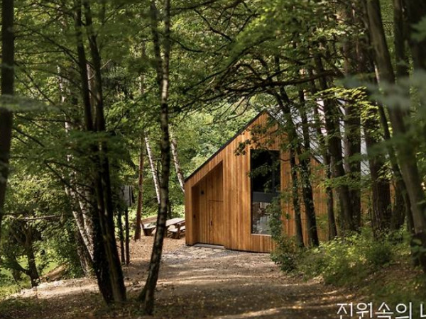 다양한 세계 주택 만나보기 34편MINIMALIST CABIN IN NATURE문명과는 잠시 거리를 둔 듯한 울창한 체코의 한 소나무 숲속.산만함을 덜어낸 공간이 주는 자유와 녹음 짙은 자연의 생명력이 충만한 가운데안팎의 나무로 인한 푸근함과 사우나의 상쾌함이 치유를 이루는 집이다.깊은 숲속에서 즐기는 스칸디나비아 스타일 휴식체코에서는 다소 동쪽으로 치우치고 수도인 프라하에서도 먼 지역인 소도시 리파. Adam Hofman과 Dominik Ilichman은 이 지역의 깊고 울창한 소나무 숲으로 찾아왔다. 이곳에서 두 사람은 끊임없는 소음과 단절하고 오롯이 휴식에 몰입할 수 있는 공간을 만들고자 했다. 바닥부터 차근차근 이웃과 친구, 그리고 지역 장인들과 협력해 1년이 넘는 기간 동안 몰입했다. 그렇게 만들어진 공간이 사우나를 갖춘 현대적인 작은 오두막이자 집인 ‘Hytta’였다.주택은 ‘스칸디나비아 미니멀리즘’을 바탕으로 디자인되었다. 번잡스러운 요소를 들어내면서 동시에 숲이라는 자연에 녹아드는 것을 목표로 했다. 주택은 박공 외에 돌출부가 없는 매스에 지붕은 블랙 톤의 금속 지붕재로 단정하게 마무리하고, 벽면은 유려한 무늬의 낙엽송 사이딩으로 자연스러움을 강조했다.Hytta는 휴식이라는 역할과 스칸디나비아 미니멀리즘이라는 테마에 부합하는 핀란드식 사우나를 갖췄다. 사우나는 자연에 녹아든다는 지향에 부합하면서도 본채와는 구분되는 변화를 주기 위해 겉면을 검게 태운 목재를 지붕과 벽체에 함께 적용했다. 목재의 겉면을 태우면 컬러와 질감은 물론 탄화층이 내수성과 내화성을 높여 외장재로서 자연스러움과 기능성을 높일 수 있다.PLAN넉넉한 복층과 실내를 녹색으로 가득 채운 뷰주택은 주변 마을이나 도로와 멀찍이 떨어진 넓은 대지에 단독으로 자리했다. 덕분에 가벽이나 시선 차단용 소재와 같은 대응 없이도 프라이버시에 대한 이슈가 두드러지지 않았다. 이런 환경을 바탕으로 시야를 가로막는 요소 없이 언덕 아래로 펼쳐진 숲을 온전히 담을 수 있도록 전면에는 넓은 창을, 좌우 측면에는 액자처럼 장식적 성격을 더해줄 정사각의 작은 창을 두었다. 주방과 거실 등의 배치는 이 지역의 전통적인 사냥꾼 오두막에 영감을 받아 구성되었다. 실내의 컬러 톤은 외부와 마찬가지로 블랙과 우드의 투톤으로 정리해 내추럴하면서도 차분하다. 주택은 1층에 거실과 주방, 욕실이 자리했고, 침실은 2층으로 올렸다. 2층은 절반을 보이드 공간으로 만들었다. 덕분에 넉넉한 공간감과 목재 골조가 얽히며 만드는 독특한 분위기가 캠핑처럼 비일상적인 두근거림 속에서 온전한 휴식의 순간을 제공한다.PROJECT INFO :대지위치 :체코 즐린 주 리파 시대지면적 :10,000㎡건물규모 :지상 1층 + 다락, 2동(본채, 사우나)건축면적 :75㎡연면적 :99㎡건폐율 :0.75%용적률 :0.99%구조 :공학목재(KVH 빔) 목구조외부마감재 :외벽 – 낙엽송 루버(본채), 탄화목(사우나) / 지붕 –금속 지붕재내부마감재 :내벽 – 가문비나무(본채), 낙엽송, 오리나무 클래딩(사우나)설계 :Adam Hofman and Dominik Ilichman www.hytta.cz건축가 : Adam Hofman, Dominik IlichmanAdam Hofman은 프라하 체코공과대학교에서 건축학부를 졸업하고 Dominik Ilichman와 함께 Hytta를 설계, 직접 시공에 참여했다. 이후 오스트리아 빈의 Querkraft 스튜디오에서 인턴을 마치고 린츠의 Architekten Kneidinger에서 실무를 이어가고 있다. 프라하 카렐대학교에서 법학을 전공한 Dominik Ilichman은 여행에 대한 독특한 철학을 바탕으로 Adam과 함께 Hytta를 운영하고 있다.www.hytta.cz구성신기영| 사진Studio Flusser, Julius Filipⓒ 월간 전원속의 내집 / Vol.301 www.uujj.co.kr
