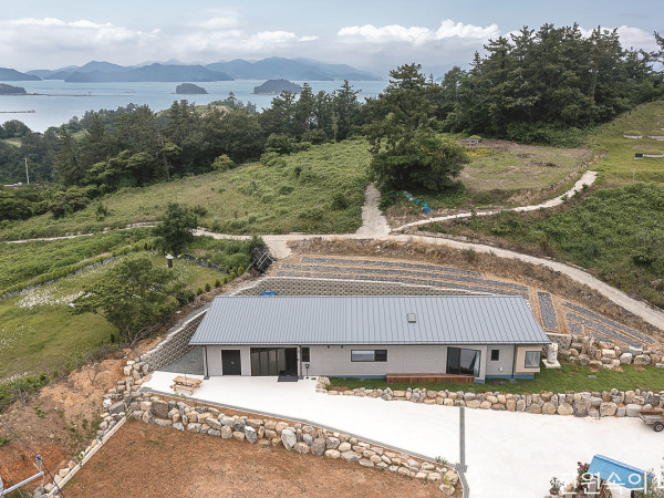 한국형 목구조의 실험완도 목조주택프리컷 중목 구조와 북미식 경골 목구조 사이에서 찾은 하이브리드라는 해답.한옥의 전통적 감성에 생활의 편의를 얹어 새로운 목조주택을 지었다.단층으로 시원스레 길게 뻗은 주택 외관.농촌 주택과 어촌 주택, 국내 중목 구조와 북미식 경골 목구조의 만남지금은 다리로 육지와 연결되어 있지만, 대지는 섬에 위치한다. 고갯길에서 삶의 터전인 바다를 내려다보고 있는 땅이었다. 이 땅에서 오랫동안 한자리를 지켰던 구옥을 철거하되, 마당에서 바다를 마주하던 기존 집의 기억을 오마주하고 너른 바다 위에 떠 있는 섬을 닮은 주택을 새로이 계획하였다. 구옥은 실내 공간과 외부공간의 경계가 모호했고 안과 밖의 중간에 있던 툇마루가 이를 분리해 주었다. 이는 건축주의 라이프스타일, 햇빛이 강하고 바람이 잦은 어촌 주택에 적합한 형태였다. 아울러 어촌이지만 밭농사도 함께 이루어지는 농촌 주택의 특성도 함께 있었다. 이러한 점들을 재해석하여 새로 지은 주택에는 농작물을 보관하는 창고(농촌)를 실거주 공간과 분리하여 독립적으로 구획하고, 생선을 손질하는 너른 공간(어촌)을 봉당으로 구성하여 하나의 지붕 아래 연결하였다.SECTION간살 중문은 집의 인테리어와 조화롭게 어우러진다.PLAN(위, 아래) 주택의 실내외를 연결하는 봉당은 이 집만의 아이덴티티가 되었다. 여름에는 개방하여 공기 순환을 돕고, 겨울에는 폴딩도어를 닫아 방풍 효과를 누리는 등 계절에 따라 쓰임이 달라진다. 또한 출입 동선, 창고, 보조 주방 등 다양한 역할을 한다.더불어 건물 단면 구조의 일정화된 동일 모듈을 기반으로 장방형으로 건물을 계획하여 목구조의 산업화를 시도하되, 일부 변주 구간인 사선 구조재, 외벽 돌출구간, 모퉁이 창 등을 둠으로써 다양한 공간감이 드러나도록 계획하였다. 중목이 가진 구조적 장점을 극대화하여 벽과 벽 사이의 거리를 확보함과 동시에 구조재이자 인테리어 마감 요소로써 활용했다. 이 외에도 목재 마감재를 다양하게 활용하여 천장, 창호, 실내 벽체 등에 적용했다. 또한 하나의 지붕 아래 창고, 봉당, 거주 공간을 나눠 구획했다. 특히 건물의 실내이자 실외 공간 역할을 겸하는 봉당을 건물의 중심에 뒀다. 여름에는 개방하여 쾌적함을 도모하고 겨울에는 폴딩 도어를 닫아 방풍 공간으로 구성하였다. 장방형의 기존 골격을 토대로 현관과 주방을 잇는 회유 동선을 계획해, 쉽게 현관, 봉당, 주방을 서로 오갈 수 있도록 했다. 이로써 기존 집을 계승하면서도 살기 편한 쾌적한 가사 동선과 농촌주택과 어촌주택의 특징이 모두 반영된 목조주택이 새로이 태어났다.HOUSE PLAN대지위치 :전라남도 완도군대지면적 :1,603.10㎡(484.93평)건물규모 :지상 1층건축면적 :202.27㎡(61.18평)연면적 :196.80㎡(59.53평)건폐율 :12.62%용적률 :12.28%최고높이 :4.7m주차대수 :1대구조 :기초 – 철근콘크리트 매트기초 / 벽 – 경량목구조 2×6 + 중목구조 / 지붕 –경량목구조 2×10 + 중목구조외부마감재 :세라믹사이딩 + 외단열 스터코단열재 :외벽 – 그라스울 R23 / 내벽 –그라스울 R19 / 바닥 – THK100 비드법보온판 / 지붕 –그라스울 R37창호재 :레하우 시스템창호 + 3중 로이유리 47mm철물하드웨어 :∅16mm 스테인리스 스틸 L앙카 + 중목 프리컷 접합 철물에너지원 :LPG구조설계(내진) :우딘목재시공 :건축주 직영설계·감리 :엘리펀츠 건축사사무소 044-866-8339 https://studio-elephants.com지붕의 사선 구조가 그대로 드러나 입체적이고 멋스러운 실내. 목구조 특유의 형태와 질감이 실내에서도 느껴질 수 있도록 마감했다방 옆의 거실 한편은 방으로 나누지 않으면서도 아늑한 느낌으로 안쪽에 들여서 구획해 거실과 방의 역할을 동시에 할 수 있도록 했다.코너 창 덕분에 채광, 환기, 조망이 용이한 방. 단아하고 정갈한 분위기가 느껴진다.INTERIOR SOURCE내부마감재 :벽 – 도배 / 바닥 –이건마루 / 천장 – 자작합판 + 도배수전 등 욕실기기 :대림비앤코 + 진테크비젼주방·거실 가구·붙박이장 :제작 가구조명 :LED 3인치 7W 다운라이트 + T5 간접 조명현관문 :이글루도어 위 적삼목 취부중문 :우딘목재방문 :영림도어(위, 아래) 마을의 자연 풍경에 자연스레 녹아들며 잘 어우러지는 주택.more about : 하이브리드 목구조의 국산화국내 목조 건축물은 크게 기둥·보 가구조 형태의 중목 방식과 북미식 벽식 형태의 경골 목구조 방식으로 나뉜다. 중목 방식은 공간의 구조적 변경과 형태 구현이 자유로운 대신, 단열 및 벽체 형성에 취약한 점이 있다. 반대로 경골 목구조는 단열 및 벽체 형성에 유리하나, 구조적 한계로 인해 자유로운 공간감 형성 및 자연스러운 구조재 노출의 제약이 있다.완도 주택에서는 중목 구조와 경골 목구조를 각각의 기능과 성격에 맞게 분리 및 결합하였다. 구조 프레임의 기본 기능 및 인테리어 요소로 중목 구조를 노출하고, 경골 목구조는 벽체로서 내진 및 단열에 치중하도록 했다. 지붕의 경우, 전통 한옥처럼 수직·수평재는 중목으로 처리하되, 사선 서까래 부재는 모두 북미식 경골 목구조로 하여 추가적인 중목 구조 없이 지붕 두께를 줄이고, 단열 성능을 높여 효율적인 기능 분