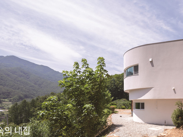 충청북도 영동의 한적한 시골 마을 끝자락. 부모님 집 옆으로 아들의 새 보금자리가 놓였다. 둥근 벽을 가진 작은 이층집이다.진입도로에서 60m 높이의 가파른 경사를 올라오면 670㎡ 부지에 80㎡의 농가 주택이 있다. 건축주는 인적이 드문 조용한 마을에서 부모님과 함께 살 대지를 찾다 이곳에 발길이 닿았고, 기존 농가 주택은 다시 인테리어하여 두 분을 모시고 본인은 그 옆에 혼자 살 집을 짓길 바랐다. 이후 건축가를 찾아 설계를 의뢰한 것이 프로젝트의 시작이었다.1 - 인적 드문 조용한 마을에 자리 잡은 두 채의 집 HOUSE PLAN대지위치▶ 충청북도 영동군 대지면적 ▶ 670㎡(202.67평) 건물규모▶ 지상 2층 거주인원 ▶ 1명 건축면적 ▶ 38.39㎡(11.61평) 연면적 ▶ 59.26㎡(17.92평) 건폐율 ▶ 5.73% 용적률 ▶ 11.30% 주차대수▶ 1대 최고높이 ▶ 6.7m 구조 ▶ 기초 – 철근콘크리트 매트기초 / 벽 –경량목구조 외벽 2×6 구조목 + 내벽 S.P.F 구조목 / 지붕 –2×8 구조목 단열재▶ 그라스울 24K + 비드법단열재 2종3호 50mm 외부마감재 ▶ 외벽 –모노쿠쉬 외단열시스템 / 지붕 – 컬러강판 창호재 ▶ 엔썸 PVC 시스템창호 (에너지등급 2등급) 철물하드웨어▶ 심슨스트롱타이, 탐린, 메가타이 열회수환기장치▶ Haatz 트윈프레시(TwinFresh Comfo RA1-50) 에너지원▶ 기름보일러 전기·기계·설비▶ 연엔지니어링 구조설계 ▶ 은구조기술사사무소 시공 ▶ 아날로그 아틀리에 설계 ▶드로잉웍스INTERIOR SOURCE내부마감재▶ 벽 – T5 자작나무(1층), 규조토(2층) / 바닥 –포세린 타일(1층), 강마루(2층) 욕실 및 주방 타일 ▶ 포세린 타일 수전 등 욕실기기 ▶ 인터바스 주방 가구·붙박이장▶ 자작나무 제작 조명 ▶ 영신조명 계단재·난간 ▶ 자작나무 + 평철난간 현관문 ▶ 제작 도어(모노쿠쉬 마감) 중문 ▶ 자작나무 3연동 제작 도어 방문 ▶ 자작나무 제작 도어2,5 - 부드럽게 감아 도는 곡면 벽체가 주변 풍경과도 잘 어우러진다. 이 주택의 계획 조건은 1층은 주방 겸 창고로, 2층은 방으로 하되 1층에서 기존 농가 주택과 연결되어야 했다. 실내이지만 외부의 성격을 가지는 1층이 공유공간으로의 역할을 하고, 2층은 사유공간으로 사용하길 원한 것이다.건축주는 건축가를 만나기 전, 집의 평면을 그려 배치와 규모를 가늠하고 각종 친환경 자재와 설비에 대한 연구를 열심히 한 상태였다. 따라서 많은 자료를 살피고 나누며 건축주가 원하는 집에 대한 시공 기술을 함께 고민해보았다.3,4 - 집의 측면과 후면부. 지붕은 징크, 외벽은 모노쿠쉬로 마감하여 각 면을 단정하게 정리했다.SECTION①기존 주택 ②주방 ③다용도실 ④입구 ⑤방 ⑥화장실 ⑦옷장PLAN6,9 - 신발을 벗고 나무 계단을 오르면 2층과 마주한다. 설계는 작년 10월에 시작하여, 해를 넘긴 2월까지 진행되었다. 특히나 작은 주택이기에 가구 위치만 바뀌어도 새로운 평면을 구성해야 했고, 따라서 6가지의 대안을 발전해가며 건축주와 모형, 3D 모델링 자료를 주고받아 세세하게 도면을 정리했다.7 - 외부와 이어진 다용도실 쪽 모습 8 - 곡면 벽에 맞춰 자작나무로 제작한 주방 가구 배치상 건축주가 살 신축 건물은 기존 주택의 우측 안쪽에 자리하게 됐다. 부모님의 공간과 주방 및 다용도실을 통해 연결할 수 있어야 했는데, 대지 경계선과 가까우며 외부 통로까지 고려하다 보니 1층은 7평 남짓한 공간일 수밖에 없었다. 그래서 2층은 1m를 캔틸레버 구조로 확장하여 공간을 확보하고, 곡면 벽을 활용해 제작 가구를 만들어 실용성을 높였다. 동시에 풍경을 파노라마로 볼 수 있도록 배려했다.10 - 부모님의 집 쪽으로 갈 수 있는 출입구 신발을 벗고 자작나무 벽을 따라 계단을 오르면 친환경 마감재인 규조토로 마감한 2층 공간이 펼쳐진다. 동서남북 주요 위치마다 창을 배치하여 이곳에서는 마당을 내려다보기도 하고 멀리 산을 볼 수도 있다.단일한 덩어리지만, 주변을 향해 부드럽게 감아 도는 외벽의 모습은 숲으로의 확장과 연계를 유연하게 받아들인다. 반대로 곡면 유리를 통해 내부에서 바라보는 외부의 전경은 다양한 숲의 표정에 시선을 던지게 한다.11,12 - 2층은 규조토로 마감해 1층과는 또 다른 분위기를 풍긴다. 적재적소에 창을 배치하여 멀리 산의 아름다운 풍경을 감상할 수 있다. 13 - 외관은 그대로 살리고 인테리어만 새롭게 한 부모님의 거주 공간과 연결된 아들의 집. 신축된 집은 부모님 집 1층 주방과 다용도실을 통해서 연결된다.사방이 산으로 둘러싸여 가을 단풍, 특히 설경이 매우 아름다운 곳. 주변 풍경을 주택 내부로 끌어들이고 자연에 둘러싸인 채 명상을 즐길 수 있는, 건축주에게 이 주택은 그런 집이 되길 바란다. 글 : 김영배건축가 김영배 _ 드로잉웍스미술, 디자인, 인테리어 등 다양한 분야와의 협업을 바탕으로 도시 안에 잠재되어있는 흔적을 재해석하는 것에 관심이 많다. 또한, 지역 사회에 기여하면서 개인에 대한 의미 있는 작업을 중시한다. 스튜디오 메타 이종호, 우의정 수하에서 9년간 실무를 익히고, 2017년 사무소를 개소했다. 대표 작업으로는 영동 단독주택, 거제 전망대, 청라중앙호수공원 내 관리사무소, 공공 화장실 등이 있다. 02-6954-2882│https://tdws.kr취재 _ 김연