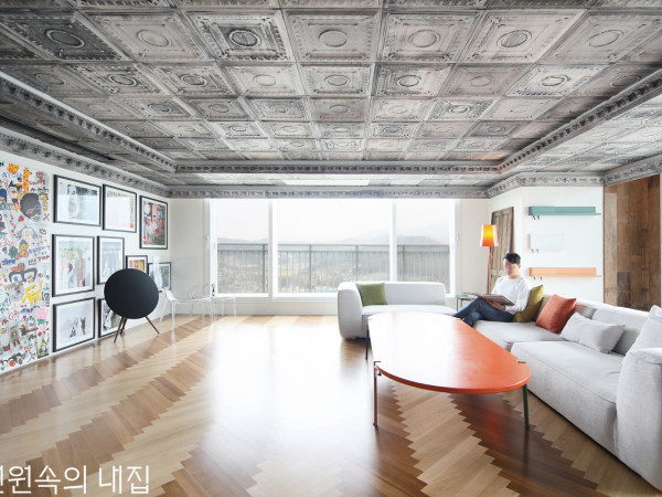 남다른 마감재와 독특한 디자인 요소가 더해진 과감한 시도. 이상적인 삶을 위해 직접 두 팔을 걷어붙인 인테리어 디자이너의 싱글 하우스로 초대한다.1 - 현관에는 수납 효과를 높이기 위해 양쪽 모두 수납장을 짜 넣었다. 집에 들어서자마자 마주하게 되는 세 가지 다른 패턴의 바닥재가 디자이너의 집임을 가늠케 한다.2 - 평소 좋아하는 작가의 아트프린팅을 진열해 감각적으로 연출한 거실. 직접 그린 그림이 벽 가운데 놓여 더욱 특별하게 다가온다.현관문을 열기 전까지는 누구도 예상할 수 없었던 풍경. 그동안 개성 있는 인테리어로 주목받아온 디자인형태 김형태 대표가 지은 지 10년이 조금 넘은 평범한 아파트에 본인만의 색깔을 담아냈다.“부모님과 함께 거주하다 독립을 결심하고 주변 환경과 접근성 등을 고려해 지금의 아파트를 구입했어요. 단점보다는 장점이 많은 곳이라 전체적인 구조를 변경하기보다는 저의 취향에 맞춰 평소 시도해 보고 싶었던 실험적인 마감재와 디자인 몇 가지를 선택했습니다.”3 - 집과 가까운 중학교에 다니게 될 하나뿐인 조카 주영이를 위해 미리 마련해둔 방. 주영이의 의견을 반영해 한쪽 벽면은 칠판 페인트를 칠하고 공부를 하거나 그림을 그릴 수 있게 했다. INTERIOR SOURCE건축면적 ▶ 187㎡(56.56평)창호재 ▶ KCC 뉴프라임(PVC) 22mm(아르곤가스) 유리벽 ▶ 기존 벽지 제거 후 콘크리트 표면 던 에드워드 페인트천장 ▶ 월센스(비스포크실링)|바닥 ▶ 구정마루 헤링본욕실 및 주방 타일 ▶ 윤현상재 수입타일(모자이크 / 포세린)수전 등 욕실기기 ▶ 수입제품|주방 가구·붙박이장 ▶ 한샘조명 ▶ 루이스폴센 ph5, 지엘드 Signal Wall light 해외 직구, t-5 간접조명(위즈테크), Foscarini Birdie floor lamp, Kartell Take현관문 ▶ 기존 방화문|방문·중문 ▶ 목공소 원목 제작스피커 ▶ 뱅앤올룹슨 Beoplay A9|거실 1인 소파 ▶ Kartell Uncle Jim사이드 테이블 ▶ Kartell Jolly side table|소파 ▶ 버즈가구거실 선반 ▶ Muuto Folded Shelves|식탁·거실 및 서재 테이블·침대 ▶ 디자인형태 제작디자인·설계·시공 ▶ 디자인형태 033-746-2619 http://d-hyungtae.com 3개월이라는 시간 동안 구석구석 손 닿지 않은 곳 없이 완성한 집. 내부에 들어서 긴 복도를 지나면 넓은 거실이 펼쳐진다. 단열과 창호 등을 신경 써 모든 발코니를 확장 공사하고, 평소 좋아하는 영화·음악 감상을 위해 불필요한 가구 등을 배제하는 대신 대형 스크린을 설치하여 싱글 하우스를 만끽할 수 있도록 디자인했다.‘나 혼자 산다’의 로망을 실현한 곳이지만, 업체 관계자나 클라이언트와의 미팅을 고려해 군더더기를 덜어내고 큰 테이블을 두는 등의 배려도 잊지 않았다.4 - 기존 벽을 허물고 유리 벽과 문을 설치한 주방. 거실과 공간을 분리하는 동시에 더 넓어 보이는 효과를 가져왔다. 5 - 이번 공사에서 가장 많이 신경을 쓴 부분 중 하나인 천장 마감. 국내에서 찾아보기 힘든 시공법으로, 유럽 건물의 낡고 부식된 특유의 빈티지한 느낌을 재현하고자 1,000장의 패널을 일일이 작업해 만들었다. BEFORE / AFTER“거실 어디에서도 치악산의 멋진 산세를 감상하며 휴식을 취할 수 있어요. 평소 좋아하는 작가의 아트프린팅으로 벽면을 가득 채웠는데, 나만의 갤러리가 생겨 소파에 앉아있는 것만으로도 스트레스가 풀리는 기분이죠.”유리 벽으로 답답하지 않게 공간을 구획한 거실 옆 주방 역시 특별한 장식은 없으나 그 자체로 하나의 오브제가 되어준다. 가족들이나 지인들에게 요리해주는 것을 좋아하는 그가 자주 사용하는 공간인 만큼, 유지·관리가 편리하도록 주방 바닥 전체를 타일로 시공하였다. 또한, 여닫기 쉽게 제작한 문은 필요에 따라 주방과 거실을 분리할 수 있어 실용적이다.화려한 색감의 주방과 달리 침실은 좀 더 깔끔하게 꾸몄다. 휴식을 방해하는 요소는 최대한 배제하고 따뜻한 느낌의 고재로 아늑한 분위기를 더했다.6,7 - 창밖으로 아름다운 치악산과 도심 풍경이 한눈에 들어온다. 침대 프레임과 헤드보드, 침실 옆 파우더룸의 테이블 등을 고재로 제작해 자칫 밋밋해 보일 수 있는 공간에 중심을 잡아주었다. POINT 1 - 침실 옆 욕조 확장부 공간에 욕조를 두었다. 타일 바닥 마감재로 기능적인 편리함도 잊지 않았다. POINT 2 - 제작 세면대 기술력이 더해진 10cm 높이의 세면대. 벽 배관으로 배수와 물 구배 등을 모두 잡았다.8 - 샤워부스를 따로 두어 건식으로 사용할 수 있게 디자인한 욕실. 조도를 낮추고 포세린 타일로 마감하여 아늑한 분위기를 연출했다.9 - 서재에는 폭이 좁은 선반을 설치하고 좋아하는 책을 놓아 인테리어 효과를 내었다.HIDDEN DETAIL직접 설계하고 시공한 집인 만큼 구석구석 손길이 닿지 않은 곳이 없다. 주방 수납장의 손잡이와 거실과 주방을 연결하는 바닥 마감, 벽면 디테일까지. 디자이너라 가능했던 집 속 숨은 디자인 요소를 찾았다.1 - 손잡이의 변신평범했던 기존 손잡이를 오렌지 컬러의 가죽 손잡이로 교체했다. 가죽 소재는 인더스트리얼 무드를 과하지 않게 연출할 수 있는 아이템으로, 간단한 변화로 공간의 분위기가 확 달라진다. 2 - 레고 블록의 활약 기존 마감재를 걷어냈더니 테라조(Terrazzo) 벽체가 나타