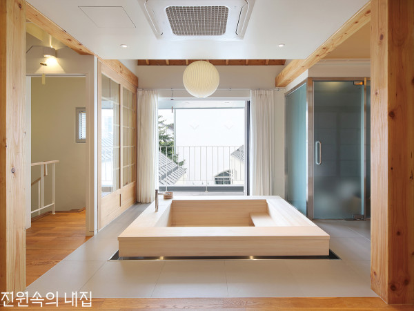 강원도 고성. 봉포해수욕장이 바라보이는 한적한 동네에 세 개의 박공지붕을 가진 건물 한 채가 지어졌다. 이름도 모습도 삼박한 집.삼박한 집의 상징이 되는 2층. 중목구조의 중후함, 서까래의 경쾌함, 목재의 따스함이 집의 전체적인 분위기를 지배할 수 있도록 했다. 스터코로 마감한 건물의 정면. 중정을 중심으로 2개의 장방형 매스를 평행하게 배치하고, 주차장 상부로 2층 매스를 놓아 총 3개의 객실이 마련되었다. ‘삼박한 집’은 이미 고성에서 숙박업을 해본 장문수 씨의 두 번째 공간이다. 그동안의 경험을 바탕으로 이전까지 볼 수 없었던 새로운 스테이를 만들어보겠다는 굳은 결심이 이곳의 시작이었다.“처음엔 이동식 목조주택을 고려하다 일반적인 공간과는 차별화된 접근방식이 필요함을 깨닫고 건축가를 찾았죠. 그러다 모노그래프 건축사사무소 전재영 소장님을 알게 되었고, 제안해주신 부분들이 마음에 들어 설계를 부탁드렸어요.”불특정 다수에게 개방된 장소. 그만큼 일상성을 넘어서는 독특한 공간감이 요구되었다. 일단 대지의 중앙을 비워 마당을 두고 ‘ㄷ’자 한옥과 같은 배치를 통해 마당과 건물을 입체적으로 구성했다. 그리고 중정과 필로티의 조합으로 이뤄진 세 개의 매스는 각각 박공과 우진각 지붕으로 선택해 경사 지붕이 건물 전체의 조형을 아우르도록 해주었다.PLAN①주차장 ②서재 ③보일러실 ④중정 ⑤95호 ⑥100호 ⑦105호 HOUSE PLAN대지위치 ▶ 강원도 고성군 대지면적 ▶ 225㎡(68.06평) |건물규모 ▶ 지상 2층 건축면적 ▶ 117.99㎡(35.69평) |연면적 ▶ 162.52㎡(49.16평) 건폐율 ▶ 52.44% |용적률 ▶ 72.23% 주차대수 ▶ 4대 |최고높이 ▶ 8.65m 구조 ▶ 기초 – 철근콘크리트 매트기초 / 지상 – 철근콘크리트(벽, 1층 지붕), 8"×8" 더글라스(2층 기둥), 2"×6" @300 더글라스(2층 지붕) 단열재 ▶ 외벽 – THK125 비드법보온판 2종3호 / 지붕 – THK220 크나우프 단열재(R37 가등급) 외부마감재 ▶ 외벽 – STO 외단열시스템 / 지붕 – 0.5T 컬러강판 거멀접기 담장재 ▶ STO 마감 창호재 ▶ 필로브 시스템창호(THK28 로이복층유리) 에너지원 ▶ 기름보일러 조경 ▶ 건축주 직영 시공 ▶ ㈜하눌종합건설 설계 ▶ 모노그래프 건축사사무소 전재영 + 안녕건축사사무소 유용연 짜맞춤 방식의 무절 편백나무로 제작한 히노끼 욕조가 객실 중심에 자리한다. 욕조 앞 테라스를 통해 공간 깊숙이 빛이 환하게 들어온다. 다락에서 바라본 105호 전경 POINT 1 - 책과 함께하는 공간1층에 마련된 서재. 문수 씨가 선별한 서적이 책장에 가지런히 꽂혔다. 객실과는 또 다른 재미를 주는 공간이다.POINT 2 - 이용객을 위한 배려화장실, 샤워실, 세면대를 각각 분리 배치해 사용의 편의를 높였다. 세면대 아래는 수납장으로 수도 설비 등을 깔끔하게 가렸다.POINT 3 - 중목구조의 경사 지붕서까래와 추녀, 보 등으로 조형미를 최대한 드러내도록 하였다. 이로 인해 외부와는 차별화된 분위기를 느낄 수 있다.삼박한 집에서 무엇보다 주목할 점은 철근콘크리트와 중목구조가 결합된 하이브리드 공법의 적용. 필로티 주차장 상부에 위치한 2층은 벽체까지만 콘크리트로 타설하고, 기둥과 지붕은 중목으로 계획했다.“3m 내외의 간격으로 기둥을 세우고, 기둥과 조인트된 빔은 RC 벽에 장착했어요. 스터드 앵커와 철물로 지지해 구조적 안정성을 높이고, 목기둥과 빔 사이는 한옥처럼 홈을 파내 앵커로 고정했죠. 옥상정원이 없고 하중이 크지 않은 경사 지붕이라 시공성 및 기간을 고려했을 때 기존 RC보단 목구조가 유리하다 생각했고요.”건축가의 정확한 판단으로 중목구조가 고스란히 드러난 2층은 삼박한 집의 정체성이자 상징이 되는 공간으로 완성되었다. 특히 노출된 기둥과 보, 서까래는 별다른 인테리어 요소 없이 그 자체로 훌륭하고, 충분히 매력적이다. 또한, 높은 층고를 가진 각 객실에서는 아파트나 일반 공동주택 등에서 경험할 수 없는 개방감을, 담장으로 구획한 독립된 야외 공간에서는 외부 시선에 방해받지 않고 이용객이 가든파티 등을 즐길 수 있게 배려하였다.제작한 한식 미닫이문이 목재와 어우러져 고즈넉한 느낌을 한층 더한다. 집이 품은 아늑한 중정. 좌측이 95호, 우측이 100호이다. 중정을 보고 마주하는 2개 객실은 지붕 높이를 달리해 변화를 주었다. (위, 아래)1층 100호의 내부. 높은 천장고를 활용하여 다락을 만들고, 시원한 개방감까지 확보했다. SECTIONINTERIOR SOURCE내부마감재 ▶ 벽, 천장 – 노출콘크리트 견출 마감, 벤자민무어 친환경 도장, 더글라스 위 옻칠 도장 / 바닥 – 타일, 원목마루 마루 ▶ 지복득마루 욕실 및 주방 타일 ▶ 윤현상재 | 수전 등 욕실기기 ▶ 아메리칸스탠다드, 그로헤 주방 가구 ▶ 모벨제이 | 침대 및 의자 ▶ 스탠다드에이 조명 ▶ 허먼밀러 버블램프(조지넬슨), 건축주 인터넷 구매 계단재·난간 ▶ 멀바우 집성목 + 평철난간 위 목재 손스침 현관문 ▶ 리치도어 현관문 | 방문 ▶ 한식문 주문 제작 실링팬 ▶ 에어라트론 노출콘크리트로 마감된 95호. 창 너머 작은 야외 공간은 편안한 휴식을 취할 수 있도록 도와준다. 히노끼 욕조와 세면대, 화장실 및 샤워실을 인접하게 배치하는 등 사용자