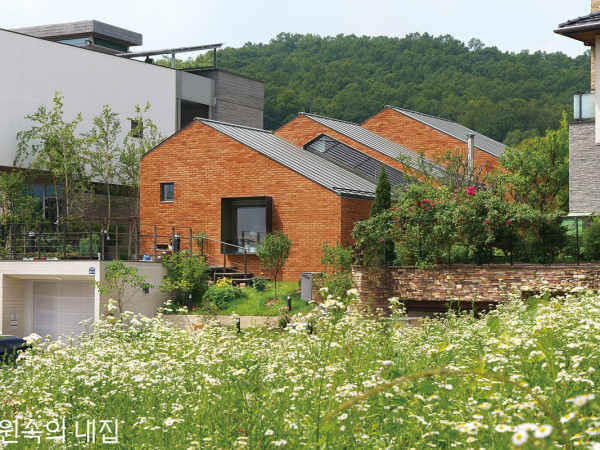 건축설계는 계획설계, 기본설계, 실시설계로 이어진다. 대지 여건을 고려한 배치부터 공간의 풍성함을 결정짓는 단면, 세대수와 가족의 취향을 반영하는 평면 계획 단계에서 건축가의 다양한 아이디어를 엿보는 기회를 가져본다.FAMILY두 자녀를 둔 맞벌이 부부를 위한 주택이다. 건축주는 최소한의 개인 공간을 제외하고는 가족 커뮤니케이션을 위한 넓은 공간과 자녀를 위한 옥외공간을 원했다. 사생활을 보호받고, 동시에 자연채광과 환기가 원활한 정원이 있는 집이다.SITE김포 한강신도시에 위치한 대지는 벽돌 외장의 저층 주택들이 밀집한 곳으로, 남측에 2차선 도로와 북측의 보행자 전용로가 있다. 서측은 좁은 골목이 있으나, 사실상 동서측 모두 이웃과 인접해 있는 전형적인 주택 부지이다.HOUSE PLAN대지위치 경기도 김포시|지역지구 제1종전용주거지역|대지면적 289㎡(87.42평)|건물규모 지상 2층|건축면적 119㎡(36평)|연면적 219㎡(66.25평)|건폐율 41.18% |용적률 75.78%|구조 철근콘크리트, 철골|주요 외장재 벽돌, 석재타일CONCEPT이 주택은 멀리서는 공간을 읽을 수 없다. 그러나 조금씩 접근하다 보면 담장 너머 공간 속에 또 다른 공간이 살며시 보이기 시작한다. 공간을 구분하는 담장이 아닌, 다양한 행위를 만들어내는 마당의 특성에서 삶이 어떻게 변하는지 ‘담장 너머’로 들여다보려 하였다. 외부에서는 닫혀 보이지만, 내부에서는 사방으로 이어진다. 수평적으로 고민하던 주거에서 수직의 겹 공간들이 만들어내는 다양한 방식을 제안하였다.INTERIOR사생활 보호를 위해 골목길에서 진입하는 현관 출입구 1층 현관을 통해서 보는 데크와 외부 전경 후면 데크에서 실내 주방까지 이어지는 식탁 및 조리대 배수 시 주방과 접하여 식당으로도 이용할 수 있는 야외 풀장 1층 현관 데크와 직접 연결된 주차 공간 외부상황을 확인하는 동시에 채광과 벽면 녹화가 가능한 입면1 대지를 품고 있는 외벽외벽은 주택의 형태를 만드는 역할을 하지만, 대부분 건축면적으로 산입되지 않아 외부 공간을 내부처럼 이용할 수 있다. 또한, 외벽은 자연채광과 환기, 차폐 등의 기능적 역할을 하도록 디자인되었다.2 내부와 외부 공간의 연계외벽 내 4면의 외부 공간은 다양한 레벨을 구성하며 가족 구성원 각각이 원하는 공간들을 만든다. 외부 공간은 1층 각 실과 서로 연결되어 필요에 따라 확장하거나 다양한 공간으로도 사용할 수 있다.3 구조 및 설비의 일체화외벽을 지탱하는 철골 기둥과 보는 구조 역할을 하면서 우수 드레인과 배관, 배선 역할도 동시에 수행한다. 설비 라인을 정리하여 입면 노출을 최소화하였고, 건식으로 유지 및 관리되도록 했다.SECTION & ELEVATION①현관 ②주방 ③거실 ④차고 ⑤방 ①현관 ②주방 ③거실 ④차고 ⑤방 건축가 장주현 _ 엠엠건축사무소(mmArchitects)한국건축가협회(KIA)와 대한건축학회(AIK) 정회원이다. 인하대학교 건축공학과와 동대학원을 졸업, 삼우종합건축사사무소, 디자인캠프 문박 dmp에서 실무를 했다. 현재 mmArchitects와 mmstudio를 운영하고 있다. 주요 작업으로 송도아트센터 오페라하우스&미술관, 예술의전당 토월극장 등 문화시설, ‘Synode’, ‘P house’ 등 주택 다수와 daum, MIdesign 사옥 등이 있다. 최근에는 문화시설과 주거, 제품 디자인, 매거진 등 토털 디자인 프로젝트를 진행하고 있다.070-4249-4047 | www.mmarchitects.co.kr구성 _ 편집부ⓒ 월간 전원속의 내집 / www.uujj.co.kr