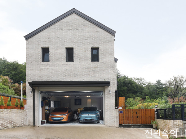 자연이 좋아 한번 살아보자고 시작한 전원생활. 경험이 빚고 열정이 구워낸 벽돌집으로 2회차를 시작했다.“전원생활도 ‘한 달 살기’처럼 살아보고 결정하자 싶어 양평에 들어왔어요.”건축주 하병우, 이연실 씨 부부는 덜컥 집을 사기보다는 전세로 전원생활을 미리 경험해보자고 했는데, 잠깐 살아본다는 것이 어느새 일곱 해를 넘기고 있다며 말문을 열었다. 그중 5년을 살았던 전셋집은 나쁜 집은 아니었지만 전원생활에 익숙해질수록 아쉬움이 커졌고, 가족에 꼭 맞춘 집을 짓고 싶었다. 그러던 어느 날, 해가 잘 들어 마음을 사로잡은 지금의 정남향 땅을 발견했다. 부부는 이를 기회 삼아 본격적인 집짓기에 나섰다.SECTION ②주방/식당 ③안방 ④방 ⑤거실 ⑫발코니 ⑬다락 단정한 박공이 인상적인 주택 측면. 전기차를 사용하고 있어 차고에 전기차 충전을 위한 설비를 갖춰놓았다.차고 남측으로 폴딩도어를 설치했다. 덕분에 차고하면 떠오르는 어둡고 갑갑한 이미지는 여기선 전혀 적용되지 않는다. 처음에는 직영 시공도 생각해 남편 병우 씨가 건축주 목조건축 학교를 다니며 열심히 공부했다. 하지만, 알면 알수록 설계와 시공에 들어가는 전문가의 디테일이 중요하다는 걸 깨달았다. 5년간 살면서 절실히 느낀 ‘집다운 집’을 위해 양평과 판교에서 활동한 여러 건축가를 수소문하다 홈플랜건축사사무소 이동진 소장을 만났다. 그들은 유려한 디자인보다도 방수와 단열, 기능 등 삶의 쾌적함이 집이 가져야 할 본질이라는 데서 생각이 통했다. 이 소장은 “건축주는 전원생활에 필요한 요소를 잘 알고 있었고, 기본적 건축 지식이 풍부하고 취향도 명확해 서로 합이 잘 맞았다”며 만남을 회상했다. 주택은 비교적 심플하게 디자인을 잡았다. 복잡한 형태나 평지붕 등이 하자로 이어질 가능성이 높다고 생각한 결과였다.주택 동측으로 적삼목 루버로 가림벽을 세웠다. 프라이버시를 확보하면서 타프를 설치하는 등 익스테리어 요소로도 적합하다.HOUSE PLAN대지위치 ▶ 경기도 양평군 대지면적 ▶ 497m2(150.60평) | 건물규모 ▶ 지상 2층 + 다락 거주인원 ▶ 4명(부부 + 자녀 2) 건축면적 ▶ 92.40m2(28평) | 연면적 ▶ 171.82m2(52.06평) 건폐율 ▶ 18.59% | 용적률 ▶ 34.57% 주차대수 ▶ 2대 최고높이 ▶ 9.06m 공법 ▶ 기초·지상 1층 – 철근콘크리트구조 / 지상 2층·다락 - 벽 : 2×6 구조목, 지붕 : 2×10 구조목 단열재 ▶ 1층 – 에어론 저방사단열재 / 2층 – 스카이텍 + 셀룰로오스 외부마감재 ▶ 벽 - 백고벽돌 / 지붕 - 컬러강판 | 에너지원 ▶ LPG 창호재 ▶ 융기 Veka-Drium 독일식 시스템창호 46mm(1등급) 시공 ▶ 씨앤제이하우징 설계·감리 ▶ 홈플랜건축사사무소 이동진, 김소연 031-275-5296 www.homeplan.co.kr군더더기 없이 깔끔한 주택 후면 대지는 1m 정도 경사진 상황. 순수 목구조로는 자칫 습하거나 기초 공사에 지나친 비용이 들 수 있었기에 기초와 1층은 철근콘크리트, 2층과 다락은 목조로 구성한 하이브리드 구조를 채택했다. 튼튼한 구조와 방수·방화 성능이 필요한 차고와 주방, 욕실은 철근콘크리트구조인 저층부에 배치했고, 편안한 생활감이 필요한 침실, 거실 등의 공간은 전부 목구조인 2층으로 올렸다.외장재는 백고벽돌로 결정했다. 오랫동안 질리지 않는 것은 물론, 위아래로 구조재가 다른 하이브리드 구조에서도 바닥부터 지붕선까지 끊김 없는 외장재 적용이 가능했기 때문이다. 안으로 들어서면 가장 먼저 만날 수 있는 차고는 부부가 강조하는 전원주택 필수 공간 중 하나다. 병우 씨는 “송홧가루, 미세먼지, 폭우, 낙엽, 눈을 피하는 것만으로도 차 관리에 상당한 도움이 된다”며 추천했다.현관 진입부의 모습. 빈티지 수납장 위 조그만 창으로 차고 내부 모습을 볼 수 있다.우드 컬러의 테이블과 주방 가구가 내추럴한 분위기를 연출하는 주방 겸 식당. 이웃과 모임을 갖는 등 공적인 역할로 활용된다. INTERIOR SOURCE내부마감재 ▶ 벽 - 에덴바이오 벽지, 친환경페인트 / 바닥 - 동화 강마루 욕실 및 주방 타일 ▶ 국산타일 수전 등 욕실기기 ▶ 대림 주방 가구 ▶ 메이킹퍼니처 계단재 ▶ 애쉬목 | 현관문 ▶ 코렐 단열 현관문 방문 ▶ 예림도어 데크재 ▶ 현무암천장을 오픈하고 발코니를 연결해 공간감과 개방감이 느껴지는 거실. 발코니에 폴딩도어를 설치해 겨울에는 온실처럼 이용할 수 있다.2층 계단 밑으론 수납장과 욕실이 자리한다. 현관을 지나면 바로 식당 겸 주방인 공간을 만난다. 전원생활에서는 손님을 집으로 초대해 모임을 갖는 일이 잦은데, 식당과 주방 등 공적인 공간을 1층으로, 침실 등 사적인 공간을 2층으로 분리해 관리의 편리함과 프라이버시를 확보했다. 계단을 통해 2층으로 오르면 세탁실과 침실, 욕실이 자리해있고, 더 올라 다락에는 창고를 넣어 철 지난 옷 등을 수납했다. 욕실은 손님용을 포함해 단 2개만 마련했는데, 오랜 주택 생활에서 욕실 관리가 가장 골치였던 경험이 반영된 부분이다.거실에서의 여유를 즐기는 부부와 반려견 은동이 아파트 시절부터 간직하던 가구들로 간결하게 꾸민 안방 PLAN ①현관 ②주방/식당 ③안방 ④방 ⑤거실 ⑥욕실 ⑦드레스룸 ⑧파우더룸 ⑨세탁실 ⑩다용도