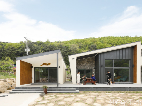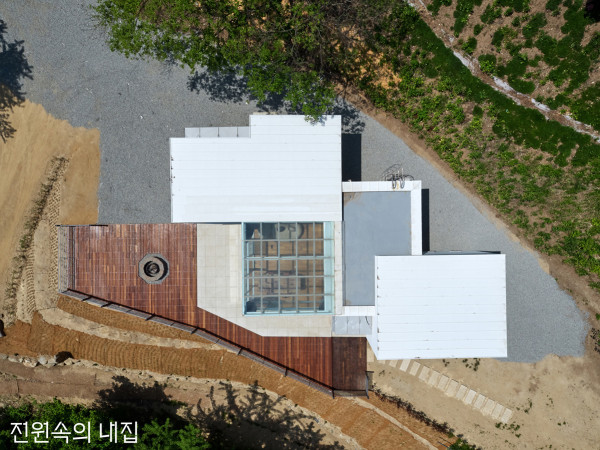 아름다운 주변 풍광을 담아낸 새하얀 단층집. 그 이름처럼 검소한 겉모습 속에 옥을 품은, 부부의 새 보금자리다.회옥재의 전경. 하얀색의 매스와 투명한 선룸의 대비가 집의 특징을 잘 설명해준다. 부엌과 선룸의 연결통로. 선룸을 포함해, 크고 작은 창을 여러 군데 내어 외부 풍경을 한껏 끌어들이고자 했다. 부부는 선대로부터 물려받은 땅에 은퇴 후 안온하게 지낼 수 있는 집을 짓고자 했다. 두 개의 방, 부엌 및 다용도실, 화장실과 욕실, 그리고 주변을 조망하기 좋은 선룸을 포함하여 30평 정도의 주택을 목표로 설계를 진행하였다. 부부가 큰 집을 짓지 않겠다고 한 데는 두 가지 이유가 있었다. 첫째는 예산에 관한 것이었고, 둘째는 주변 풍경 자체가 충분히 아름다우니 집은 굳이 크고 화려할 필요가 없다는 것이었다. 사시사철 계절감을 드러내는 수목들, 집 앞을 흐르는 맑은 개울, 항상 볕이 잘 드는 높은 지대, 밤이면 달과 별로 가득 메워지는 맑은 하늘과 청량한 밤공기. 대지를 둘러싼 아름다운 풍경을 집으로 끌어들이면 집 자체는 그리 크지 않아도 될 것 같다는 건축주 내외의 생각에 공감했고 크지 않지만, 충분히 큰 집을 만들고자 했다.SECTION①현관 ②선룸 ③부엌 ④서실 ⑤침실 ⑥드레스룸 ⑦다용도실 ⑧세면실 ⑨화장실 ⑩욕실 ⑪보일러실 선룸을 중심으로, 서측에 남편의 공간인 욕실과 서실, 동측은 아내의 공간인 부엌과 안방을 두었다. 이 구분은 건물의 외관에 고스란히 드러난다. 집은 산골짜기에 위치하고 있지만, 대지의 단이 높아 사시사철 항상 해가 잘 든다. 건물 앞쪽으로 건축주가 직접 가꾼 배나무밭이 보인다. 각각의 공간들은 생활이 불편하지 않을 선에서 최소한의 규모로 계획되었다. 대신 크고 작은 창을 다양한 위치에 내어 밖으로 충분히 열려있는 구조를 만들고, 집 중심에 선룸을 배치하여 하늘을 포함한 주변 풍광을 한껏 담아낼 수 있도록 했다.외국의 주택 사례에서 간혹 ‘Man Cave’라는 공간을 볼 수 있다. 단어 그대로 해석하면 남자의 동굴인데, 이는 남편이 취미생활을 위한 시간을 갖거나 휴식을 보내기 위한 공간이다. 건축주에게 설계 과정에서 가장 즐거운 일을 하나 꼽으라고 한다면, Man Cave와 같은 ‘나만의 공간’을 계획하는 일이라 할 수 있을 것이다. 나의 이상과 자아를 공간으로 구체화하는 일, 그리고 그 안에서 보낼 시간을 상상하는 일만큼 즐거운 일이 있을까. 건축주 내외에게는 각각 ‘욕실’과 ‘부엌’이 이에 해당했다. 남편은 외부 풍경을 한껏 즐기며 반신욕 할 수 있는 욕실을 갖고 싶어 했고, 아내는 모든 물건을 자신의 규칙대로 깔끔히 정리할 수 있는 부엌을 계획하기 위해 공을 들였다. 집의 중심인 선룸을 기점으로, 서측에는 욕실과 남편의 서실(書室)이, 동측에는 부엌과 아내의 취미 공간이 자연스레 구분되어 배치되었고, 이는 건물의 외관에 고스란히 드러나게 되었다.가평의 파란 하늘을 담은 현관 바닥. 현관 앞쪽의 낮은 턱은 현관을 보다 안정감 있게 해주며, 잠시 짐을 얹어 두기에도 편하다. 이 집의 중심공간인 선룸 어둠이 깔린 주택. 집 앞을 흐르는 개울이 건물을 더욱 돋보이게 한다. HOUSE PLAN대지위치 ▶ 경기도 가평군 대지면적 ▶ 1,106㎡(334.57평) | 건물규모 ▶ 지상 1층 건축면적 ▶ 130.92㎡(39.60평) | 연면적 ▶ 130.92㎡(39.60평) : 주택 – 104.12m2 / 농막 – 18.00㎡ / 창고 – 8.80㎡ 건폐율 ▶ 11.84% | 용적률 ▶ 11.61% 주차대수 ▶ 1대 | 최고높이 ▶ 4.4m 구조 ▶ 기초 – 철근콘크리트 매트기초 / 지상 – 철근콘크리트 라멘조 단열재 ▶ 압출법보온판 1종3호, 경질우레탄폼보온판 1종3호, EPS단열재 1종3호 외부마감재 ▶ 벽 – STO 외단열시스템 등 / 지붕 – 선이인터내셔널 알루징크 창호재 ▶ 필로브 AL창호 160mm 양면로이 투명삼중(에너지등급 1등급) / 선룸 – 이건창호 에너지원 ▶ 난방열원 – 히팅골드바 전기패널 / 온수 – 저장식 온수기 조경석 ▶ 윤현상재 조경용 타일(30T) 시공 ▶ 더 이레츠 종합건설 설계·조경 ▶ 폼아키텍츠 총공사비 ▶ 3억원(설계비 및 조경 공사비 제외) 하늘에서 바라다본 외관. 건물의 특성이 명확하게 나타난다. PLAN①현관 ②선룸 ③부엌 ④서실 ⑤침실 ⑥드레스룸 ⑦다용도실 ⑧세면실 ⑨화장실 ⑩욕실 ⑪보일러실 아내의 공간인 안방과 취미실. 좌식 생활에 맞추어 가구는 거의 들이지 않았다. 목욕을 하면서 외부 풍경을 조망하거나, 외부로 드나들 수 있는 공간을 원했던 남편을 위한 공간인 욕실. 살짝 보이는 천장은 히노끼 각재를 사용하여 특유의 상쾌한 향이 난다. 건물의 내외장재에 관한 선택은 기능과 가격, 건축주의 취향 등을 종합적으로 고려해 설계자와 건축주가 함께 의논하여 선택한다. 이후 설계자는 선택된 각각의 재료가 만나는 방법을 고민하는데, 흔히들 이 단계를 ‘디테일을 설계한다’고 표현한다. 이번 설계에서 디테일에 대한 고민은 대부분 간결함을 만드는 일에 관한 것이었다. 건축주도 설계자도 집이 안팎으로 복잡해 보이지 않았으면 했다.먼저 지붕과 외벽 마감재는 유사한 색상을 선택하여 외형이 간결해 보인다. 지붕 후레싱(지붕 끝단과 벽면에 만나는 부분)도 최대한 얇게 만