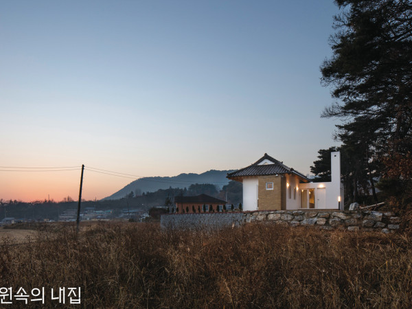 옛 시절 번듯한 집의 표상이었던 기와지붕과 현대의 삶을 반영하는 아파트 평면. 이 둘의 생경한 조합이 만들어낸 정겹고도 개성 넘치는 집 한 채를 만났다.오랫동안 품어왔던 기와지붕과 처마에 대한 추억을 담아 지은 주택의 전경철길 건너 들어선 마을 초입, 멀리 주택의 모습이 어렴풋이 시야에 들어온다. 팔작지붕을 얹은 집은 대지 남쪽으로 논밭이 있고, 북쪽으로는 나무가 무성한 나지막한 언덕을 배경 삼아 점잖게 서 있다.보는 각도에 따라 다양한 얼굴을 보여주는 이 주택은 60대 부부의 집이다. 아주 오래전부터 경북 문경 점촌에 살아온 부부는 짧은 아파트 생활을 마치고 전원으로 돌아가고 싶어 했고, 장성한 아들은 그런 부모님의 집을 고향 땅에 지어드리고자 했다. 어릴 적부터 이곳 농촌 마을에 살아온 부부의 마음속에는 처마 있는 기와집에 대한 추억이 자연스레 자리 잡았다. 둘이 살기에 집의 크기는 30평 정도면 아주 넉넉했고, 그렇게 기와 올린 단층집이 탄생했다. 완성된 집은 숱한 세월을 지나온 두 사람의 삶을 그대로 비춘다.SECTION안으로 들어오면 외관에서 본 모습 그대로 첫 번째 방과 욕실 사이 현관이 자리한다. 책장을 짜 넣은 욕실 벽 옆 통로로 식당, 주방 공간이 이어진다.흙벽돌로 둥근 담을 높이 둘러 안과 밖의 경계를 허문 욕실거실에서 2개의 방을 향해 바라본 모습. 높은 박공지붕 아래 다락이 자리한다. 거실에는 남쪽 앞마당을 향해 큰 창을 내어 한식 창호를 달고 툇마루를 오갈 수 있게 했다.HOUSE PLAN대지위치 ▶ 경상북도 문경시대지면적 ▶ 513㎡(187.55평)|건축규모 ▶ 지상 1층 + 다락건축면적 ▶ 99.46㎡(30.09평)|연면적 ▶ 99.46㎡(30.09평)건폐율 ▶ 19.39%|용적률 ▶ 19.39%주차대수 ▶ 2대|최고높이 ▶ 5.7m구조 ▶ 기초 – 철근콘크리트 매트기초 / 지상 – 경량목구조단열재 ▶ 그라스울(크나우프 에코배트 R23, RSI-6.5)외부마감재 ▶ 벽 – STO 외단열시스템, 비소성 흙벽돌 / 지붕 – 유약기와창호재 ▶ 필로브 39mm 삼중로이 알루미늄 시스템창호내부마감재 ▶ 벽 - 석고보드 위 친환경 페인트 / 바닥 - 풍산 합판마루에너지원 ▶ 기름보일러수전 및 욕실기기 ▶ 대림바스|붙박이장·방문 ▶ 무늬목 마감 제작구조설계 ▶ 케빈김시공 ▶ 플러스 건축인테리어설계담당 ▶ 김효영건축사사무소(강민수·이소정·김예림)설계 ▶ 정희철, 심형선, 김효영건축사사무소(김효영) 02-400-0275 www.khyarchitects.com미닫이문이 설치된 2개의 방은 필요에 따라 여닫을 수 있는 가변형 공간이다.현관 옆 불쑥 튀어나온 흙벽돌 마감의 박스형 매스는 찜질방, 휴식공간으로 쓰는 첫 번째 방이다. 진입로에서 툇마루, 앞마당으로 닿는 외부 시선을 차단하는 역할도 한다.다락에서 바라보면 평범한 듯 전형적이지 않은 평면이 한눈에 들어온다. 비틀어 앉혀 튀어나온 첫 번째 방의 벽을 집 안에서도 만날 수 있다.PLAN1F - 99.46㎡기와지붕은 이 집의 출발점이자 상징. 하지만, 주택을 구상하던 초반에는 오히려 전형적인 30평 아파트 평면 구성을 벗어나지 못하도록 발목을 잡았다. 과거에 대한 향수, 집에 대한 취향은 그것대로 가슴에 간직한 채 몸은 편의와 기능 중심의 주거환경에 익숙해져버린 탓이었다. 설계를 맡았던 김효영 소장은 “한편으로는 빠르게 변화하는 시대를 버티며 살아낸 부모님 세대의 모습인 것 같아 그 어색함이 애틋하게 느껴졌다”며 집짓기 과정의 감회를 전한다.처마에 닿을 듯한 높이로 덧붙인 둥근 담과 첫 번째 방 매스가 옛 기와집의 정형성을 덜어내고 개성을 불어넣는다.경량목구조 주택이지만, 외부에 서까래를 노출해 처마의 느낌을 살리고 짙은 적색의 유약기와가 어우러져 전통 한옥의 분위기를 물씬 풍긴다. 외벽 재료는 흰색 스터코와 흙벽돌로 이루어진다. 기와집의 정석을 보여주는 지붕과 대비되도록 비틀고 덧댄 평면의 불규칙성 덕분에 집은 방향마다 완전히 다른 장면을 선사하는 입체적인 모습이 됐다. 옛 주택의 모습을 답습하기보다 현대미를 더해 개성을 살린 집이다.정다운 흙길을 걸어 집으로 들어오며 만나는 현관문은 양쪽 벽돌 덩어리 사이에 끼어있는 듯 보이기도 한다. 처마 아래 닿을 듯한 높이로 나온 부분은 찜질방(방1)이 되었고, 욕실 밖으로는 둥근 담장을 둘러 처마에 걸친 프라이빗한 외부공간을 마련했다. 지붕의 경계를 완전히 벗어나 덧붙은 식당의 옥상에는 장독대와 높은 굴뚝이 생겼다.현관으로 들어서면 거실 너머 칸칸이 이어지는 방과 다락이 한눈에 들어온다.높은 박공지붕 아래 닿을 듯 자리하는 다락(위) / 집의 가장 안쪽에 자리한 방 2개. 화이트바탕에 직접 제작한 무늬목 미닫이문과 벽장으로 깔끔하게 연출했다.(아래)집 안에서도 외부에서 느낄 수 있는 평면의 변주를 온전히 느낄 수 있다. 삐뚤게 튀어나온 벽돌 벽은 방으로 들어가는 입구가 되고, 미닫이문을 열면 칸칸이 이어지는 안쪽 2개의 방은 옛 한옥의 구성을 떠올리게도 한다. 한식 덧문이 달린 거실 창으로는 처마와 툇마루 너머 계절의 변화를 알리는 자연이 그림처럼 펼쳐지고, 비 오는 날이면 처마 끝 떨어지는 빗방울 소리가 정취를 더한다.시대와 삶을 담은 집에서 부부는 이제 