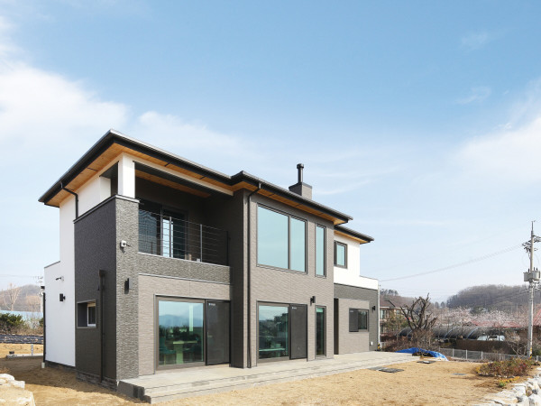 평화로운 마을에 자연스레 녹아든 단정한 외관 안에, 주택은 경쾌한 초록과 귀촌 부부를 품었다.주택은 단정한 컬러에 반듯한 선이 안정적인, 모던한 스타일의 일본식 주택 외관을 닮았다.“40년 직장 생활을 해오면서 한편으론 ‘저 자신을 속이고 있지 않았나’ 싶었어요. 치열한 경쟁은 권장할 만한 일이고, 또 좋은 것이라고.”주택 옆 텃밭에서 만난 건축주 권오대, 김진희 씨 부부는 밀짚모자 속 서글서글한 인상으로 취재진을 맞이했다. 치열하기로는 둘째가라면 서러운 금융계에서 근무하던 권오대 씨. 점차 지쳐가던 어느 날 고향에서 지인들과 차나 술 한잔하며 자연인처럼 지내는 상상이 머릿속에 불현듯 스쳐 갔다고. 평소에도 고향으로 내려가고 싶었다는 그는 슬하의 자녀들도 독립했겠다, 더는 미룰 수 없어 고향인 양평으로의 귀촌을 본격적으로 준비했다.고창과 넓은 발코니창으로 들어오는 풍부한 자연광과 밝은 화이트 인테리어로 늘 밝은 거실. 민트 컬러의 소파가 포인트가 되어준다.입지는 명확했다. 어머니가 남겨주신 작은 구옥이 있었고, 고향의 의미를 살리면서 정착의 어려움도 함께 극복하기 위해 그 자리에 집을 올리고자 했다. 물론, 여느 건축주가 그렇듯 집짓기 과정이 순탄하지만은 않았다. 처음 양평의 지역 시공사를 통해 집을 지으려다 쓰디쓴 실패를 맛봤던 것. 그 뒤로 지난 4월 서울 경향하우징페어에 참가하는 등 활발히 다양한 주택을 선보인 ‘코원하우스’와 다시 손을 잡고, 무탈히 올해 초 새집에 이사할 수 있었다.주택 좌측의 황토벽돌 건물은 건축주가 따로 지은 별채로 남편 오대 씨의 아지트 역할을 한다. (왼쪽) 주택은 땅을 한 단 복토해 지어져 더 넓은 전망을 확보했다.(오른쪽)그린 패턴 타일이 깔린 현관에 들어서면 바로 앞 짙은 그린 컬러의 욕실 문을 마주하게 된다. 이 역시 주택의 포인트 중 하나.주택은 조용한 양평 농촌 마을에 튀지 않도록 외관을 연출했다. 브라운과 블랙톤의 세라믹사이딩, 스터코플렉스를 적절히 사용한 모던한 일본식 목조주택이다.차분하고 정제된 주택 외부에서 내부로 들어서면 현관에서부터 가벼운 분위기 전환이 이뤄진다. 바로 오대 씨의 고집에서 탄생한 ‘녹색’ 콘셉트 컬러 때문. 녹색은 이 주택만의 아이덴티티가 되어 초록색 무늬 타일에서 시작해 가구, 문, 욕실 타일 등 인테리어 이곳저곳에서 소소한 즐거움을 선사한다.주방 겸 식당의 테이블에 앉아 바라보는 아침 해는 아내 진희 씨가 가장 좋아하는 풍경이다.공간 측면에선 대부분의 주요한 기능이 서쪽에 집중 배치되었다. 그중 식당-주방-다용도실-외부 수전-온실 텃밭으로 이어지는 흐름은 주택 내부의 일상과 외부에서의 귀촌 생활을 자연스럽게 잇는다. 이는 아내 진희 씨가 집 짓고 크게 만족했던 부분이기도 하다. 오픈 천장과 고창, 동남향으로 앉혀진 주택은 부부의 아침 풍경도 크게 바꾸어 놓았다. 진희 씨는 “식당에서 일출을 보며 차 한 잔으로 아침을 시작하고, 욕실 창으로 내려앉는 노을을 보며 하루를 마무리하는 데서 아파트 생활과는 다른 행복감을 느낀다”고 설명했다.오픈 천장과 그 위로 통일감 있게 올린 아트월은 그 자체만으로도 웅장한 느낌을 준다.HOUSE PLAN대지위치 ▶ 경기도 양평군 대지면적 ▶ 955㎡(289.39평) │ 건물규모 ▶ 171㎡(51.7평) 건축면적 ▶ 100㎡(30.5평) │ 연면적 ▶ 171㎡(51.7평) 건폐율 ▶ 10.4% │ 용적률 ▶ 15.2% 주차대수 ▶ 2대 │ 최고높이 ▶ 8.3m 구조 ▶ 기초 - 철근콘크리트 매트기초 / 지상 – 경량목구조 외벽 : 2×6 구조목, 내벽 : S.P.F 구조목, 지붕 : 2×10 구조목 단열재 ▶ 그라스울(내벽 : R11, 외벽 : R21, 지붕 : R32), 스카이텍 T8 외부마감재 ▶ 외벽 - KMEW 세라믹사이딩 16T, 스터코플렉스 / 지붕 - KMEW 세라믹 지붕재 창호재 ▶ LG하우시스 수퍼세이브5 22mm, LG하우시스 독일식 시스템창호 31mm 에너지원 ▶ 기름·가스 겸용 보일러 설계·시공 ▶ 코원하우스 1577-4885 www.coone.co.kr계단과 복도에는 투명 강화유리를 적용해 막힘없이 시원한 모습을 보여준다.INTERIOR SOURCE내부마감재 ▶ 벽 – LG하우시스 실크벽지, 윤현상재 수입타일 / 바닥 – 포세린타일, 구정 강마루 욕실 및 주방 타일 ▶ 구스토타일, 도기질타일, 자기질타일 수전 등 욕실기기 ▶ 아메리칸스탠다드, 대림, 바노테크, 세비앙 주방 가구 ▶ 대림 바스플랜 조명 ▶ LED 매입등, LED 자스민(거실) 계단재·난간 ▶ 애쉬 집성목 + 강화유리난간 현관문 ▶ 성우스타게이트 금속단열문 중문 ▶ 영림임업 초슬림 3연동 도어(알루미늄 프레임 + 투명유리) 방문 ▶ 영림 ABS 도어, 영림 타공도어 데크재 ▶ 현무암 THK30목욕을 즐기는 남편 오대 씨의 요청으로 욕실에는 샤워부스와 분리된 욕조를 마련했다.주택 뒤편에 만든 온실에서 텃밭 정리 중인 오대 씨양평에도 이제 훈훈한 바람이 불며 농사를 짓는 이들도, 정원을 가꾸는 이들도 하나 둘 씩 마당으로 나와 바쁜 요즘. 부부도 분주한 봄철을 보내고 있다. 어제는 마당에 꽃을 심고, 오늘은 온실 텃밭을 갈며 수시로 마을 공구를 고치거나 쓰레기를 정리하러 다니는 일상. ‘힘들지 않냐’는 질문에 “서로 돕고 사는 게 시골의 묘미고 또 오