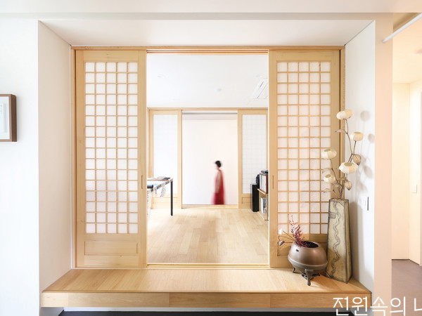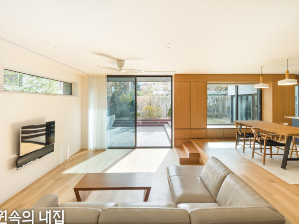 한적한 시골 마을, 비어 있던 3층 건물에 빛이 새어 나오기 시작했다. 다시 불을 밝힌 이는, 긴 시간 이 마을을 지켜온 부부였다.거실에서 바라본 안뜰. 안뜰을 통해 집 안에 햇살과 바람이 넘나들고, 자연스러운 시각적·공간적 확장이 이뤄졌다.충청남도 예산군 신양면 신양리. 남들 눈엔 그저 평범한 시골 마을이지만, 이곳에서 나고 자란 건축주에겐 의미가 남다른 곳이다. 젊은 시절, 아내와 두 아이를 키우며 고된 농장 일도 마다하지 않고 버텼던 날들. 그때마다 그에게 고향 땅은 존재만으로 큰 위로가 되어주었다. 부부는 그동안 누구보다 열심히 살아왔다 했다. 농장 옆 추운 집을 벗어나 따스한 공간을 자신들에게 선물하기로 한 건 그에 대한 보상이었다고. 그렇게 평생을 바라온 집 지을 꿈에 부풀어 있던 즈음, 예정에도 없던 마을 속 한 건물이 자꾸 눈에 밟혔다.SECTION ⑤주방 ⑬사랑채 ⑮안뜰(중정)집의 현관 입구. 둥근 벽이 주생활 공간으로의 자연스러운 진입을 유도한다. ©건축사사무소 d.o.m.a HOUSE PLAN대지위치 ▶ 충청남도 예산군 신양면대지면적 ▶ 777㎡(235.04평)건물규모 ▶ 지하 1층, 지상 3층(3층 리모델링 및 엘리베이터 증축)건축면적 ▶ 295.07㎡(89.25평) | 연면적 ▶ 1,092.47㎡(330.47평) / 3층 – 257.53㎡(77.9평)건폐율 ▶ 37.98% │ 용적률 ▶ 105.85%주차대수 ▶ 4대 │ 최고높이 ▶ 17.7m구조 ▶ 기초 – 철근콘크리트 매트기초 / 지상 – 벽 : 철근콘크리트구조단열재 ▶ 기존 : 외벽 비드법단열재 2종3호 50㎜ + 신설 : 내벽 비드법단열재 2종3호 80㎜외부마감재 ▶ 기존 : 화강석(포천석 + 문경석) 버너구이 마감 / 신설 : 엘리베이터 – 문양거푸집 위 노출콘크리트, 발수코팅창호재 ▶ 이건창호 PVC 3중창호(에너지등급 1등급) + 알루미늄 단열바 3중창호에너지원 ▶ 기름보일러 + 전기온수기구조 ▶ ㈜은구조기술사사무소 │ 시공 ▶ MK디자인설계 ▶ 건축사사무소 d.o.m.a 김성준 010-5323-9808 www.archilab-doma.com주변에 흔치 않은 화강석 옷을 입고 있지만, 90년대 초 은행으로 사용되었던 과거의 화려함은 온데간데없이 방치된 3층 건물. “마을 중심에 자리하고 있음에도 불구하고, 오랫동안 텅 빈 채 서 있는 모습을 보니 안타까운 마음이 들었어요. 결국 아내와 긴 논의 끝에 우리가 이 건물을 살려보기로 했죠.”마을 속 흉물이 될까 노심초사했던 이웃들도 부부의 어려운 결정에 응원의 말을 건넸다. 하지만, 건물을 고치는 건 의욕만큼 쉬운 일이 아니었다. 공사의 첫 단추인 리모델링해줄 이를 찾는 것조차 난관으로 다가왔다. 섣부른 판단이었을까 후회도 되었지만, 그렇다고 포기할 순 없었다.BEFORE : 공사 전 건물 전경과 내부. 90년대 초에 완공된 은행 건물로, 기둥 간격이 넓고 층고가 높은 편이었다. 외부 석재 마감과 콘크리트 벽체 사이에 50㎜ 단열재가 있었지만 매우 열악한 상태였고, 기존 기둥과 창호의 위치 변경은 불가능했다.거실 모습. 안뜰과 사랑채가 한눈에 들어온다.남서향에 위치한 주방은 해가 잘 든다. 주방의 수납 벽은 기존 기둥을 감싼 채 천장까지는 닿지 않게 하여 답답함을 없앴다. 그러다 우연히 들린 한 건축박람회에서 부부는 희망을 품었다. 건물에 새 생명을 불어줄 건축가를 만난 것이다. 두 사람이 원하는 최소한의 요구사항을 이야기하고 나머지는 건축가의 의견에 귀 기울였다.“일단 거주할 3층만 고치기로 하고 앞으로 그곳에 살아가게 될, 두 분이 생각하는 집에 관한 소망과 일상을 듣고 싶어 설계 전 많은 대화를 나눴어요. 그리고 그것을 바탕으로 집을 천천히 그려나갔죠.”안주인의 작업 공간인 사랑채. 안뜰의 풍경이 시야에 고스란히 담긴다.채광 좋은 다이닝 공간 건축사사무소 d.o.m.a 김성준 소장은 처음 집을 짓고 싶었던 부부의 마음을 담아 건물 속 한 층이지만, 집 안 곳곳에 햇살과 바람이 통하도록 그 중심에 안뜰을 놓았다. 이후 ‘ㅁ’자 평면을 따라 현관, 거실, 식당, 주방 및 보조주방, 부부침실, 게스트룸, 창고 등을 적재적소에 배치하고, 모든 공간이 복도를 통해 순환적 이동이 가능하도록 사용자를 배려한 동선을 계획했다.주방은 복도와 영역을 구분한 수납 벽을 설계하되, 천장까지 벽이 닿지 않게 만들어 사랑채와 안뜰로부터의 시각적 연속성을 확보했다. 특히 현관 입구에는 부부의 바람 중 하나였던 화장실과 욕실, 세탁 공간을 두고 복도 벽을 라운드(Round)형으로 디자인한 덕분에 주생활 공간으로의 유입을 자연스럽게 유도할 수 있었다.POINT 1 - 엘리베이터 수평 증축 3층에 위치하는 주거 공간과 부부의 나이를 고려해 엘리베이터를 설치했다. 외부는 별도의 공사하지 않았기 때문에 기존 외장재와 조화를 이룰 수 있도록 증축 부분을 노출콘크리트로 마감했다. POINT 2 - ‘ㅁ’자형 열린 안뜰 옥상에서 슬래브를 커팅(오픈)해 안뜰을 완성했다. 덕분에 집 안 모든 공간에 빛이 스며들고 바람이 잘 통할 수 있게 되었다. 바라보는 것만으로도 마음의 평안이 찾아온다고. POINT 3 - 다용도 사랑채 안뜰과 맞닿은 면에 툇마루를 둔 사랑채를 계획했다. 손님과 담소를 나눌 수 있는 다실, 그림과 서예를 즐기는 안주인의 취미 공간 등 다양한 용도로 활용할 수 있다.부부 침