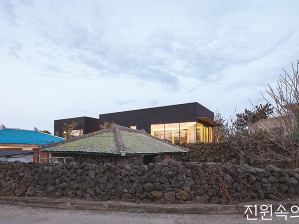 섬으로 이주해 이전과 전혀 다른 방식의 삶을 경험하고 있는 나날들. 가족만의 속도로 적응해 나가며 그들다운, 그들의 집을 지었다.서울에서 나고 자란 부부는 늘 가족과 함께하는 시간을 소중하게 여겼다. 언제나 어린 두 자녀와 산으로, 들로, 바다로 다니며 서로 교감하고 그 감정을 나누는 것은 그들에게 빼놓을 수 없는 삶의 중요한 일부분이었다. 그리고 그로 인해 좀 더 자연스럽게 살아가기를 바라며 오랜 고민 끝에 그동안의 대도시 생활을 모두 정리하고 이곳, 제주로 내려왔다.낯선 섬에서 네 식구가 처음 정착한 곳은 제주 시내였다. 생활의 틀을 무모하게 바꾸기보단 먼저 여기에서의 삶이 가족에게 타당한지를 직접 경험하며 그 답을 찾고 싶었다. 그렇게 부부는 차분히 완전한 정착을 준비해나갔다.ELEVATION작은 집들이 모여 있는 마을 초입, 도로에서 바라본 시호루두 개의 돌담을 지나면 건물 입구와 마주한다. / 동측 전경. 마을보다 대지가 높기 때문에 담을 낮추어 집이 마을에서 분리되어 보이는 것을 완화했다.시간이 흘러 익숙함이 몸에 뱄을 때쯤, 집을 짓기로 했다. 시내에서 40분쯤 떨어진, 외지인의 발길이 많이 닿지 않은 조그마한 마을이었다.남들이 다 원한다는 제주 풍경이 한눈에 담기거나 모양이 바른 땅은 아니었지만, 아이들이 다니기 좋은 초등학교가 바로 옆에 있고 걸어서 5분이면 작은 포구와 마주할 수 있어 정감 있고 한적했다.HOUSE PLAN대지위치 ▶ 제주특별자치도 제주시 구좌읍 | 대지면적 ▶ 366㎡(110.71평) | 건물규모 ▶ 지상 1층 | 건축면적 ▶ 95.93㎡(29.01평) | 연면적 ▶ 95.93㎡(29.01평) | 건폐율 ▶ 26.21% | 용적률 ▶ 26.21% | 주차대수 ▶ 1대 | 최고높이 ▶ 4.2m 구조 ▶ 기초 – 철근콘크리트 매트기초 / 지상 – 경량철골조 | 단열재 ▶ T100 EPS 패널, T10 열반사단열재 | 외부마감재 ▶ 삼화 테라코 사하라 | 담장재 ▶ 현무암 돌담 | 창호재 ▶ 이플러스윈도우 24mm 복층유리 시스템창호 | 에너지원 ▶ LPG | 조경석 ▶ 현무암 판석 조경 ▶ 푸른숲조경 | 토목 ▶ 호엘건설 | 구조설계(내진) ▶ 제이투 건축사사무소 | 설계 및 시공 ▶ 100A associates 02-919-9135, www.100a-associates.com공간을 둘러싼 유리벽은 내부와 외부의 경계를 모호하게 한다.‘ㄷ’자로 크게 열린 창은 시각적으로 공간을 확장시킨다. 마을과 면해 높은 담을 둘 수 없는 곳에는 잎이 풍성하게 자라는 나무를 심었다. / 실내는 아이들이 더럽히더라도 쉽게 닦아낼 수 있는 타일 소재 바닥재를 선택했다.DETAIL대지를 정했으니 남은 건 집을 지어줄 사람, 건축가를 찾아야 했다. 몇몇 건축가와 미팅을 가진 후 어렵사리 한 사무소를 택했다. 100A associates 안광일, 박솔하 디자이너와 만난 부부는 제주에서 생활하며 겪었던 환경적인 조건(비, 바람, 습기 등)에서 오는 문제점이 보완되고 마을 분위기와도 잘 어우러질 수 있는 집에 대한 바람을 내비쳤다. 비용과 장소 그리고 집의 기능 등을 여러 방면으로 서로 고심하고 논의하여 지난가을 첫 삽을 떴다.불필요한 벽을 과감히 없애고 거실과 주방 및 식당을 같은 동선상에 배치했다.침실에서 문을 열면 복도를 통해 마당까지 시선이 이어진다. 사적인 공간에 풍부한 빛을 들이고자 중정도 마련해주었다.서쪽으로는 대지보다 낮게 마을의 지붕선이 오밀조밀 펼쳐지고, 날이 좋으면 먼바다 수평선이 살짝 보이는 곳. 폭이 좁은 남측 대지에 맞춰 그곳에 동서로 긴 형태의 건물을 놓았다. 다른 집보다 2.5m가량 높은 경사면에 위치하고 있어 단순히 바다 조망을 위해 층을 높여서는 한갓진 마을 분위기에 해가 될 터. 때문에 부부는 망설임 없이 단층집으로 계획하고, 가족에게 필요한 최소한의 면적을 적용하여 30평 규모로 짓기로 했다. 면적이 크지 않은 대신 내·외부가 하나인 듯 시각적으로 넓어 보일 수 있게 빛을 반영한 설계도 잊지 않았다.INTERIOR SOURCE내부마감재 ▶ 삼화 수성페인트, 한화 인테리어필름 | 바닥재 ▶ VISTA 수입 포세린 타일, VINTAGE 강마루 | 욕실 및 주방 타일 ▶ VISTA 수입 포세린타일 / 욕조 및 세면대 – 마천석 30T | 수전 등 욕실기기 ▶ 아메리칸스탠다드 | 주방 가구 ▶ 현장 제작조명 ▶ 테크노 전기 LED 조명 | 현관문 ▶ 이플러스윈도우 시스템 도어 | 방문 · 붙박이장 ▶ 현장 제작 + 도장 마감, 현장 제작 + 필름 + 패브릭 마감POINT 1 - 제주도와 어울리는 마감재외부 마감재로 사용한 테라코 사하라는 짙은 색감과 질감이 제주도의 화산석과 같은 분위기를 낸다.POINT 2 - 집 안 곳곳의 창다양한 창을 통해 작은 정원을 조망한다. 창밖 풍경은 가족이 시간을 가지고 조금씩 그들의 마음을 담아 가꾸어 나갈 계획이다.POINT 3 - 하나가 된 열린 공간실내 공간을 넓게 사용하기 위해 거실과 주방, 현관을 한눈에 보이도록 했다. 기능을 합치니 가족이 모두 모일 수 있는 공간이 되었다.PLAN ①주출입구 ②테라스 ③현관 ④정원 ⑤거실 ⑥주방/식당 ⑦침실 ⑧중정 ⑨욕실 ⑩게스트룸 ⑪보일러실 평소에는 문을 열어 개방감을 살려주고, 대신 단을 둬 복도와 침실의 공간이 분리되도록 했다. 고즈넉한 분위기의 손님방가족이 함께 쓰는 욕실. 바닷가에서 물놀이하듯, 즐거운 시간을 보낼 수 있게 큰 
