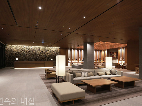 HDC현대산업개발이 2월 열리는 평창 동계올림픽 기간 동안 세계 각국의 올림픽 관계자 숙소로 활용할 예정인 ‘파크로쉬(PARK ROCHE)’를 지난 1월 22일 개관했다.이곳은 국내 최초 웰니스 리조트로 지하2층~지상12층 총 204실 규모로 김종호 공간디자이너[(주)디자인스튜디오 대표]가 천혜의 자연공간에서 Wellness/ Mindfulness를 감각적으로 재해석하여 차별화 된 공간으로 디자인 곳이다. 또한 영국 아티스트인 리차드 우즈(Richard Woods)와 콜라보레이션을 통해 건축물 외관 및 수영장, 지하1층 로비 공간 및 각층 엘리베이터 홀 등에 산, 자작나무, 나뭇잎, 바위, 돌 등 정선의 자연과 정선으로 오는 여정을 색채와 패턴으로 작품을 설치하였다.HDC현대산업개발이 2월 열리는 평창 동계올림픽 기간 동안 세계 각국의 올림픽 관계자 숙소로 활용할 예정인 ‘파크로쉬(PARK ROCHE)’를 지난 1월 22일 개관했다. 이곳은 국내 최초 웰니스 리조트로 지하2층~지상12층 총 204실 규모로 김종호 공간디자이너[(주)디자인스튜디오 대표]가 천혜의 자연공간에서 Wellness/ Mindfulness를 감각적으로 재해석하여 차별화 된 공간으로 디자인 곳이다. 또한 영국 아티스트인 리차드 우즈(Richard Woods)와 콜라보레이션을 통해 건축물 외관 및 수영장, 지하1층 로비 공간 및 각층 엘리베이터 홀 등에 산, 자작나무, 나뭇잎, 바위, 돌 등 정선의 자연과 정선으로 오는 여정을 색채와 패턴으로 작품을 설치하였다.파크로쉬는 강원도 정선군 가리왕산 국립공원의 자연과 알파인 스키장 시설이 있는 정선군 숙암리(宿岩里)는 '숙암’이라는 지명과 연관된 이름이다. 옛 맥국의 갈왕이 고된 전쟁을 피하여 정선 지역에 머물며 암석 밑에서 하룻밤을 유숙하고 숙면을 취했다 한 데서 착안했다고 한다. 지친 나그네를 품어주었던 큰 바위, 숙암에서 따 온 이름이다.리조트호텔 설계에서 무엇보다 중요한 요소는 목적성이다. 파크로쉬는 정신적, 육체적으로 지친 현대인들에게 일상에서 벗어나 온전한 쉼과 사색, 재충전에 집중할 수 있는 공간을 제공하는 것이다.디자인의 지배적인 키워드는 지역성과 장소성 이다. 파크로쉬의 이름에도 표현된 숙암리의 석재가 주제가 되어 다양한 시퀀스로 표현되었으며 빛을 머금은 자연적소재의 연출, 이를 통해 웰니스의 철학과 영감을 주는 디자인으로 기획하였다.HOUSE PLAN대지 위치 : 강원도 정선군 북평면 숙암리 482 일원용도 : 숙박시설(관광숙박시설) 및 부대시설대지면적 : 11,587.0000㎡건축면적 : 3,886.9399㎡연면적 : 총 31,434.9636㎡(지상층 : 19,880.7682㎡ / 지하층 : 11,335.9248㎡)규모 : 지하2층/지상12층 (객실 수. 총 204실)야외스파 면적 : 249.6636㎡국내에서 처음 시도되는 웰니스 콘셉트를 정립하고 프로그램을 검증해 나가는 과정 속에 많은 어려움이 있었다. 처음 건축에서 계획한 평면 프로그램에서 호텔측과의 운영 프로그램 방향 설정에 따라 여러 차례의 변경이 있었다.객실에서는 유니트 구성비가 바뀌고 여러 형태의 평면과 mock-up 작업이 있었다. 또한 부대시설은 호텔의 프로그램 기획에 따라 로비시설의 확장 및 위치 변경 레스토랑과 cafe등의 시설의 규모 변경이 있었고 사우나 및 액티비티 풀과 야외 수영장, 자쿠지 등의 시설들이 추가되었다. 메인 로비층은 숙암(宿岩)을 모티브로 싸이트에서 직접 채석한 석재를 활용하여 상징성을 부여하였다. 정선의 자작나무 숲, 다듬지 않은 바위의 감성과 벽난로 오브제. 빛을 머금은 나무 격자 아래 안락감이 충만한 소파를 배치하여 첩첩산중의 리조트 공간의 철학과 장소성을 강조하였다.1층 레스토랑과 카페는 자연 속에서의 휴식과 편안함을 강조하기위해 따뜻한 감성의 우드 소재로 천정의 우드패널과 나무격자 천정으로 디자인 하였다. 테이블과 소파 배치에 있어서도 시선은 스키 슬로프나 수영장을 향해 조망을 고려하여 배치하고, 공간의 영역성을 위해 격자로 디자인한 가구테이블을 의도적으로 배치하였다.스파시설은 오대천과 두타산 조망이 가능한 곳에 탕을 배치하여, 도심에서 느끼지 못하는 자연을 마주하는 사우나 구조를 형성하였다. 실내 인피니티풀과 레인샤워시설을 계획하고 야외 수영장시설을 이용하도록 계획하였다. 또한 프라이빗 자쿠지를 야외에 설치하여 수영장과 연계된 프로그램에 대응하도록 하였다.객실은 정선 천혜의 자연경관에 압도된다. 오대천과 가리왕산의 산새를 만끽할 수 있는 배치가 고려의 우선순위가 되었다. 객실공간을 계획함에 있어 외부경관과 호흡하는 공간감을 만들 필요성을 본능적으로 느낄수 있었다. 최대한 높은 공감감을 확보하기 위해 천정을 그대로 노출하는 이례적인 방식을 채택하였으며 개방된 공간을 목재 대들보 오브제가 관통하여 비일상의 체험, 파크로쉬만의 철학을 부여하였다. 공간을 유기적으로 가르는 석재 오브제는 숙암(宿岩)으로부터의 영감에 기인한다. 숙면의 공간을 지향하는 리조트의 철학과 숙암(宿岩)의 스토리로 파크로쉬의 디자인에 담아내고자 했다.2층에는 요가,휘트니스,북카페,수면 랩센터, 트리트 먼트 공간을 배치하여 웰니스 프로그램의 체험공간의 기능을 극대화 시키켰다. 이색적인 프로그램