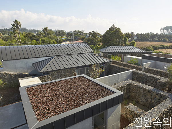 VT 하가이스케이프는 제주에서 잠깐이라도 머물면서 지내러 오는 사람들을 위한 집이다. 우리는 제주를 유명한 관광지로만 보는 것이 아니라 일상에서 벗어나 누구에게도 방해 받지 않고 쉴 수 있는 곳이 되었으면 했고, 그렇게 지낼 수 있는 집을 상상했다. 글_ 피그건축사사무소 사진_ 이승희, 에그플랜트 팩토리대지는 오름이 가까이 있고, 바다가 원경으로 보이는 중산간 마을에 위치하고 있다. 스테이 시설로 사용하기에는 큰 땅을 어떻게 활용할 것인지가 디자인의 출발점이었다. 우리는 넓은 땅과 작은 집이 만나는 방식에 따라 집을 두 가지 타입으로 나누어 설계했다.첫 번째 타입인 A동과 B동은 땅을 잘게 나누고 각 공간들을 주방, 침실, 식당, 거실, 목욕탕 등으로 사용한다. 지붕이 있는 실내공간은 침실과 주방뿐이지만, 외부공간들 역시 천장이 열린 방으로 사용되기를 원했다. 내리는 눈을 맞으며 목욕을 하고, 파란 하늘을 바라보며 돌담 옆에서 밥을 먹을 수 있는 방들을 계획했다. 골목길에서부터 가장 깊숙한 거실까지 가면서 만나는 돌담, 길보다 낮게 자리잡은 외부공간, 돌담 위에 바로 올라타 있는 낮은 지붕을 통해서 일상에서 벗어난 제주의 마을 풍경을 떠올릴 수 있도록 했다.두 번째 타입인 C동은 넓은 땅을 전용으로 가지고, 그 땅을 향해서만 열려 있다. 긴 돌담 한 켠의 입구로 들어서면, 구획이 없는 넓은 거실에서 마당과 그 너머의 바다를 혼자서 바라볼 수 있다. 마당을 향해 열린 ㄱ자 형태의 노출콘크리트 지붕과 깊숙이 들어와 있는 투명한 유리면을 통해서 실내공간과 외부공간의 구분이 약해졌으면 했고, 결과적으로는 900평의 넓은 들판에서 혼자 조용히 지낼 수 있는 공간이 되도록 계획했다. 바다가 잘 보이는 옥상에는 백사장을 만들었다. 중산간 지방이지만, 공중에 떠있는 모래 위에 누워 하늘과 바다를 바라보는 공간이다. 단지 입구에서 방문객을 맞이하는 볼트 지붕의 근린생활시설은 이벤트 공간으로도 활용한다. 전면유리 전체를 반으로 접어 올려 외부공간과 실내공간을 하나로 연결시키면 파티, 쇼룸 등 다양한 용도로 사용할 수 있도록 계획했다.건축개요대지위치(주소) : 제주특별자치도 제주시 애월읍 하가로 184 | 대지면적 : 1,649 ㎡ | 건물규모 : 지상1층 | 건축면적 : 416.58㎡ | 연면적 : 400.64㎡ | 건폐율 : 25.26% | 용적률 : 24.3% | 주차대수 : 3대 | 최고높이 : 6.2m공법 : 기초 - 철근콘크리트 매트기초 / 지상 – 철근콘크리트 | 구조재 : 벽 - 철근콘크리트 / 지붕 – 철근콘크리트 | 지붕마감재 : 징크 | 단열재 : 압출법 보온판 특호 | 외벽마감재 : 노출콘크리트, 제주석 | 창호재 : 제주창호 알루미늄 시스템 창호 | 에너지원 : LPG구조설계 : 터구조 | 기계설계 : 타임테크 엔지니어링 | 전기설계 : 신한전설주식회사 | 조경 : 그린샐러드플라워 | 스타일링 : 차리다 스튜디오 | 사진 : 이승희, 에그플랜트 팩토리 | 시공 : 하마팩토리 이승열 | 설계 : (주)피그건축사사무소(김대일, 김한중, 이주한) + 에그플랜트 팩토리(최한메) 자재사양내벽마감재 : LG 지아프레시 실크벽지, 티크 무늬목, 노출콘크리트, 제주석바닥재 : Nass 원목마루, 윤현상재 포세린 타일 욕실 : VOGUE 타일수전 등 욕실기기 : 아메리칸스탠다드 계단재 : 윤현상재 포세린 타일현관문 : 제주창호 알루미늄 시스템 창호데크재 : 이페목 데크재건축가 피그건축사사무소 + 에그플랜트 팩토리김대일은 서울대학교 건축학과와 동대학원을 졸업하였다. 이후 범건축종합건축사사무소와 건축사사무소아뜰리에십칠을 다녔고, 2015년 피그건축사사무소를 설립하였다. 이주한은 서울대학교 건축학과와 동대학원을 졸업하였다. 이후 희림종합건축사사무소와 삼성물산을 다녔고, 2015년 피그건축사사무소를 설립하였다. 대한민국 건축사이며, 가천대학교 겸임교수이다. 김한중은 서울대학교 건축학과와 동대학원을 졸업하였다. 이후 범건축종합건축사사무소와 경영위치건축사사무소를 다녔고, 2015년 피그건축사사무소를 설립하였다. 현재 생산실험집단 베이스먼트워크샵의 디렉터 및 그라운드 아키텍츠의 소장이다. 최한메는 홍익대학교 건축학과를 졸업하였다. 이후 범건축종합건축사사무소를 다녔고, 2013년부터 에그플랜트 팩토리에서 공간 디자인을 담당하고 있다.*파일명에 별도 표기 없는 사진의 저작권은 이승희, 표기가 있는 것의 저작권은 에그플랜트 팩토리입니다, ※ 월간 <전원속의 내집> www.uujj.co.kr 본 콘텐츠의 저작권은 (주)주택문화사에 있으며, 이를 무단 이용하는 경우 저작권법 등에 따라 법적책임을 질 수 있습니다.