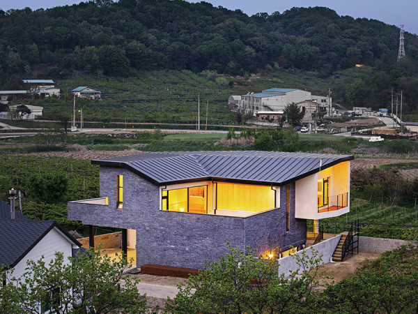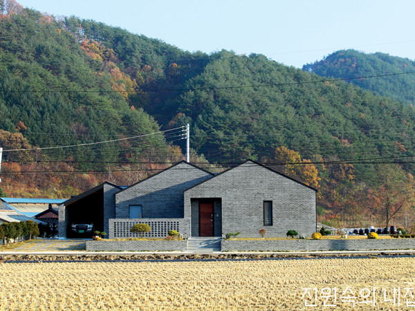 어느새 훌쩍 자라 어른이 된 딸은 자신이 태어나고 자란 땅에 부모님을 위한 목조주택을 지었다. 주변을 포근히 감싸는 산의 우직함을 닮은 집이다.취재 조고은 사진 변종석HOUSE PLAN대지위치 : 강원도 양구군 동면대지면적 : 474㎡(143.39평) 건물규모 : 지상 1층건축면적 : 152.51㎡(46.13평)연면적 : 152.51㎡(46.13평)건폐율 : 32.18%용적률 : 32.18%주차대수 : 1대최고높이 : 3.3m(실내 천장 마감 기준)공법 : 기초 - 콘크리트 줄기초, 지상 – 경량목구조구조재 : 벽 - 2×6 구조목, 지붕 - 2×10 구조목지붕마감재 : 알루미늄 징크단열재 : 셀룰로오스외벽마감재 : 은색 전벽돌창호재 : 엔썸창호 PVC 시스템 창호설계 : 지랩(Z_Lab) www.z-lab.co.kr시공 : 블랙핑거스 070-8751-2580 www.blackfingers.co.kr총공사비 : 2억2천만원(가구, 조경 별도)마을로 들어서자 멀리 펼쳐진 산 능선을 그대로 따다 그린 듯한 주택 한 채가 나타난다. 마치 세 채의 박공지붕 집이 겹쳐 있는 듯한 이 은회색 벽돌집은 강진경 씨의 부모님 댁이다. 그녀가 나고 자란 강원도 양구 고향 땅을, 부모님은 언젠가 집을 지을 생각으로 10년간 방치된 폐가를 철거해 잘 정리해두었더랬다. 그리곤 오랫동안 품어온 집짓기에 대한 꿈을 장성한 딸의 손에 맡긴 것이다.진경 씨는 마침 주거환경학을 전공해 건축에 대한 기본적인 지식과 감각이 있는 터였다. 하지만 본격적으로 집을 짓자니 전문가의 도움이 필요했다. 그래서 함께하게 된 이가 블랙핑거스 한국남 실장이다. 서울 봉천동 주택가에 버려진 공간을 카페로 만들어 운영한 적이 있는데, 그때 프로젝트를 맡아준 인물이었다. 그는 바쁜 진경 씨를 대신해 함께 작업할 설계자를 물색했고, 미팅 후에는 녹음한 내용을 브리핑하며 진경 씨와 의논했다. 심사숙고 끝에 집짓기에 합류하게 된 설계팀이 바로 지랩(Z_Lab)이다.다방면의 젊은 전문가들의 협업으로 지어진 이 집의 이름은 ‘사계절의 집’이다. 지랩 노경록 실장은 처음 만난 대지의 모습에서 모티브를 얻었다고 전한다. 대지는 남쪽과 서쪽으로 넓은 논이 펼쳐지고, 북쪽과 동쪽으로 산이 병풍처럼 감싸고 있었다. 초봄이었던 당시, 몇 겹의 산 너머로 아직 하얗게 눈이 덮인 태백산맥의 웅장함도 보였다. 사계절의 변화를 가장 가까이에서 느낄 수 있는 이곳에 산을 닮은 집을 짓자는 제안에 모두의 의견이 모였다. 이후 한 실장이 집짓기의 코디네이터이자 시공사 역할을 도맡았다. 설계·시공 과정에서 건축주와 의견 조율을 중재하는 것은 물론 내·외부 주요 마감재 선정, 인테리어 디자인 기획과 시공 관리가 모두 그의 손에서 이루어졌다. CONCEPT DIAGRAM집짓기에 앞서, 아버지는 차고에 특별히 신경 써달라고 요청했다. 오랜 시간 이 마을에서 식당을 운영해온 어머니도 널찍한 주방과 다용도실이 꼭 있었으면 좋겠다고 전했다. 이를 충실히 반영한 평면은 실거주자인 부모님의 연세를 고려하여 최대한 단순하게 구성했다. 욕심부리지 않고 단층으로 꼭 필요한 실만 구성한 것도 같은 맥락이다. 잠들기 전 불을 끄기 위해 다시 일어나지 않아도 되도록 안방 벽 낮은 높이에 스위치를 하나 더 만들어둔 작은 배려도 엿보인다.집은 경량목구조로 지어졌다. 건강이 좋지 않은 아버지를 걱정했던 진경 씨가 모교의 교수님께 자문을 구해 선택한 공법이다. 서향인 집의 전면에는 창을 최소한으로 했고, 남쪽으로 넓은 마당을 두고 창을 크게 내었다. 현관을 정면으로 보았을 때 손님방을 가장 앞에 두고 거실, 안방 순으로 두어 프라이버시를 고려하는 것도 잊지 않았다. PLANINTERIOR SOURCE내벽 마감재 : 실크벽지바닥재 : 수입 원목마루(오크)욕실 및 주방타일 : 윤현상재 수입타일 등수전 등 욕실기기 : 아메리칸스탠다드주방가구 : 오크 무늬목 시스템 주방 주문 제작조명 : 제작 펜던트(식탁 조명), 을지로 플러스조명 LED 등기구 등현관문 : 지랩·블랙핑거스 제작방문 : 자작나무 방문 제작붙박이장 : 한샘 유로화이트 8000TV장 : 밀로드 www.millord.com데크재 : 방킬라이양구의 겨울은 유난히 춥고 눈이 많이 내린다. 그래서 사실 이 집의 포인트가 되는 박공지붕은 폭설에 대비해서라도 꼭 필요한 선택이었다. 단열성을 높이기 위해 구조재 사이에는 셀룰로오스를 고밀도로 채워 시공하고, 외장은 매스의 단순한 선을 살릴 수 있으면서도 단단한 느낌을 주는 은색 전벽돌로 마감했다. 아버지가 가장 좋아하신다는 목재 현관문은 자칫 차가워 보일 수 있는 외관에 따뜻함을 더해준다.※ 월간 <전원속의 내집> www.uujj.co.kr 본 콘텐츠의 저작권은 (주)주택문화사에 있으며, 이를 무단 이용하는 경우 저작권법 등에 따라 법적책임을 질 수 있습니다.