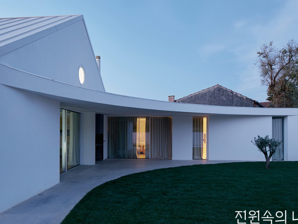 포르투갈의 앙시옹이라는 유서 깊은 도시와조화를 이루며 인체의 황금비율을 근간으로 지어진처마 깊은 집을 소개한다.건축가 브루노 루카스 디아스(Bruno Lucas Dias)가 설계한 이 주택은 포르투갈의 유서 깊은 도시, 앙시옹(Ansião)에 위치한다. 앙시옹은 역사가 오래된 만큼 낡기도 낡아 지역 개발의 과제를 안고 있는 도시다.그러나 건축가는 도시를 완전히 새로운 모습으로 탈바꿈할 파격적인 주택보다는 기존 주택들과 잘 어우러져 공생할 수 있는 주택을 짓고자 했다. 옛 마을을 향한 존중의 마음이었다. 우선 주택이 새로 지어질 대지 옆에는 다른 건축물이 벽을 맞대고 바로 인접해 있어서 프라이버시가 무척 중요했다. 따라서 담장을 높이되 그 안에는 하늘을 향해 활짝 열려 있는 넓은 마당을 둥그런 형태로 조성해 아늑함과 개방감을 동시에 주었다.이로써 안쪽 마당은 집의 모든 구역을 끌어당기는 핵심 요소가 되었다. 건축가가 중요하게 생각하는 인체의 황금비율 역시 이 주택을 지을 때 많은 영감을 주었다. 황금비율의 가장 명백하고도 주목할 만한 실례는 인체이고, 인간 존재야말로 주택의 핵심 요소인 까닭이다.박공지붕과 3개의 창, 1개의 현관문만 보이는 외부에서는 이 주택의 안쪽이 둥근 마당과 하나의 긴 처마로 이뤄져 있다는 사실을 알기 힘들다는 점이 재미있는 반전 요소다.PROJECT INFOProject ≫ February 2015 - March 2016Location ≫ Rua Doutor Domingos Botelho de Queirós, AnsiãoArea ≫ 487m²Architecture FIRM ≫ Bruno Dias Arquitectura, bd@brunodiasarquitectura.ptProject Team ≫ Bruno Lucas Dias, Humberto Lopes, Joana Zuna, Eugénia GomesBuilding Company ≫ Pireslar - Construção Lda. , Carlos Miguel Mendes da Silva Photography ≫ Hugo Santos SilvaCONTENTS COLLABORATION ≫ NemoFactory(Korea) www.nemofactory.net실내에는 따뜻한 색상과 소재를 적용해 공간적 편안함을 선사한다. 건축주가 기존에 살던 옛집과 유사한 인테리어 요소들을 이 주택에도 적용해 새로운 집에서도 안정된 생활방식을 유지할 수 있도록 도왔다. 특히 주방과 아이 방의 수납장, 복도 바닥 등에 목재를 사용해 차분한 분위기를 더했다.복도를 따라 모든 공간이 하나로 이어져 있고 실내 어느 공간에서나 마당을 바라볼 수 있게끔 설계된 점도 이 주택의 흥미로운 요소 중 하나다. 마당 한편에는 수영장을 설치해 가족들의 야외 활동을 지원한다. 깊은 처마 밑에는 의자를 두는 등 테라스로 활용하게끔 설계됐다.건축가 Bruno Lucas Dias_Bruno Dias ArquitecturaBruno Lucas Dias가 설립한 건축사사무소는 포르투갈 앙시옹 Dr. Vítor Faveiro 거리에 위치한다. 주택뿐 아니라 소방서, 교회, 상업공간 등을 설계하며 분야를 넘나드는 포트폴리오를 보유하고 있다. 곡선과 직선을 자유자재로 활용하며 자신만의 철학이 담긴 건축물들을 선보인다. 다수의 건축 콘테스트, 강연 등에도 참여하며 활발하게 활동하고 있다.취재_오수현| 사진_Hugo Santos Silvaⓒ 월간 전원속의 내집 / Vol.279 www.uujj.co.kr월간 <전원속의 내집>의 기사 저작권은 (주)주택문화사에 있습니다. 무단전재, 복사, 배포는 저작권법에 위배되오니 자제해주시기 바랍니다.