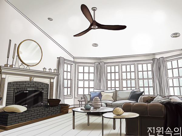 GOOD IDEA★ 집을 쾌적하게 관리하기 위해서는 환기가 중요합니다. 실링팬은 실내 공기의 순환을 원활하게 해주어 실내를 빠르게 환기시킬 수 있습니다. 코로나 위험으로 요즘같이 환기가 중요한 시기에 더욱 유용합니다.★ 공기의 순환이 원활해져 냉·난방 에너지 효율을 높일 수 있습니다. 위아래 공기의 온도 차를 줄이는 효과로 약 20~30% 에너지를 절약할 수 있죠. 정방향과 역방향 기능이 있으면 여름뿐만 아니라 겨울에도 따뜻한 공기를 아래로 순환시켜 에너지 효율을 높일 수 있습니다.★ 공간의 중앙에 설치하기 때문에 비교적 넓은 범위를 커버할 수 있어 비슷한 기능을 하는 선풍기나 서큘레이터보다 효율적입니다. 또한 바닥을 차지하지 않고 이동 중 걸릴 위험도 없습니다.★ 인테리어 효과를 얻을 수 있습니다. 실링팬의 디자인, 컬러, 재질 등을 다양하게 선택할 수 있어 원하는 분위기를 자유롭게 연출할 수 있습니다.BAD IDEA▲ 천장고에 따라 설치에 제약이 있습니다. 미국의 실링팬 업체들은 바닥에서 날개의 높이까지 최소 2.1m 높이로 천장에 설치하기를 권장합니다. 일반적으로 국내 아파트의 경우 천장고의 높이가 2.3~2.4m 정도 되며, 안전과 효과 면에서 짧게 내려오는 실링팬을 설치합니다.▲ 천장 보강 작업이 필요할 수 있습니다. 실링팬 자체의 무게는 7~8kg이지만 회전하면서 발생하는 진동과 무게, 역회전 시 천장을 잡아 내리는 힘까지 고려하면 20kg 정도의 하중을 견딜 수 있어야 합니다.▲ 조명의 위치를 고려해야 합니다. 최근에는 우물천장에 매립 간접조명을 시공 후 실링팬을 설치하는 경우가 많습니다. 실링팬이 돌아갈 때 조명이 깜빡여 보이거나 그림자가 생기지 않도록 적절히 위치 설정을 해야 합니다.▲ 비용적인 측면에서 부담이 될 수 있습니다. 실링팬 구입 비용 이외에 위에 언급된 시공 비용이 추가로 들어가기 때문입니다.취재_조재희| 일러스트_임경은ⓒ월간 전원속의 내집/ Vol.272 www.uujj.co.kr월간 <전원속의 내집>의 기사 저작권은 (주)주택문화사에 있습니다. 무단전재, 복사, 배포는 저작권법에 위배되오니 자제해주시기 바랍니다.
