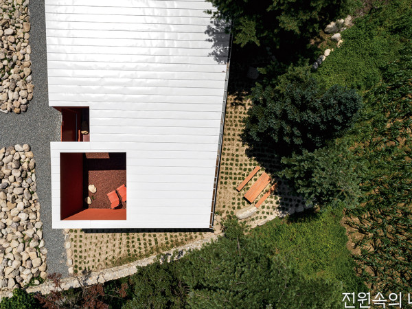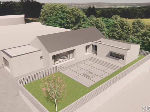 건축설계는 계획설계, 기본설계, 실시설계로 이어진다. 대지 여건을 고려한 배치부터 공간의 풍성함을 결정짓는 단면, 세대수와 가족의 취향을 반영하는 평면 계획 단계에서 건축가의 다양한 아이디어를 엿보는 기회를 가져본다.HOUSE PLAN 대지위치 : 경기도 이천시 지역지구 : 계획관리지역 대지면적 : 550㎡(166.37평) 건축면적 : 199.8㎡(60.44평) | 연면적 : 199.8㎡(60.44평) 건물규모 : 지상1층 건폐율 : 36.32% | 용적률 : 36.32%CONCEPT계단 형태의 대지에 얹어진 보강토 블럭 경계를 살려 차고와 외부 주차공간을 동시에 조성했다. 각각 마당과 거실로 바로 진입할 수 있게 동선을 분리해줬다. 땅의 가장 큰 장점인 트인 남향의 조망을 위해, 풍경과 어우러지는 박공지붕을 얹고 남향의 큰 마당을 두는 가장 기본에 가까운 설계가 이뤄졌다. 마당은 잔디와 바닥의 영역을 구분하고, 높낮이의 차이를 주어 각각의 쓰임새에 맞게 활용할 수 있도록 했으며 집의 구심적 공간으로 만들었다.SITE서이천 IC를 통하는 접근성을 가졌으며, 이천 도예마을과 가까운 한적한 외곽 지역 경사지에 위치한 대지이다. 경사지이기에 개발행위를 통한 대지 조성이 필요했고, 설계 단계부터 가상의 레벨을 고려한 평면계획과 야외 공간 등의 배치가 주된 설계의 콘셉트로 이어졌다.FAMILY이천에 위치한 직장을 다니고 있으며 단독주택을 지어 사는 것이 꿈인 평범한 건축주 가족이었다. 자녀를 포함해서 3인 가족의 삶을 잘 담아낼 수 있는 거주공간을 갖추기 위해 땅이 가진 장점을 잘 살려내는 것이 계획의 기초가 되었다.마당은 석재계단을 통해 단차를 주고, 파이어핏 등을 조적해 한결 더 다채로운 면모를 지니게 됐다.집 속의 집, 거실 속의 주방 단순하고도 클래식한 형태인 박공지붕 집이지만, 집 속에 또 다른 집을 두며 변화를 주었다. 집 속의 집 내부에는 조리 공간을 포함한 주방을 두어 관리와 수납을 해결함과 동시에 이 집의 단순함을 극대화시킨다. 외부 박공지붕 경사와 동일한 박공지붕이지만, 마감재와 천창으로 드는 빛을 통해 존재감이 드러나며 인테리어에 시각적인 재미까지 부여했다.화이트톤의 정돈된 인테리어 속에, 내추럴 우드톤이 더해지며 아늑한 분위기를 만든다.공간에 풍성함을 더하는 채광 따뜻한 남향의 채광은 대부분의 집이 원하는 조건이다. 마당으로 탁 트인 채광창은 석재 등으로 마감될 바닥 영역과 마주하며 막힘없는 시선을 보장한다. 여기에 집속의 집 위와 내부에도 픽스창 등으로 채광을 더해 답답함을 덜어냈다.대지가 가진 풍경이란 장점을 위해 넉넉한 규모의 창을 구성했다.마당 너머 풍경까지의 개방감 거실의 채광과 더불어 실내 대부분의 공간이 큰 마당을 향해 창을 내어 확장성을 가진다. 날씨가 따뜻해지면 마당에 더 이상 시각적이기만 한 것이 아닌, 발길이 가는 진정한 중심 공간의 역할도 기대할 수 있을 것이다.‘집 속의 집’에는 조리 공간을 구성해 거실과 주방이 분리되면서도 소통할 수 있다. 내부에서도 거실과 외부를 볼 수 있게 평행한 창을 만들어줬다.권태원 건축가 : 토호건축사사무소인하대학교 건축과, 한양대학교 건축대학원을 졸업하고 위드건축과 삼우종합건축사사무소에서실무를 익혔다. 2016년 TOHO Architects를 개소하여 다양한 건축 및 인테리어 프로젝트를 진행해오고 있다. http://tohoarch.com기획_ 손준우ⓒ월간 전원속의 내집 2024년 2월호 / Vol.300 www.uujj.co.kr