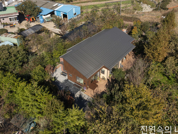 음성으로 듣기번역 설정글씨크기 조절하기인건축주 부부는 교직에서 막 은퇴한 분들이었다. 부지에는 원래 구옥이 있었는데, 당초 남편은 그냥 기존 구옥에 살 계획이었다. 그러다 생각을 바꾸어 아내가 희망했던 집짓기에 동참하게 되었다. 기존 땅의 일부를 새집을 위한 공간으로 내준 덕분에 주변의 울창한 조경에 둘러싸인 여건에서 집을 지어야 했다. 공사를 하기엔 비좁고 수목이 우거져 불편했지만, 훗날 건축주가 좋은 자연환경에 둘러싸여 생활하게 될 것을 감안해 조심스레 공사를 진행하였다.아이들이 한 살이라도 어릴 때 마당 있는 집을 지으려는 수요가 늘고 있다. 이런 가운데 은퇴 후 조용한 삶을 원하는 분들의 집을 대하는 자세는 남다르다. 우선 생애 첫 집이 아니기 때문에 머릿속에 있는 모든 것을 쏟아내어 집을 지으려 하지 않는다. 무엇이 나에게 필요하고 무엇이 불필요한지 합리적으로 판단한다. 생애 첫 집이거나 아이들이 어릴 때는 집에 거는 욕심과 기대가 때로는 차고 넘치기도 한다. 그래서 완공 후에 만족과 동시에 아쉬움이 따르기 마련이다.2. 현관 4. 거실 6. 주방 7. 썬룸 8. 취미서재일단 이 집은 조경이 우선이었다. 요즘 이런 성향의 건축주들이 늘고 있는데, 바람직한 현상이다. 집 자체에 집착하기보다는 주변 환경, 조경, 내 취미 생활과 함께할 수 있는 집을 오롯이 구상하는 것이다. 오르내리기도 힘들고 관리도 어려운 2층 구조는 과감히 포기한다. 가끔 오는 자식들 공간을 마련해 둬야 할까 고민도 했지만, 그마저도 과감히 생략했다. 이렇게 계획을 짜다 보면 집중해야 할 공간들이 더 명확해진다. 두 사람의 은퇴 후 삶이 주된 포인트였다. 오가는 지인이나 자식들은 이 집의 주인공이 아니다.두 부부는 모두 동물을 좋아하고 식물 가꾸기를 좋아한다. 같이 하는 동식물과 함께하는 삶이 그들에겐 중요했다. 또한 집 어디서든 조경을 바라볼 수 있는 시선과 접근성을 원했다. 그런데 처음 도면을 받아보았을 때, 배치가 건축주 생각과 다소 달랐다고 한다. 무엇보다 현관 위치가 가장 뒤쪽에 있어서 의아해한 것이다. 보통 마당을 밟고 현관으로 들어가야 하는 것 아닌가 생각했던 부부는 조심스레 건축가에게 의도를 물었다. 설계를 맡은 홈스타일토토 임병훈 소장은 건축주 부부의 라이프스타일에 초점을 맞추어 풀어나갔다.HOUSE PLAN대지위치 : 경남 고성군 구만면 효락리대지면적 : 1292㎡(약 390.83평)건물규모 : 지상 1층건축면적 : 155.52㎡(47.04평)(기존 구옥 제외)연면적 : 154.77㎡(46.82평)(기존 구옥 제외)건폐율 : 19.64%(기존 구옥 합산) 용적률 : 19.45%(기존 구옥 합산)주차대수 : 해당 없음최고높이 : 5.5m구조 : 경량목구조단열재 : 벽 - T140 그라스울단열재(가급) + T50 비드법 1종3호단열재 / 기초 - T60+T100 비드법 2종1호 단열재(가급) / 지붕 - T185 연질수성폼(가급)외부마감재 : 외단열 위 콘크리트 타일, 합성목사이딩지붕재 : POS-MAC 내부식성 강판창호재 : 디크닉 에너지원 : 기름보일러건축/인테리어 디자인 : 홈스타일토토 02-720-6959 www.homestyletoto.com인허가 : 토토(TOTO)건축사사무소시공 : 제이콘(JCON)건축주 부부의 생활은 테니스를 자주 치고, 온도에 예민한 식물들을 둘 썬룸이 필요했다. 또 양지바른 서재에서 책 읽다가 그냥 그 자리에서 낮잠도 자고, 주방에서는 요리도 자주하는 편이었다. 바로바로 요리해서 밖을 바라보며 식사하려면 썬룸-거실-주방-서재가 이 집의 메인이 되어야만 했다. 그 공간들은 모두 남향에 위치해야 마땅했고, 마당 조경을 바라보는 게 자연스러웠다. 그러면 당연히 우선순위에서 2순위로 두어야 할 것은 잠만 자는 침실과, 언제 쓰게 될지 모르는 손님방, 어쩌다 외출할 때 들락거릴 현관, 창고, 화장실, 다용도실같은 공간이었다. 그 공간들을 좋은 자리 대신 뒤로 배치되면 해결되는 방안이었고, 그 의도가 효과적으로 반영된 설계안이었다. 바로 이해를 한 건축주는 매우 기뻐했고, 준공 후 현재까지 살면서도 아주 잘한 선택으로 생각한다. 주방에 있으면 응접실-거실-서재까지 물리적으로 연결되어 시야가 막히는 게 없고 조경이 시원스레 보여서 좋다. 만약 현관이 일반적인 집처럼 중간에 자리했다면 이러한 공간감이 나올 수 없다.INTERIOR SOURCE내부마감재 : 벽, 천장-삼화친환경페인트타일 : 포세린 타일(국산/수입)수전/도기 : 대림바스조명 : 린노조명, 공간조명도어 : 성우스타게이트 / 우딘도어바닥재 : 구정 강마루PLAN 1F – 154.77㎡1. 방 2. 현관 3. 보일러실 4. 거실 5. 응접실 6. 주방 7. 썬룸 8. 취미서재 9. 데크 10. 드레스룸 11. 보조주방 12. 다용도실 13. 펜트리설계자 입장에서 이 집이 건축주 만족도가 높은 이유는, 건축주 본인이 원하는 방향을 명확히 생각하고 표현했기 때문이라고 생각한다. 그 부분이 충족되면 나머지 디자인 밸런스는 설계자에게 온전히 맡겼지면 된다. 지금도 마당 가꾸기를 이어갈 건축주 부부를 생각하면 마음이 따뜻해진다. 집이 주인공이 아니다. 거기서 살아갈 삶의 내용들이 중요하다. <글_ 홈스타일토토 임병훈 소장>주택디자인 _ 홈스타일토토13년간 100채가 넘는 집을 디자인했으며, ‘디자인(임병훈 소장) + 인허가(정신애 소
