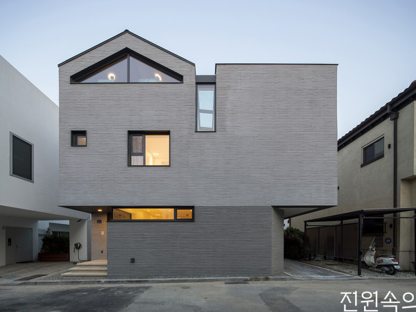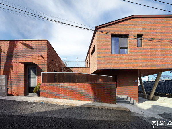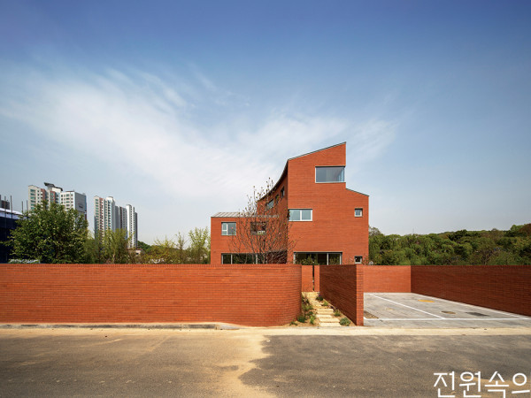 기교를 덜어내어 자연과 조응하게 만들고, 나아가 사는 이의 모습을 닮게 하는 집.건축이 가져야할 태도에 대해 고민하며 완성한, 감각을 깨우는 단독주택 건축기간결한 외장재와 직선과 곡선이 교차하듯 매스가 더해져 연출된 구조미는 한국 전통 양식의 미감과도 닿아있다.보편성과 미니멀리즘을 더해 만든 빛건축주 내외는 30~40년 가까이 함께 교단에 서시며 한 길만 걸어오신 선비와 같은 인품을 가진 분들었다. 과거 오랜 시간동안 몇만 평 딸기밭으로 일구어졌던 수원 이목동의 작지 않은 면적의 땅이 어느 개발업자의 시행으로 잘 정돈된 개발택지로 변모하였고, 교직 은퇴후 남은 인생 평생을 두어 살고 싶은 좋은 땅을 알아보던 건축주는 노송공원과 인접하여 고즈넉한 풍경과 정취가 인상적인 이 곳 대지에 집을 짓기로 결정했다. 이후 여러 설계사무소를 살펴보며 상담을 진행했고, 한정된 예산이지만 성심껏 내집을 짓듯 설계와 시공을 통합하여 준공까지 책임지는 건축사사무소를 원했고 그렇게 ‘아키텍츠601’과 인연이 닿았다.건축주는 가족의 라이프스타일을 고려하여 연면적 최대 60평 정도 3층 규모의 콘크리트구조 벽돌집 단독주택을 원했다. 또한 건축주는 정원이 자유롭고 아름다운 마당을 품은 주택 고유의 친밀한 서정성을 바랐다. 건축공간을 향하며 대지를 읽고 주변 환경의 맥락을 살펴본 직관적 감성으로 ‘붉은 흙’의 땅을 닮은 재료로써 적벽돌 외장재를 고안했고, 건축주도 수긍하여 설계가 순조롭게 진행되었다. 고온의 소성으로 흙을 구어내어 만든 붉은 치장벽돌의 구축성은 건축의 순수성을 드러내고, 평면의 조닝은 건축주의 라이프스타일 패턴과 가족구성원의 고유한 일상성을 섬세하게 반영해 디자인되었다. 가족구성원 개인의 독립된 프라이버시와 공동성의 시간이 조화롭게 관계맺는 공간 구성은 전체 건축의 주요한 인상이 되어 덩어리구조(Mass)로서 구축되었다.주변 대지의 소나무들 사이로 포착되는 붉은 벽돌집의 모습이 마치 처음부터 그 자리에 있었던 자연석 같이 보이길 원했다.SECTIONHOUSE PLAN대지위치 : 경기도 수원시 장안구 대지면적 : 435.80㎡(131.83평) 규모 : 지상 3층 최고높이 : 10.95m 건축면적 : 87.10㎡(26.35평) 연면적 : 195.67㎡(59.19평) 건폐율 : 19.98% 용적률 : 44.90% 구조 : 기초 – 철근콘크리트 매트기초 / 지상 –철근콘크리트 구조 주차대수 : 2대 단열재 :준불연 경질우레탄폼보드 단열재 2종2호 130mm 외부마감재 : 외벽 –우성벽돌 로만 적벽돌 / 지붕 – 알루미늄 징크 0.7T 내부마감재 : 벽,천장 –벤자민무어 친환경(수입) 페인트, 화이트오크 원목 공틀 / 바닥 –더이룸 THK14 원목플로링, 유로세라믹 THK10 포세린타일, 화이트오크 원목 욕실·주방 타일 : 유로세라믹 THK10 포세린타일 수전 등 욕실기기 : 리델, 아메리칸스탠다드 주방 가구 및 제작 가구 : 아키텍츠 601 + 베이스퍼니처 조명 : 몬트라이팅 계단재·난간 :THK30 화이트오크 원목 마감 / 난간 – 자체제작 금속평철 + 화이트오크 원목손스침 현관문 : 우드플러스 단열원 목도어(자작합판 위 스테인 마감) 방문 : 자체제작 우레탄 도장 도어, 자작합판 위 우레탄 마감 도어 중문 : 위드지스 AL.금속위 분체도장(WH) + 사틴유리 붙박이장 : 아키텍츠 601 목공방 + 베이스퍼니처 창호재 : 공간 시스템 고단열창호 35mm TriPlex Glass + 47mm TriPlex Glass 로이3중유리 에너지원 : 가스보일러 조경석 : THK50 사비석 판재, 현무암 부정형 조경 : 설계 - 조경상회 / 시공 - Papas Landscape 전기·기계·설비 : 덕수ENG 구조설계(내진) : SDM 구조기술사사무소 시공 : 건축주 직영 총공사비 : 9억2천만원 감리 : 건축사사무소 장승 설계 : 아키텍츠 601, 심근영, 김선제, 오유진1층 현관부는 좁은 통로를 통해 진입하는 거실공간 단차와 디딤석재를 계획하여 가벼운 전이성과 위계성을 부여한다.건축주는 가족의 라이프스타일을 고려하여 연면적 최대 60평 정도 3층 규모의 콘크리트구조 벽돌집 단독주택을 원했다. 또한 건축주는 정원이 자유롭고 아름다운 마당을 품은 주택 고유의 친밀한 서정성을 바랐다. 건축공간을 향하며 대지를 읽고 주변 환경의 맥락을 살펴본 직관적 감성으로 ‘붉은 흙’의 땅을 닮은 재료로써 적벽돌 외장재를 고안했고, 건축주도 수긍하여 설계가 순조롭게 진행되었다. 고온의 소성으로 흙을 구어내어 만든 붉은 치장벽돌의 구축성은 건축의 순수성을 드러내고, 평면의 조닝은 건축주의 라이프스타일 패턴과 가족구성원의 고유한 일상성을 섬세하게 반영해 디자인되었다. 가족구성원 개인의 독립된 프라이버시와 공동성의 시간이 조화롭게 관계맺는 공간 구성은 전체 건축의 주요한 인상이 되어 덩어리구조(Mass)로서 구축되었다.(위, 아래) 1층 거실과 다이닝&키친 공간은 LDK 구조로 열린 스페이스이다. 가족 공동의 공유장소로 최소한의 주방 기능을 담고 남북으로 개방된 창호의 차경을 통해 앞마당과 뒷뜰을 품는다.길고 좁은 진입의 입구부는 위요하는 담장을 통해 적당한 긴장감과 호기심으로 건축을 향하는 장소성을 지닌다. 좁은 통로의 진입부를 지나 펼쳐진 마당의 앞뜰은 널찍한 푸른빛 정원으로 자연미가 있는 한국적인 