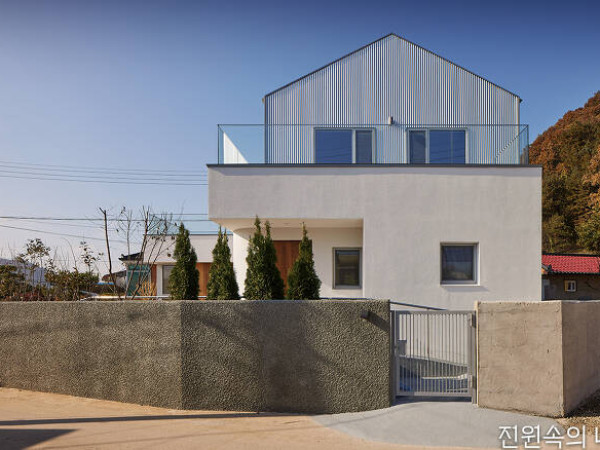 60년간 가족을 키워온 집을 떠나보내고 새로운 집을 지었다. 익숙하고 친근한 재료로, 존경과 감사를 배려 속에 담아 육남매가 힘을 모은 기쁘고 즐겁고 사랑하는 편한 집이다.옛집의 대문 위치를 그대로 살려 어머니와 주변 이웃들의 익숙함을 배려한 부출입구.어둠이 내려앉은 마당. 어머님의 관리 부담을 덜기 위해 정원은 쇄석으로 마감했다.어머니를 위한 육 남매의 마음이 모여 지어진 집육 남매 중 막내인 건축주는 새집은 어떠한 계기보다는 오래 전부터 고민해 온 자연스러운 흐름이 었다고 당시를 떠올렸다. 어머니는 이제 곧 아흔을 바라보는 나이였고, 그 어머니가 육 남매를 훌륭하게 키워낸 집 또한 사람으로 치면 환갑을 넘겼다. 그간에도 간간이 집수리하며 더 편하고 좋은 환경에서 모시겠다는 생각은 여러 차례 했으나 그만큼의 사정으로 조금씩 미뤄지다 육 남매의 마음을 모아 이제 집을 짓기로 다잡은 상황이었다.씨엘건축사사무소 김길영 소장과의 만남에서 그는 나이 든 분에게 맞춘 편리한 동선과 실 배치, 안전 등 ‘어머니를 위한 집’을 최우선으로 주문했다. 여기에 식구가 모일 수 있는 넉넉함, 추억을 떠올리며 즐길 수 있기를 바랐다. 설계부터 건축까지 일 년여가 지나 새 집을 만났고, 입주하고 또 일 년이 지났다. 집은 더 따뜻하고 편해졌고, 마음 편히 모이기 어려울 정도로 좁았던 집은 이제 모두가 모여도 넉넉하다. 그러다 보니 더 자주 찾아뵙고 웃음이 넘친다. 마음을 모아 지은 집에, 더 따뜻한 마음이 쌓여간다.옛집과 지금 문막주택의 모습.HOUSE PLAN대지위치: 강원도 원주시대지면적: 491㎡(148.52평)건물규모: 지상 2층거주인원: 1명건축면적: 118.89㎡(35.96평)연면적: 170.54㎡(51.58평)건폐율: 24.21%용적률: 34.73%주차대수: 1대최고높이: 8.05m구조: 1층 – 철근콘크리트 / 2층 및 지붕 – 경량목구조외부마감재: 모노비트 외단열시스템, 갈바륨 골강판담장재: 종석마감창호재: 이플러스 알미늄시스템 창호에너지원: 도시가스전기·기계: 부윤엔지니어링구조설계: 도야구조기술사사무소시공: 윤형근, 김호장설계·감리: ㈜씨엘건축사사무소INTERIOR SOURCE내부마감재: 벽 – 아우로페인트, LX하우시스 벽지 / 바닥 - LX하우시스 장판, 강마루욕실 및 주방 타일: 대제타일, 카나세라믹수전 등 욕실기기: 아메리칸스탠다드, 콜러조명: 파로라이팅, 라이마스계단재·난간: 오크집성목, 환봉난간현관문: 우드플러스중문: 이노핸즈방문: 행원목재데크재: KD우드 애쉬탄화목 20㎜어머님이 휠체어를 타고도 마당과 동네 이웃과 소통할 수 있도록 새로운 대문(주출입구)를 설치하고 레벨을 조정했다.2층은 목구조를 살려 천장면을 살리고 넓은 거실을 사이에 두고 양쪽 끝에 침실과 욕실, 주방이 놓았다.옛집에 대한 추억과 마을에 대한 배려씨엘건축사사무소 김길영 소장은 기존 집의 공간구조와 어머님의 삶의 패턴에 무게중심을 두고 기존 집의 구성을 세심히 살피는 것에서 문막주택 작업을 시작했다. 옛집은 ‘ㄱ’ 자로 꺾인 형태에 남쪽 전면에 긴 형태의 외양간이 있었는데 조망을 확보하며 철거하는 대신 2층 공간에 이를 오마쥬해 담았다. 마당으로 출입하는 문은 기존 대문의 위치를 살려 만든 것을 포함해 두 개를 두었고, 내부는 휠체어로도 오가기 쉽도록 단차를 줄였다. 집에는 깊은 처마와 널찍한 툇마루를 두어 어머니나 이웃들이 왕래하며 교류하기도, 때론 멀리 들판을 보며 혼자 여유에 잠기기에도 좋다.평상시 어머니는 주택의 1층을 사용하고, 자녀들이 오면 2층을 사용한다. 주택은 철근콘크리트 구조의 1층과 목구조의 2층으로 이뤄졌는데, 2층은 1층과 마찬가지로 별도의 욕실과 주방, 침실 등을 두어 함께 지내기에 불편함이 없도록 했다.한편, 평생을 살아온 마을에 짓는 2층 규모의 새 집인 만큼 자칫 주변에 위압감이나 위화감을 주지 않을지에 대한 고민이 필요했다. 이 고민은 소박하고 익숙하면서 산뜻한 재료들로 건물 외부와 담장 마감재를 선택하는 데에 이어졌고, 그렇게 마을에 녹아드는 집이 될 수 있었다.어머님이 일상을 보내는 1층 거실. 시선의 끝에 창을 두고 대나무를 심어 갑갑함은 덜고 외부 시선은 걸러냈다.새집이 자칫 위압적으로 보이거나 거대해 보이는 상황을 피하고자 1층과 2층은 볼륨을 구분하고 마감재 또한 도장, 골강판, 종석 등 친숙한 재료를 새롭게 적용했다.마당 안에는 긴 처마 아래 널찍한 툇마루를 두었다. 이곳에서 어머니는 이웃을 맞아 여유를 즐긴다.자녀들이 주로 머무르는 2층은 골강판 마감에 널찍한 테라스 공간을 두었다. 마을과 들판을 조망할 수 있도록 거실을 배치하고 깊은 캐노피를 설치했다.건축가 김길영 : ㈜씨엘건축사사무소서울시립대학교 건축도시조경학부를 졸업한 뒤 무회건축연구소, ㈜이공일 건축사사무소에서 실무경력을 쌓은 후 2013년 씨엘건축사사무소를 설립했다. 도시와 건축, 다양한 주거형식 및 건축의 공공성에 관심을 두며 작업하고 있다. 2019년 경기도 건축상을 수상하였으며 대표작으로 월산리주택, 춘천뚝방집, 책방 바라타리아, 포천 도시재생 어울림센터 등이 있다. www.clarchitects.kr기획_ 신기영 | 사진_ 노경ⓒ월간 
