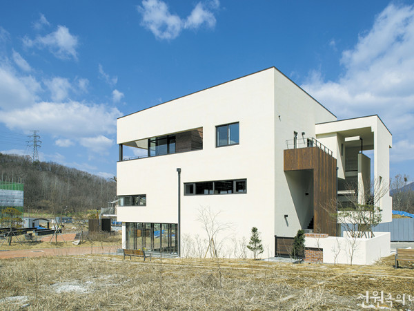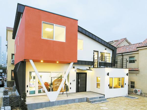 단독주택에 대한 관심이 실로 지대한 시기를 살고 있다. 작은 집 열풍이 몰고 온 주택 건축이라는 화두는 이제 더 이상 나와 먼 이야기가 아니다. 그러나 집을 짓는 과정에서 온갖 어려움을 겪은 이들의 경험담을 듣다 보면 주저하게 되는 것도 사실. 여기 J-HAUS의 건축주는 우선 도전해 보라고 조언한다. 단, 좋은 건축가와 시공자를 만난다는 전제 하에. 취재 임수진 사진 변종석 ▲ 한쪽 경사 지붕으로 인근 주택의 박공지붕과 차별화를 꾀하는 동시에, 지붕부터 시작되어 건물을 감싸는 S자 형태의 라인을 계획한 J-HAUS. 그 사이에 침실부 매스가 끼워지는 형태로 인지성을 강조했다. ▲ 거실과 주방은 레벨 차를 두어 공간의 변화를 주었다. LEFT ELEVATION / FRONT ELEVATION / RIGHT ELEVATION▲ 남북으로 긴 대지에 남서향에 면해 있는 J-HAUS. 마당을 남쪽으로 넓게 내어 추후 활용도와 채광을 고려하였다. 부부침실은 마당 쪽으로 돌출되어, 한옥의 처마처럼 거실의 일사량을 조절할 수 있는 기능을 겸한다. 건축주는 지인과 어느 타운하우스에 대한 이야기를 나누던 중, ‘맘에 드는 집을 찾는 것보다 직접 지어보자.’라는 충동적인 생각에서 집짓기를 시작했다. 결혼 후 쭉 아파트에서 지내온 탓에 느껴지던 지루함은 우리 가족에게 꼭 맞는 구조의 공간에서 살아보고 싶다는 욕구를 불러일으켰고, 여기에 건강을 위한 배려가 더해지면 더할 나위 없을 거란 결론이 나왔다. J-HAUS가 위치한 동탄지구는 건축주 가족이 본래 살던 지역과 멀지 않고 부부의 직장과도 가까운 곳이다. 또 주변에 타운하우스와 단독주택이 모여 있는 주택지이므로 생활하기에도 편안할 것이라는 안도감이 들었다. SECTIONHOUSE PLAN 대지위치 : 경기도 화성시 대지면적 : 252.3㎡(76.33평) 건물규모 : 지상 2층 건축면적 : 96.07㎡(29.06평) 연면적 : 156.42㎡(47.31평) 건폐율 : 38.08%(법정 60%) 용적률 : 62.00%(법정 150%) 주차대수 : 1대 최고높이 : 8m 공법 : 기초 – 철근콘크리트구조 지상 – 경량목구조 구조재 : 벽, 지붕 – 경량목구조 지붕재 : 0.5T 징크패널 거멀접기 단열재 : 그라스울 150㎜ 위 비드법 가등급 단열재 50㎜ 외벽마감재 : 스터코 플렉스 창호재 : 알파인 3중창 설계 : (주)지호도시건축사사무소 070-7643-1111 www.jihoarchi.com시공 : (주)춘건축 070-4197-2529 www.choonarchi.com총공사비 : 2억2천만원◀ 목조주택이므로 지붕에는 환기구를 설치하고, 바닥은 지면으로부터의 20㎝ 이상 이격하여 습기에 의한 피해를 예방하는 데 주력했다. 마당과 레벨 차가 생긴 거실 앞 데크는 자연스레 툇마루의 역할을 하게 된다. ▶ 2층의 아이방과 부속실 매스 역시 돌출된 형태여서 지붕이 있는 주차 공간을 얻을 수 있었다. 건물 자체에 대한 욕심은 크게 없었기 때문에 주택의 외관에 대해서는 건축가에게 모든 권한을 위임했다. 그저 중요하게 생각한 것은 실내에 친환경 자재를 사용할 것, 그리고 넓은 마당 정도였다. 비슷한 또래의 아이를 둔 건축가는 부모의 마음으로 설계를 시작했다. 젊은 건축주들이 단독주택을 선호하는 제일 큰 이유가 바로 자녀들이 이웃의 눈치 안 보고 뛰어놀기 좋다는 점인데, 어린 시절 지냈던 옛집의 기억을 더듬어 더욱 다채로운 공간을 경험할 수 있도록 해주고 싶었다. 조부모의 한옥에서 보았던 대청마루, 낮게 패인 부엌의 아궁이에 불을 지펴 고구마를 구워먹던 유년의 기억을 아이들에게 전하고자 했다. 또한, 건축주가 크지 않은 집을 바랐기 때문에 적정 크기의 공간을 유기적으로 배치해 쾌적함을 제공하고 개방감을 극대화하는 데 주력하였다. 주방 - 거실 - 가족실 - 침실로 이어지는 동선의 흐름을 통해 전체적으로 큰 하나의 공간처럼 느껴질 수 있도록 하였다.▲ 거실은 도로변인 남서쪽으로 배치하여 접근성을 높였고, 남동쪽의 주방 및 식당은 마당과 면하여 쾌적함을 더한다. ▲ 모던하게 꾸민 주방. 거실 대면형 주방을 계획하여 항상 가족과의 소통이 가능하다. 보조주방 겸 다용도실과 보일러실까지 수납 공간도 풍부하다.거실과 주방으로 이루어진 공적인 공간을 지나면 온 가족이 모여 공부할 수 있는 가족실과 드레스룸으로 이루어진 중립적인 공간이 있고, 이를 거치면 가장 위쪽에 각자의 침실이 나타난다. 집의 한가운데에는 계단이 자리하여 각각의 공간을 스킵 플로어 형식으로 연결하는데, 철골구조와 목제 발판으로 제작된 계단은 시선을 통과시켜 보다 풍부한 공간감을 선사한다. 주방과 거실 사이에도 3칸의 계단이 놓여 단차가 존재한다. 6살, 3살배기 어린이가 사는 집에 이처럼 많은 계단이라니 위험하지 않을까 하는 염려가 앞서지만, 실상은 그 반대다. 아이들에게는 계단 자체가 하나의 놀이터가 되어 거실과 주방을 계속 오르내리며 움직임을 만들어낸다. 때때로 가족실로 오르는 계단에 앉아 TV를 보면 거실은 작은 극장이 된다. 주택의 외관은 지구단위계획에 의해 경사지붕이 채택되었으며, 2층 안방과 침실의 매스가 1층 거실 위로 튀어나와 처마 역할을 대신한다. 따로 차양을 설치하지 않아도 계절에 따라 일사량이 조절되고 지붕이 있는 주차공간도 생겼다. INTERIOR SOURCES 내벽 마감 : 규조토 바닥재 : 마모륨 욕실 및 주방 타일: