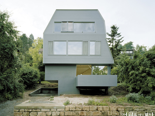 건축의 가치는 건축 자체에만 있는 것이 아니라 건축이 무엇을 창출해내는가에 있다. 기존의 조건에 부합하면서도 더 나은 기능을 발견했을 때 오는 즐거움. Just K는 건축과 환경 사이의 관계를 재정립한, 이상적인 주택의 길을 제시한다. 취재 김연정 사진 Brigida Gonzalez 대지 조건과 패시브 방식의 설계 주택이 세워진 365㎡의 대지는 독일 남서부 튀빙겐 시(Tubingen)에 위치한다(정확히는 그 도시와 튀빙겐 성이 내려다보이는 남쪽 사면에 자리하고 있다). 1960년대의 개발계획은 이 대지 위에 주택의 특정한 위치를 명기하고 있을 뿐 아니라, 연방건축법규(Federal Building Code) 제34조에 따라 ‘주변 환경과의 조화’를 규정하고 있었다. 건축주는 부부와 그들의 네 자녀를 위해 패시브(Passive) 방식의 가정집 설계를 의뢰했다. 효율적인 에너지 사용을 위한 패시브 주택 기술과 자연적인 자재 적용, 그리고 인근 자원들의 현명한 활용은 건물을 지속가능하게 만드는 요소들이었다. 단, 이와 관련해 중요한 전제는 주택이 가족의 생활과 적합하게 맞춰져야 한다는 것이다. 그렇다면 ‘좋은’ 생활공간이란 무엇을 의미하고, 어떠한 방식으로 구현해야 할까? 우리는 이런 이슈들을 지침으로 주택의 배치에 접근했다. 최대의 공간 활용과 기능성, 그리고 최적의 유연성을 달성할 수 있도록 하는 효율적인 설계. 다시 말해 최소한의 재료들로 우수한 공간적 특질을 만들고자 노력하였다. 각 공간의 용도를 상상하며 중첩시켜 봄으로써, 제한된 면적에서 거주자들에게 넉넉한 공간감과 다양한 분위기, 그리고 많은 가능성의 영역들을 제공하고자 했다. HOUSE PLAN 대지위치 : Justinus-Kerner-Strasse,Tubingen, Germany 대지면적 : 365㎡ 건축면적 : 138㎡(81㎡+57㎡) 연면적 : 278㎡ 용적 : 583㎥ 에너지수요 : 14,4㎾h/㎡a 구조계획 : Ingenieurburo von Fragstein 에너지계획 : Dipl.-Ing. Jurg Lammers 설계 : amunt(architekten martenson und nagel theissen) www.amunt.info 사진 : Brigida Gonzalez www.brigidagonzalez.demail@brigidagonzalez.de1 취미실 및 작업실 2 욕실 3 수납실 4 거실 5 놀이방 6 주방 7 아이방 8 마스터침실 9 미니서재 10 다이닝룸 11 발코니건물의 형태와 지붕 방수의 해결 제한된 크기의 대지와 거리 간격, 그리고 6인의 가족에게 필요한 넓은 생활공간을 고려해야 했기에, 건물은 타워처럼 위로 솟은 형태가 되었다. 콤팩트한 외피와 한정된 지붕 볼륨은 1920년대에 지어진 주변의 회색 응회암 건물들과 현대적인 방식으로 관계를 맺는다. 모임지붕의 율동과 여러 번 뒤틀리는 형상은 거리 띄우기를 최소화하면서 최대한의 공간볼륨을 만들어내고픈 욕망에서 비롯했다. 이는 경사면에 대한 건축법규와 튀빙겐 성이 보이는 시야를 해치지 말라는 인근 주민들의 요구에서 비롯한 것이기도 하다(이는 그들이 그런 조건 하에 이 대지를 팔았기 때문이다). 이 주택의 최상층과 지붕층은 ‘방수모자’ 역할을 하는 지붕시트가 덮혀 있다. 경계부위에서 만나며 도드라지는 외부 ‘접합부들’처럼 이 지붕시트들도 함께 접합되어 방수표면으로부터 튀어나와 있다. 이러한 용마루 밀봉식의 해석은 막구조로 덮이는 따뜻한 지붕(Warm Roof)의 외피에 악센트를 부여한다. 처마를 따라 이어지는 배수로는 지붕 외장재 위로 떨어지는 빗물을 마치 모자의 챙처럼 지붕 밖으로 흘려보낸다. 목구조 프리패브 공법의 선택과 적용 패시브 주택에 필요한 구조적이고 물리적인 요건들, 짧은 시공기간, 그리고 지속가능성에 대한 고려, 이 모두가 목재를 사용한 프리패브 공법을 택하게 한 동인이 되었다. 건물 전체는 136개의 부재들로 이루어지며, 이 부재들은 목공사를 위한 새김 눈뿐만 아니라 전기설비를 위한 드릴 구멍과 홈까지 표시되어 사전 제작했다. 목재는 그 구조와 내부 표면 전반에 걸쳐 일관되게 사용되는 주재료이며 재생 가능한 원료로서, 특히 투입 에너지와 유출 에너지의 균형이 양호하다는 이유로 선택되었다. 비용을 절약하기 위해, 통상적인 방들의 목조 표면들은 정교한 쉘(Shell) 구조로 설계했다. 이렇게 얽히며 층화되는 목조 부재들의 표면은 샌드페이퍼로 닦아내고 세정하는 공업화된 처리를 거쳐, 목재의 밝은 특성을 드러낸다. 기후에 따른 가변적인 생활 영역 지속가능한 이 주택은 가족의 상황 변화로 대응하는 융통성을 갖는다. 필요할 경우 손쉽게 별개의 입구를 가진 두 채의 생활유닛으로 분리할 수 있다. 주택의 총 면적은 138㎡인데 한 유닛이 81㎡, 다른 유닛은 57㎡로 나뉜다. 연중 따뜻한 기간에는 12㎡의 발코니와 23㎡을 앞마당까지 생활 공간을 확장할 수 있다. 비틀대는 모양의 주 생활공간은 다양한 방 높이를 만들어내면서 1층 영역을 구분하는데, 이로 인해 겨울에는 다양한 기후영역들이 만들어진다. 보다 낮은 입구영역은 차가운 외기가 갇힌 채로 남아있지만 주방과 거실의 온도는 대체로 적당한 편이며, 보다 높은 곳에 자리하는 방이 가장 따뜻하다. <글·amunt> 건축그룹 amunt 독일에 기반을 두고 활동하고 있는 건축사무소 amunt(architekten martenson und nagel theissen)는 Bjorn Martenson, Sonja Nagel, Jan Theissen 세 명의 건축가가 주축이 되어 운영되고 있다. 2010년 개소한 이래 주거·상업·공공시