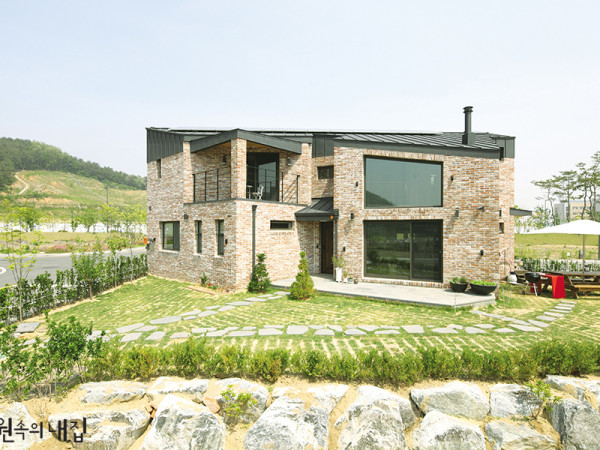 두 팔로 감싸 안아도 모자란 굵기의 나무, 오로지 짚과 흙으로 치대 만든 벽돌, 여기에 철물로 제작된 장식을 더해 완성된 집. 진천-음성 혁신도시를 내려다 보는 전망 좋은 터에 자리한 흙벽돌집은 고풍스런 너와까지 올려 현대판 흙집의 정점을 보여준다.취재 이세정 사진 변종석충북 음성의 함박산 인근은 요즘 ‘진천-음성 혁신도시’ 개발로 가히 천지개벽 중이다. 과수원과 밭이 전부였던 이곳에 도로와 공원이 열을 맞춰 들어서고, 최신식 빌딩이 경쟁하듯 솟고 있다. 세종시 다음으로 큰 계획도시로 변모 중인 이곳을 개발 초기부터 지그시 관망 중인 집 한 채가 있다. 바로 2년 전, 신도시와 함박산 경계 터에 지어진 손영도 씨의 흙집이다. ▲ 뒤로는 나지막한 함박산 능선이 보이는 주택의 전경◀ 후면에는 다용도실로 통하는 문이 있어 텃밭이 더욱 가깝다. ▲ 너른 데크에 앉으면 새로 조성되는 도시 경관이 펼쳐진다. ▶ 기초가 워낙 높아 1층 창으로 보는 전경이 넓다.HOUSE PLAN 대지위치 : 충북 음성군대지면적 : 909㎡(275.45평)건물규모 : 지상 2층건축면적 : 133㎡(40.3평)연면적 : 182㎡(55.15평)건폐율 : 14.63%용적률 : 20.02%주차대수 : 1대최고높이 : 7.5m공법 : 기초 - 줄기초, 지상 - 황토벽돌쌓기, 목구조구조재 : 고벽돌 + 황토벽돌지붕재 : 서까래, 너와단열재 : 반죽한 진흙 30㎝외벽마감재 : 황토벽돌 메지 마감(돌가루)창호재 : 시스템창호설계 및 시공 : 인토문화연구소 031-886-7806 www.intocom.kr건축비 : 평당 약 600만원그는 오랜 서울 생활을 뒤로 하고 연고도 없는 음성으로 귀촌했다. 은퇴 후 도심에서 할 일 없이 지내기보단 땅을 밟고 텃밭을 일구며 살고 싶은 마음이 컸다. 마침 딸 내외의 적극적인 지원이 있어, 마음에 맞는 땅을 구하고 집도 짓게 되었다.땅은 함박산을 뒤로 하고 맹동저수지에서 흘러내리는 작은 개울을 앞에 둔, 배산임수의 좋은 터였다. 여기에 노년의 안위를 생각해 흙집을 짓기로 마음먹었다. 이왕이면 시멘트가 섞인 성형 벽돌보다 전통 그대로의 방식으로 만든 흙벽돌을 찾고자 했고, 결국 인토문화연구소와 연이 닿았다. 인토문화연구소에서는 유압식으로 만든 인공 흙벽돌이 아닌 짚과 황토, 발효 추출액 등을 섞은 진짜 흙벽돌을 만든다. 자연 건조를 통해 젖었다 말랐다를 반복하며 벽돌 본연의 강도를 높이는, 생산부터 건조에 이르기까지 조상들의 제조 방식 그대로 답습하고 있다. 재료가 마음에 든 건축주는 설계부터 시공까지 건축 전 과정을 인토문화연구소에 일임하게 되었다. ▲ 흙벽돌 사이 흰색 돌가루 줄눈을 넣어 외관이 환하고 경쾌하다.INTERIOR SOURCES내벽 마감 : 황토 몰탈바닥재 : 황토대리석욕실 및 주방 타일 : 주문제작수전 등 욕실기기 : 대림주방 가구 : 붙박이장조명 : 단조 주물등계단재 : 목재현관문 : 단조 제작(철사랑)방문 : 일반 주문창호붙박이장 : 주문제작데크재 : 더글러스퍼+오일스테인▲ 천장이 높아 개방감 있는 거실. 벽돌로 조적해 만든 벽난로 자리가 멋스럽다.◀ 파스텔 색 타일로 현대식으로 마련한 주방. 원목 싱크대와 천장 루버가 조화를 이룬다. ▶ 안방은 붙박이장과 침대만 두어 과한 장식을 배제했다.▲ 단조로 제작한 아치형 현관흙집은 기단이 높을수록 좋다. 바닥에서 올라오는 습기를 차단하기 위해 기초를 한껏 올리고, 외부 하단은 고벽돌로 쌓아 빗물이 튀어도 안전하게 조치했다. 나머지는 모두 천연 자재를 이용한 공정이다. 벽체는 황토벽돌 30㎝ 두께로 조적하고 줄눈은 백색 돌가루 모르타르로 채웠다. 지붕은 흙을 반죽해 30㎝ 두께로 올리고 단열재, OSB합판, 방수시트 작업을 한 뒤 너와로 마감했다. 너와 판은 최대한 많은 겹을 쌓아 방수에 대비함은 물론, 멀리서 볼 때 한옥의 지붕선 마냥 멋진 곡선으로 보이도록 매만졌다. 실내 역시 더글러스퍼의 웅장한 기둥과 보, 원목 서까래, 황토 벽면이 어우러져 흙집 본연의 아름다움을 뽐낸다. 2층까지 층고를 올린 거실에는 상량문이 적힌 거대한 대들보가 집의 중심을 잡고 있다. 특히 1층 벽면은 흙색 그대로 미장한 반면, 2층은 흰색 돌가루로 미장해 실내가 더욱 환하고 개방감 있다. 방 역시 면적을 시원시원하게 할애하고 붙박이장과 큰 창 말고는 별다른 장식을 배제했다. ◀ 2층은 흰색 돌가루 몰탈로 미장해 밝고 안정감 있다. ▶ 집에 아기자기한 볼거리를 더하는 장식들 ▲ 거실을 내려다 볼 수 있는 난간을 통해 집의 웅장함을 바로 느낄 수 있다.흙집은 조명, 문, 소품 등 인테리어 요소를 결정하기가 까다롭다. 기성품들은 색이나 재질 등이 흙과 완벽하게 어우러지기 힘들기 때문이다. 건축주는 이런 고민을 철을 이용한 단조 제작으로 과감히 해결했다. 현관문은 아치형 단조에 유리를 끼워 집의 첫인상을 답답하지 않게 하고, 각 실의 조명도 철제 갓과 펜던트를 이용해 통일감을 줬다. 직접 금속공예가를 수소문해 주문한 결과물들로, 건축주가 가장 흡족해 하는 부분이기도 하다.흔히들 흙집이 하자가 많다고 하지만 입주 2년 차, 건축주는 집에 대한 걱정거리는 전혀 없이, 오로지 정원과 텃밭 가꾸는 데만 온 신경을 쏟고 있다. 지난겨울 난방도 기름이나 가스는 일절 쓰지 않고, 