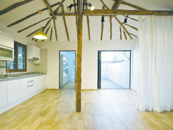 세 아이에게 주는 따뜻한 선물 전남 화순에 지어진 화장실조차 없는 오래되고 낡은 주택. 차가운 기운이 그대로 느껴지는 작은 방 하나에서 추운 겨울을 지낼 네 식구를 위해 다시 힘을 모았다. 따뜻한 마음을 담은 저비용 주택 세 번째 프로젝트. 취재 김연정 사진 황효철 ▲ 매력적인 형태의 지붕 서까래는 그대로 노출시키고, 그 사이에 단열을 채워 마감하였다. HOUSE PLAN 대지위치: 전라남도 화순군 대지면적: 179㎡(54.15평) 건물규모: 지상 1층 건축면적: 75㎡(22.69평) 연면적: 75㎡(22.69평) 건폐율: 41.8% 용적률: 41.8% 주차대수: 1 대 구조재: 가구식구조 + 샌드위치패널구조 지붕재: 폴리카보네이트 10T + 단열뽁뽁이 + 폴리카보네이트 10T 외벽마감재: 드라이비트 창호재: PVC 창호 시공: 강원도사람들 설계: JYA-RCHITECTS 070-8658-9912 www.jyarchitects.com총 비용: 40,000,000원(철거 포함) ▲ BEFORE▲ 새로 증축되는 부분과 기존의 담장으로 둘러싸인, 내부에서만 연결되는 외부 테라스가 만들어졌다. 이 집은 초록우산 어린이재단과 함께 생활이 열악한 저소득층을 위해 주거환경을 개선해주는 ‘Low Cost House series’의 세 번째 프로젝트다. 전남 화순군에 위치한 이곳에는 필리핀에서 귀화한 어머니가 세 아이와 함께 살고 있었다. 1986년에 지어진 탓에 낡고 곳곳이 부서져 있었으며 벽에 단열재도 전혀 시공되지 않은 상태였다. 하지만 이보다 시급한 문제는 바로 화장실조차 없다는 것. 가족은 마당 한켠에 구덩이를 파고 그곳을 화장실로 사용하고 있었다. 상황이 이렇다 보니 화장실과 연동되는 욕실 또한 제대로 있을 리가 만무했다. 한마디로 씻고 배출하는, 인간이 가진 욕구 중 가장 기본이면서도 중요한 생리적 현상도 해결할 수 없는 집이었다. 그나마 다행스러운 건, 구조나 지붕의 상태가 좋은 편이라 신축할 필요는 없어보였다. 따라서 집의 지붕과 외벽, 구조는 가급적 유지한 채, 평면을 효율적으로 변경하고 단열을 보강하며 무엇보다 화장실과 욕실을 추가로 만들기로 결정하였다. 평면의 수정은 집의 중간에 주방과 거실을 통합한 가족실을 만드는 것에서부터 시작하였다. 이것이 이 작은 집의 동선을 가장 효율적으로 만들 수 있는 최선책이라고 생각했다. 그리고 가족실을 중심으로 한쪽으로는 방을 두 개를 만들고 다른 한쪽으로는 화장실과 욕실, 외부 테라스 공간을 두기로 했다. ▲ 지붕이나 외벽과 구조는 가급적 유지한 채, 효율적인 평면 변경과 단열을 보강하는 것에 중점을 두었다.DIAGRAM 01 기존의 평면구성 02 내부벽체를 걷어내고 나무기둥과 보를 세운다. 03 내부의 바닥 높이를 맞추고, 현관을 만들어 두 개의 방을 확보한다. 04 중앙의 가족실에서 옆마당으로 연결되는 구멍을 두 개 만든다. 05 옆마당의 높이를 550㎜ 올려 내부에서 연결될 수 있게 한다. 06 확장된 공간에 화장실과 욕실을 만들고, 그 옆에 내부와 연결되는 테라스를 두었다. 07 마지막으로 외벽에 드라이비트로 외단열을 한다. 08 변경된 평면구성 ▲ 가족실과 이어진 테라스는 아이들이 내·외부를 자유로이 오가며 뛰놀 수 있는 공간이 되어 줄 것이다. 어두컴컴했던 예전 집과 달리, 화이트 컬러로 마감한 공간은 밝고 환한 느낌을 준다. INTERIOR SOURCES 내벽마감: 벽지(합지) 바닥재: PVC장판 욕실 및 주방타일: 자기질타일 100×200,도기질타일 200×200 수전 등 욕실기기: Royal 도기 주방가구: 하이그로시 UV코팅 + 인조대리석상판 조명: LIMAS / SAMIL 현관문: 방화도어 방문: ABS 도어 데크재: 루나우드 앞서 언급했듯, 이 집은 화장실과 욕실에 특히 힘을 주고자 고민했다. 화장실에 대해 좋지 않은 기억을 가지고 있던 아이들은 화장실과 욕실에 대한 일종의 두려움과 거부감이 있어 씻는 것도 싫어했다. 집이 아이들에게 주는 영향이 단순히 현재의 불편함에만 그치지 않는다는 의미다. 이러한 이유로, 화장실과 욕실이 어떻게 하면 아이들에게 긍정적인 장소가 될 수 있을지에 대해 생각했다. 먼저 화장실을 밝게 만들고 싶었다. 그동안의 화장실과 욕실이 어둡고 더러운 공간으로 인식되어 왔기 때문이다. 증축한 공간의 지붕은 첫 번째 프로젝트였던 벌교주택에서의 뽁뽁이 지붕을 응용해 푸른색 톤의 폴리카보네이트 지붕을 만들었고, 벽에는 전체적으로 흰색과 푸른색의 타일을 섞어 밝은 느낌을 주었다. 다음으로는 화장실과 욕실이 완전히 분리되는 닫힌 공간이 아니라 집 내부의 한 부분으로 인식시켜주고자 하였다. 이를 위해 욕실, 세탁실, 세면대, 변기를 모두 각각 분리시켰고, 이 기능들을 가족실 및 가족실과 이어진 외부 테라스 공간과 연결해 동선을 구성하였다. 여기서 외부 테라스는 이 집의 내부공간을 다양하게 만들어주는 중요한 요소로 작용한다. 기존의 담장을 살려 새로 증축되는 부분과 기존의 담장으로 둘러싸인, 완전하게 내부공간에서만 연결되는 외부 테라스가 만들어졌다. 이 테라스는 아이들이 욕실에서 목욕을 하고 나와 몸을 말리며 쉴 수 있는 공간이자 가족실과 길게 연결되어 거실을 연장하고 아이들이 내·외부를 자유로이 오가며 뛰놀 수 있는, 그런 장소가 되기를 바라는 마음을 담았다. 20일 간의 건축일지 Step 01 실내 벽체와 천장