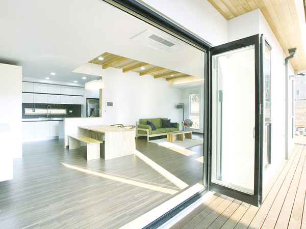 스킵플로어와 높은 천장고, 철물을 이용한 목재의 강력한 결합이 정교한 시공과 버무려져 단단한 집 한 채가 완성 되었다. 전주의 새로 만들어진 택지지구에 세워진 중목구조 주택을 찾았다. 취재 편집부 사진 변종석 ▲ YKKap 폴딩도어는 편리한 손잡이와 부드러운 움직임으로 사용자의 부담을 덜어준다. “언젠가 지을 집이라면, 아이들이 어릴 때 한 해라도 빨리 짓자”. 전국 주택단지를 돌아보며 마음에 드는 집을 부지런히 찾아온 건축주 부부는 판교에서 마음에 드는 주택 한 채를 발견했다. 일본식 중목구조로 지어진 견고한 인상에 개방감 있는 실내를 가진 집으로, 새 집의 롤모델이 되었다. 건축에 대한 지식이 없는 사람이라면, 내가 원하는 삶을 가장 잘 담을 그릇을 만들어줄 수 있는 전문가를 찾는 것이 가장 지혜로운 방법이다. 부부는 그 집의 설계·시공자를 수소문했다. 사전조사 기간이 길었기에 더욱 단박에 결심할 수 있었다는 건축주는 이들과 계약 후 건축을 진행하면서 그 믿음이 더 커져갔다. “목조주택을 제대로 짓는지 알려면, 골조가 올라가는 사나흘만 지켜보면 돼요. 땅을 다지고 뼈대가 오르는 것을 지켜보면서 저희 부부의 결정을 더욱 확신할 수 있었어요.” 블루하우스코리아에서 사용하는 중목구조(Post-Beam)는 Pre-Cut 방식으로 미리 재단해온 거대한 기둥과 보를 현장에서 조립해 짓는 일본식 구축방식으로 지어진다. 이때, 연결철물이 끼워질 부분끼리 정확히 맞아떨어져야 하므로 오차범위 3㎜만 벗어나도 시공이 불가능하다. 그렇기에 기초 콘크리트 타설부터 정확한 시공이 요구되는 것. 비전문가인 건축주 눈에도 현장에서의 효율성과 딱딱 맞아떨어지는 시공과정을 단박에 알아볼 수 있었다. 백 마디 장황한 말보다 현장에서 확인할 수 있는 ‘정확한 시공’에서 얻은 건축주의 귀한 신뢰다. ▲ 남쪽으로 낸 창은 에너지를 받아들여 효율 높은 주택을 완성한다. ◀ 서쪽 진입도로에는 주차장과 메인 현관부가 위치한다. ▶ 실내 1, 2층에 미리 배선해 집 어디에서든 현관문 개폐가 가능하다. HOUSE PLAN 대지위치 : 전라북도 전주시 대지면적: 453.00㎡(137.03평) 건물규모: 지상 2층, 다락 연면적: 277.07㎡(83.81평) 건폐율 : 34.82% 용적률 : 54.03% 주차대수 : 2대 최고높이 : 9.1m 공법 : 지상 – 중량목구조(철물공법) 구조재 : WOODONE, LVL구조목 지붕재 : 갈바륨 단열패널 단열재 : 내단열 - 가디언 R19, R30/외단열 - 네오폴 70㎜ 외벽마감재 : 로투산페인트(독일 STO), 17㎜ 적삼목 채널 사이딩 창호재 : YKKap 알루미늄 + PVC 복합창호(22㎜ 로이복층유리) 설계 및 시공 : 블루하우스코리아(주) 031-8017-5002 www.koreabluehouse.com 설계, 시공과정은 단순히 건물을 짓는다기보다는 건축주 가족에게 딱 맞는, 배려가 숨어 있는 둥지를 빚어가는 과정이었다. 설계를 맡은 블루하우스코리아 정기홍 본부장은 형태를 자랑하는 건물보다는 내·외부 장식을 최소화하고, 건물이 품은 기능들이 자연스럽게 건물 모양이 되도록 설계하기 위해 노력했다. 도로에서 1m 가량 올라서서 조성된 대지 서쪽에 주차장과 주 출입구를 두고 남향으로 집을 지었다. 주차장을 건물 안으로 들이면서 1층과 어긋난 층고 때문에 생긴 평면 일부의 레벨 차이를 1.5층 가족실로 풀어내 쓸모없이 낭비되는 공간을 최소화했다. 1층은 거실과 주방을 하나로 연결하되, 특히 식당이 마당과 바로 면할 수 있도록 짠 배치는 설계자의 배려다. 아이들이 안팎으로 뛰어놀며 자연을 좀 더 가까이 즐기기를 원한 마음이었다. 식구들이 자주 모이는 거실은 장스팬(Long-Span) 구현이 가능한 중목구조의 장점으로, 널찍한 공간감을 한껏 드러낸다. 천장 중간마다 보이는 우물천장의 목재 갈빗살은 화이트톤 주택에 장식적인 효과를 더하는 요소다. ▲ 시선을 적절히 차폐한 주택 진입부 ▲ 넓은 스팬으로 큰 공간을 구현할 수 있는 중목구조의 장점이 거실에서 명확히 드러난다. 목조주택은 철근콘크리트주택에 비해 패시브하우스 수준으로 짓기 어렵지만, 꼼꼼히만 시공한다면 벽체 자체가 단열재가 되기 때문에 ‘따뜻한 집’을 만드는 데 유리한 면이 있다. 이 집은 내단열재로 그라스울을 충진하고 EPS보다 열전도율이 뛰어난 네오폴을 외단열로 더했다. 제대로 양생된 네오폴 보드를 사용하고 플라스틱 화스너와 메지 몰탈, 접착제 등을 꼼꼼하게 사용해 마감한 하얀 외관은, 햇볕을 정면으로 받아도 한 치의 이격이나 요철을 찾아낼 수 없을 정도로 완성도가 높다. ◀ 간결하고 실용적인 북유럽풍 가구로 단장한 거실 ▶ 건축주의 성향을 고려해 넉넉하게 마련된 드레스룸 ◀ 주차장 상부에 마련된 1.5층 높이 가족실 ▶ 수전과 변기를 욕실 밖으로 건식시공하고 욕조와 샤워공간만 습식으로 만든 공용 욕실부INTERIOR SOURCES 내벽마감 : 크벽지, 적삼목 무절루버 바닥재 : 풍산, 강마루 욕실 및 주방타일 : 자기 & 도기타일 수전 등 욕실기기 : 대림바스 주방 가구 및 붙박이장 : 애쉬오크 제작가구, 우레탄도장가구 조명 : 매입형 LED, 팬던트 조명 계단재 : 애쉬오크 현관문 : YKKap, 베나토 현관문 방문 : WOODONE, simple selection도어 데크재 : 방킬라이 주차장 : 30㎜ 화강석 버너마감 ▲ 
