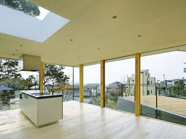 가파른 경사의 대지는 이곳에 집을 짓기 위해 꼭 해결해야 할 과제였다. 자연에 대한 건축가의 고민과 이해가 엿보이는 집을 찾았다. 취재 김연정 | 사진 Yutaka Kinumaki ▲ 가파르게 경사진 대지 위에 지어진 주택 모습 ▲ 주변 경치가 내려다보이는 2층 주방 전경 ▲ 주택은 암석으로 이뤄진 대지의 조건을 고려하여 설계되었다. 이곳은 여전히 웅장한 자연의 모습을 간직한 주거지역이다. 주택은 자연림으로 둘러싸인 경사진 땅에 위치한다. 아름답게 뻗은 가지의 모양이 인상적인 두 그루의 큰 나무(하나는 녹나무이고 다른 하나는 벚나무)가 대지의 꼭대기에 서 있고, 이 나무들은 주택의 외관과 어우러진다. 전체적으로 대지는 앞뒤 고저차가 약 11m에 이를 만큼 가파르게 경사져 있다. 지반은 암석으로 이뤄져 매우 단단한 상태였다. 이러한 대지조건을 고려하여 굴착을 최소화할 수 있도록 경사진 지면을 따라 건물을 배치하기로 결정했다. HOUSE PLAN 대지위치 Hyogo, Japan 건물용도 House 대지면적 360.35㎡(109평) 건물면적 104.53㎡(31.62평) 연면적 136.65㎡(41.34평) / 1F - 84.05㎡(25.43평), 2F – 52.60㎡(15.91평) 구조 Timber Flame 구조설계 S3 Associates Inc. 시공 Amerikaya Co.,Ltd. 외부마감 Lap Siding, Oil Paint 내부마감 바닥 - Ash Flooring T18, White Oil Paint 벽 - Plasterboard T12.5, Emulsion Paint with Sand 천장 - Basswood Plywood T4 설계 Shogo Aratani Architect & Associates www.ararchitect.com SECTION ▲ 넓은 창을 통해 늘 따스한 빛이 내부로 들어온다. ▲ 거실 위 천창을 통해 나무들이 올려다 보인다. PLAN – 1F PLAN – 2F ▲ 1층 상부에는 넓은 테라스를 두어 외부 활동을 돕는다. ▲ 계단과 연결된 공간은 소규모 서재 역할을 겸한다. ◀ 벽면을 활용해 책을 둘 수 있는 공간을 마련했다. ▶ 작은 창이 액자 속 풍경처럼 외부를 실내로 들인다. ▲ 대지의 경사와 같은 계단이 2층과 연결된다. 최적의 전망을 제공하기 위해 주공간은 위층에 놓고, 다른 실내공간은 경사를 따라 도로 레벨까지 연결된다. 등고선을 따라 세 개의 볼륨을 배치하여 풍경과 관련된 공간적인 순서를 디자인하였다. 상단 볼륨은 두 개의 큰 나무 바로 아래 위치하게 된다. 거실 상부에 설치된 채광창을 통해 나무들이 올려다 보인다. 북측 볼륨에는 욕실이 자리하고, 하단 볼륨에는 1층 개인 공간과 거실에서 이어지는 나무 데크 테라스가 포함된다. 직선형의 세 볼륨이 만나는 교차점에는 대지의 경사와 같은 계단이 놓인다. 이 공간은 이 집의 계단실일 뿐만 아니라, 많은 책을 수용할 수 있는 소규모 서재 역할도 하게 된다. 풍경을 따라 각각 다른 세 개의 볼륨을 설계함으로써, 거주자는 옥외공간과 다양한 방식으로 직면하는 독특한 공간의 연속성(Spatial Sequence)을 즐길 수 있다. 건축가 SHOGO ARATANI 일본 오사카(Osaka) 출신으로, Tokushima University에서 학업을 마쳤다. Moo Architect에서 실무를 익힌 그는 2000년, Shogo Aratani Architect & Associates를 개소하였다. 현재 Kyoto Seika University에서 강의 중이다. ※ 월간 <전원속의 내집> www.uujj.co.kr 본 콘텐츠의 저작권은 (주)주택문화사에 있으며, 이를 무단 이용하는 경우 저작권법 등에 따라 법적책임을 질 수 있습니다.