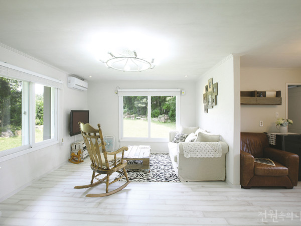 제주에는 게스트하우스만큼이나 독채 렌탈하우스도 늘어나고 있다. 동남아 휴양지나 리조트에서처럼 프라이빗한 시간을 보내고자 하는 여행객들이 많아졌기 때문이다. 과수원 깊숙이 자리해 주변의 시선이 완벽하게 차단되는‘제주명월’은 낡은 창고를 리모델링한 이색 렌탈하우스다. 취재 정사은 조고은 사진 변종석▲ 오래 사용한 듯 손때 묻어 편안한 가구로 꾸며진 제주명월의 거실 풍경 제주로 귀촌하는 이들이 많아지면서 낡은 농가도 품귀현상을 겪고 있다. 하지만 섬 구석구석 자세히 살펴보면 아직 알짜배기 땅들이 숨어 있다. 2년 전 제주행을 결심한 부부디자이너 이명헌, 현수진 씨는 자신들의 생각과 딱 맞아 떨어지는 이 공간을 발견하고 그 자리에서 계약했다. 오래된 벽돌 창고 건물과 고요한 주변 풍경은 ‘프라이빗 렌탈하우스’ 콘셉트에 제격이였다. 일선에서 왕성하게 활동하고 있는 젊은 디자이너 부부에게 무(無)에서 유(有)를 만들어내는 작업은 늘상 해오던 일이었다. 디자인은 예술과 달라 소비를 유도하는 데 목적이 있기에 구매자의 심리에도 밝은 그들이었다. 여행객의 니즈를 파악하고 그들에게 어필할 만한 공간을 만드는 ‘인테리어’역시 그리 어려운 일은 아니었다. 겨울에도 영하로 떨어지는 날씨가 거의 없는 제주도에서, 그것도 남쪽 서귀포시 근방이기에 이곳은 사시사철 푸르다. 이는 곧 내륙지방에서만큼 단열에 신경 쓰지 않아도 된다는 얘기다. 창고는 이전 건축주가 주거용으로 한 번 손을 본 터라 구조변경이나 단열은 크게 걱정하지 않았다. 부부는 이곳을 찾는 숙박객에게 마치 카페에 온 듯한 느낌을 선사하고자 주택에서는 쉽게 구현하기 어려운 ‘화이트 빈티지’를 콘셉트로 잡았다. 필요한 가구는 빈티지숍에서 발품을 팔아 구입해 한꺼번에 컨테이너로 실어 날랐고, 주택의 낡은 분위기도 최대한 살려 오히려 구옥의 멋으로 연출했다. ▲ 2차선 지방도에 면해 있는 제주명월은 넉넉한 주차공간과 넓은 마당, 그리고 마당 안쪽의 외부 키친으로 구성되어 있다. ▲ 오랜 세월 빛바랜 효과를 더하기 위해 화이트 빈티지 콘셉트로 외벽을 페인트칠했다. 꼼꼼히 메우기보다는 드물드문 붉은색 벽돌이 비치게끔 칠한 것도 디자이너의 의도다. ▲ 현관으로 들어오면 거실과 홈바, 그리고 두 개의 방이 펼쳐진다. 빈티지 전신 거울 또한 고재조각을 이어붙여 테두리를 장식한 독특한 제품이다. INTERIOR SOURCES 내벽마감 : 핸드코트 작업 & 벤자민무어 친환경페인트 바닥재 : 구정마루 강마루 수전 등 욕실기기 : 계림 주방가구 : 한샘 조명 : 빈티지 ▲ 기성품과 수제품을 적절히 섞어 배치한 것이 인테리어의 키포인트다. 조명과 소파, 고재로 만든 빈티지 좌탁이 잘 어우러져 아늑한 거실풍경을 연출한다. 컨테이너 내부 또한 빈티지 콘셉트로 꾸몄는데, 자세히 살펴보면 SMEG 냉장고와 한샘 맞춤형 싱크대 등 디자인과 기능을 모두 만족시킬 수 있는 제품들로 구성되어 있다. ▲ 풀이 무성하던 건물 뒷편 나대지에 컨테이너와 데크를 설치하고 아기자기한 인테리어 소품을 더해 주방과 식당을 만들었다. 서너평 남짓한 컨테이너 하우스는 현장에서 조립한 거주용 제품이다. ▲ 화이트톤의 강마루로 바닥을 마감하고 벽면은 조명에 따라 언뜻 음영이 비치는 핸디코트로 마감했다. 원래 집의 모든 창과 문은 갈색 PVC재질이었다고. 깨끗이 닦은 후 하얀색 페인트로 칠하는 고된 작업을 거치고 나니 집의 콘셉트와 잘 어울리는 하얀색 창이 완성됐다. PLAN◀ 자그마한 공간에서도 아기자기한 소품과 깔끔한 컬러로 이색적인 감성을 전달한다. 현관의 하얀 커튼은 심리적으로 깨끗하다는 느낌을 준다. ▶ 빈티지 인테리어에서 자주 쓰이는 영국 성조기를 욕실 포인트 아이템으로 설치했다. ▲ 제주명월의 소품은 모두 부부가 발품 팔아 고른 것들이다.본동은 4명이 묵을 수 있는 안락한 거주공간으로 만들고, 키친과 다이닝룸은 본동과 분리해 집에서 풍기는 생활의 번잡함을 덜어냈다. 건물 뒤편으로 주거용 컨테이너를 설치해 꾸미는 작업에만 5개월이 걸렸다. 페인트칠과 벽면 핸드코트 작업도 마다하지 않고 부부가 직접 품을 들여 제주명월이 완성됐다. 집의 안쪽에는 고재(高材)로 장식된 전신 거울을 중심으로 크게 왼쪽의 거실 및 홈바와 오른쪽 두 개의 방으로 나뉜다. 최대 수용인원을 4명으로 잡은 이유는 그 이상의 숙박객이 묵었을 때의 쾌적성을 보장할 수 없기 때문이다. 조용한 휴식을 위한 공간인 만큼 사람들이 이곳에 머무는 동안 보여주는 태도도 매우 점잖다는 것이 부부의 설명이다. 젊은 디자이너의 감각이 버무려진 이곳에서 보내는 휴가는 지친 도시사람들에게는 꿈같은 시간일 것이다. ◎제주 서귀포시 색달동 http://jeju-myongwol.com, 010-5229-9355 ※ 월간 <전원속의 내집> www.uujj.co.kr 본 콘텐츠의 저작권은 (주)주택문화사에 있으며, 이를 무단 이용하는 경우 저작권법 등에 따라 법적책임을 질 수 있습니다.