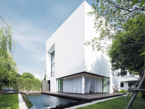 언제나 기분 좋은 햇살이 들어오는 3층 주택. 심플한 화이트 외벽과 차분한 목재의 조합으로 꾸미지 않은 듯한 멋스러움이 느껴지는 이곳은, 늘 자연을 품고자 하는 건축주의 감성을 그대로 담은 내추럴 하우스다. 취재 김연정 사진 Wison Tungthunya & IF 이곳은 오래 전부터 살아온 기존의 집 바로 옆에 지어진, 다섯 식구를 위한 주택이다. 자연을 사랑하고 열린 공간을 원하는 건축주의 의견에 따라 대지의 규모를 고려해 초기 아이디어가 결정되었다. 주택은 대지의 남서쪽에 위치하고 있다. 개방형 공간을 가능한 1층에 둔다는 개념으로 1층에는 L자형 옥외공간을 확보하였다. 욕실이 딸린 안방과 아이들을 위한 2개의 침실 및 욕실, 거실과 식당 공간, 작업실, 개방형 주방, 태국식 주방과 랩풀(Lap Pool) 등이 3개의 층에 걸쳐 배치되었다. 모든 욕실은 낮 시간동안 햇빛이 잘 드는 위생적인 공간으로 제공하고자 각 층의 서측에 놓았는데, 이는 욕실 외의 공간을 자외선으로부터 보호하기 위함이기도 하다. 욕실을 서측에 둠으로써, 침실은 자연채광이 적절히 드는 북측이나 동측에 자리하게 된다. HOUSE PLAN 대지위치 : Bangkok, Thailand 면적 : 400㎡(Indoor) + 150㎡(Outdoor) 인테리어디자인 : Porntida Kruapat & IF 조경설계 : Kirin Tanglertpanya & IF 구조설계 : Piyapong Suwanmaneechot 시스템엔지니어 : Mongkol Pichayakittisin 시공 : SPC Technocons Co.,Ltd. 건축주 : K. Boonyarit Kitcharoenroj 설계 : IF(Integrated Field Co.,Ltd.) www.integratedfield.com이 집에서 발견할 수 있는 특징은 ‘계단실’과 각 층의 ‘코너(Corner)’ 두 가지다. 계단실의 경우 삼각형 계단과 상부에 설치된 삼각형의 천창, 그리고 각 실의 보이드(Void) 공간으로 이뤄져 있다. 계단실은 이 보이드 공간을 통해 1층의 거실까지 자연광을 바로 유입시키고, 각 실의 환기뿐 아니라 가족들을 위한 중요한 시각적 연결 장치 역할을 한다. 채광, 환기, 층간 수직 이동통로, 시각적 연결 장치의 다목적 공간인 셈이다. 집에는 사적인 코너와 공적인 코너, 두 종류의 코너가 있다. 사적인 코너에는 가족 구성원 개개인의 특성을 반영한 개별 침실이 있다. 데크와 야외수영장을 포함한 1층 거실 공간과 계단실이 연결된 열린 공간, 2층 가족실 및 옥상 테라스로 이어지는 다목적 가족 공간은 공적인 코너가 된다. 주재료로는 강철 프레임, 절연유리, 그물 등이 사용되었다. 창/문틀은 단면적을 줄이기 위한 소재로 강철을 채택했다. 이로 인해 창틀과 문틀이 거의 보이지 않을 정도로 가늘어졌다. 특히, 일련의 대형 슬라이딩 도어는 거실의 양쪽 벽 안으로 감출 수 있도록 디자인되어 내·외부를 온전히 하나의 공간으로 만들 수 있다. 절연유리는 집안으로 너무 많은 열이 축적되는 것을 방지함과 동시에 충분한 채광을 가능하게 한다. 원양 여객선에서 가져온 그물은 해먹처럼 사용하기 위해 2층 작업실과 3층 침실 사이 공간에 설치되었다. 건축그룹 IF(Integrated Field Co.,Ltd.) 태국에 기반을 두고 있는 디자인 오피스로, 2011년 7월 설립되었다. 좋은 작품을 만들어내기 위해 가능한 많은 분야의 전문가들과 함께 작업하고자 건축가, 인테리어디자이너, 조경설계사 및 산업디자이너 등이 구성원으로 참여하고 있다.※ 월간 <전원속의 내집> www.uujj.co.kr 본 콘텐츠의 저작권은 (주)주택문화사에 있으며, 이를 무단 이용하는 경우 저작권법 등에 따라 법적책임을 질 수 있습니다.