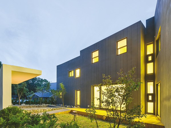 일곱 식구가 살기에는 모든 것이 너무도 열악한 상황이었다. 간절한 도움이 필요한 그때, 곳곳에서 온정의 손길이 이어졌다. 웃음을 잃은 가족을 위해 또 한 번 힘을 모은 JYA-RCHITECTS의 따뜻한 두 번째 프로젝트. 취재 김연정 사진 황효철 ▲ 따뜻함이 전해오는 컨테이너의 외벽은 아이들이 선택한 노란색으로 칠해졌다. ◀ 두 동의 컨테이너 사이에 마련된 대청마루 같은 공간 ▶ 컨테이너를 폴리카보네이트로 덮어 ‘집 속의 집’이 완성되었다. 이 집은 초록우산 어린이재단과 함께, 생활이 열악한 저소득층을 위해 주거환경을 개선해주는 ‘Low Cost House series’의 두 번째 프로젝트다. 전남 장흥에 위치한 이 집에는 부모님과 다섯 아이, 이렇게 총 일곱 가족이 살고 있다. 집은 한눈에 보기에도 매우 낡았고, 구조는 벌써 한쪽으로 기울어진 상태였다. 거기다 집과 붙어 있는 옛 우사에는 아직 소의 배설물들이 그대로 남아 있었다. 상황이 이렇다 보니 온 집 안에 악취가 가득한 것은 물론, 파리며 벌레들도 수를 셀 수 없었다. 그중 제일 심각한 문제는 바로 ‘쥐’였다. 집은 이미 쥐에게 점령당한 상태라 사람이 오히려 쥐를 피해 생활해야 할 수준이었다. 사람을 겁내지도 않는 쥐가 도대체 어디서 어떻게 들어오는지, 얼마나 많은 수가 이 집에 살고 있는지조차 알 수 없었다. 화장실이 없어 대문 옆에 변기만 달랑 놓고 사용하는 모습은 별로 심각하게 느껴지지 않을 정도였다. ▲ BEFOREHOUSE PLAN 대지위치 : 전라남도 장흥군 장동면 대지면적 : 169㎡(15.12평) 건물규모 : 지상 1층 건축면적 : 95㎡(28.74평) 연면적 : 95㎡(28.74평) 건폐율 : 56.21% 용적률 : 56.21% 주차대수 : 1대 최고높이 : 5.7m 공법 : 기초 - 매트기초 지상 - 컨테이너철골구조 + 경량철골구조 구조재 : 컨테이너철골구조 + 경량철골구조 지붕재 : 100㎜ 패널 + 골강판, 폴리카보네이트 단열재 : 100㎜ 비드법단열재(겉집 지붕, 속집 지붕, 속집 벽) 10㎜ 폴리카보네이트(겉집 벽) 외벽마감재 : 컨테이너외장철판(속집), 10㎜ 폴리카보네이트(겉집) 창호재 : PVC 창호 시공 : team of 라권수 설계 : JYA-RCHITECTS 070-8658-9912 www.jyarchitects.com기존의 집은 고쳐서 사용할 수 있는 상태가 아니었고, 무엇보다 쥐로부터 벗어날 수 있는 가장 확실한 방법은 집을 새로 짓는 것이라 판단되었다. 그렇게 신축을 결정한 후 가장 먼저 부딪힌 문제는 바로 공사비. 이는 시리즈의 첫 번째 프로젝트인 벌교주택과 비교해보면 쉽게 이해가 되는 부분이다. 장흥주택의 경우, 벌교주택에 비해 가족 수도 많고 공간도 더 많이 요구될 뿐더러 개축이 아닌 신축이다. 하지만 우리가 쓸 수 있는 예산은 이전과 거의 비슷했다. 간단히 말해, 비슷한 예산으로 더 많은 것을 해결해야 하는 상황이었다. 따라서 이 프로젝트를 위해 필요한 아이디어는 간단하고 명확해질 수밖에 없었다. 바로 ‘적은 예산으로 어떻게 더 많은 공간을 만들 수 있느냐’는 것이었다. ▲ 컨테이너 지붕은 겉집에 의해 다락공간이 되어 부족한 생활공간을 보완해준다. ▲ 일곱 식구의 아늑한 보금자리가 되어줄 컨테이너 내부 모습 두 달간의 건축일지 우리가 선택한 첫 번째 방법은 ‘컨테이너하우스’다. 이는 제작기간이 짧고 현장작업을 최소화해 공사비의 가장 많은 부분을 차지하는 인건비를 줄일 수 있다는 장점이 있다. 시간을 지체할 것도 없이 컨테이너 세 동을 제작했다. 하지만 이 또한 해결해야 할 부분이 있었다. 컨테이너하우스는 단열과 층간소음에 취약한 단점이 있고 컨테이너 3동, 약 50.4㎡(약 15.25평)는 일곱 명의 가족이 살기에는 턱없이 부족한 면적이라는 것. 따라서 이 부족한 생활공간과 컨테이너하우스가 가진 단점, 특히 취약한 단열을 해결하기 위해 또 다른 아이디어가 요구되었다.그래서 선택한 두 번째 방법은 바로 컨테이너 사이에 소위 대청마루 같은 공간을 만들고 이렇게 구성된 컨테이너를 겉에서 덮는 또 다른 집을 만들어 일종의 ‘집 속의 집’으로 완성하는 것이다. 결과적으로 ‘속집’인 컨테이너는 세 겹의 단열층을 갖게 되었고, ‘겉집’과 ‘속집’ 사이에는 완전한 내부도, 완전한 외부도 아닌 모호한 공간이 생겨났다. 이 공간은 앞뒤에 설치된 커다란 미닫이문을 통해 외부의 자연과 이어지고, 열고 닫음에 따라 여름엔 외부, 겨울엔 내부처럼 사용할 수 있다. 두 집 사이에 만들어진 대청마루는 가족의 거실이 되고, 현관이 되고, 모여 앉아 밥을 먹는 식당이 되고 방과 주방, 화장실 등을 잇는 복도가 된다. 또한, 컨테이너 지붕은 겉집에 의해 다락공간이 되어 부족한 생활공간을 보완해주는 동시에 아이들에게 다양한 공간을 경험할 수 있게 해준다. 대청마루 위의 지붕은 투명한 폴리카보네이트로 마감하여, 집 안을 밝게 해주는 것은 물론 주변의 나무와 하늘을 볼 수 있어 아늑하면서도 개방적인 경험을 제공한다. <글 _ 원유민> INTERIOR SOURCES 내벽마감 벽지(합지) 바닥재 데코타일 욕실 및 주방타일 자기질타일 200×200, 자기질타일 100×300 수전 등 욕실기기 Royal 도기 주방가구 하이그로시 UV코팅, 인조대리석상판 조명 LIMAS 현관문 방화도어 방문 ABS 행거도어 데크재 SPF 구조목 건축가 집단 JYA-RCHIT