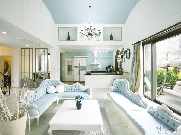 순백 바탕에 스카이블루, 민트 등 달콤한 색감, 반짝이는 샹들리에와 부드러운 곡선의 클래식한 가구. 기품 있으면서도 화사한 인테리어가 모던한 감각과 어우러져 고전적인 아름다움을 보여준다. 여자라면 꼭 한 번 품었을 로망을 그대로 실현한 주택을 찾았다. 취재 조고은 사진 변종석붉은빛 테릴 기와를 얹은 지붕 아래 ‘Twin House’라는 글귀가 저 멀리서 눈에 들어온다. 강원도 원주시 무실 택지지구에 있는 이 집은 쌍둥이 막내까지 네 명의 아이를 둔 허미영 씨 부부의 첫 단독주택이다. 아파트에서만 살아온 건축주가 집을 짓기로 한 결정에는 사실 아이들을 위한 마음이 가장 크게 작용했다. 집을 짓고 이사한 후, 이제는 아이들이 아랫집 눈치보지 않고 뛰어놀 수 있어 가장 기쁘다는 건축주. 그리고 또 하나, 이 집은 상상 속의 예쁜 집을 직접 꾸며보고 싶었던 소망을 마음껏 펼칠 수 있었던 건축주의 꿈을 실현한 공간이기도 하다. ▲ 큰 창을 내어 채광이 좋은 안방. 파티션으로 침실 공간을 구분하고, 신혼 때부터 있던 소파는 패브릭을 바꾸어 조화롭게 연출했다. ◀ 건축주가 네 아이들을 위해 특별히 마련한 실내 미니 수영장 ▶클래식 인테리어 콘셉트를 유지하고 있지만, 깨끗하면서도 절제미가 돋보이는 2층 욕실▲ 내부뿐 아니라 야외 데크에서도 벤치, 화분 등 작은 소품에 신경 쓴 건축주의 세심함이 엿보인다. HOUSE PLAN 대지위치 : 강원도 원주시 대지면적 : 258.3㎡(78.14평) 건물규모 : 지상 2층 건축면적 : 142.47㎡(43.1평) 연면적 : 213.3㎡(64.52평) 건폐율 : 55.16% 용적률 : 82.58% 주차대수 : 2대 최고높이 : 9m 공법 : 기초 - 철근콘크리트 매트기초 지상 - 철근콘크리트 구조재 : 철근콘크리트조 지붕재 : 테릴 기와 단열재 : S.P 외벽마감재 : 슈퍼화인 마감 창호재 : 남선알루미늄 시스템창호 계획설계 : 박노현(해 뜨는 집), 허미영(건축주) 실시설계 : 장인건축 시공 : 해 뜨는 집 043-651-8846, 043-648-8846◀ 화려한 거울과 샹들리에가 돋보이는 1층 욕실은 손님을 위한 공간이다. ▶ 우아하고 품격 있는 스타일의 식당. 거실 소파와 비슷한 화이트 프레임의 식탁을 놓았다. ▲ 1층 욕실 세면대에 놓인 도자기 비눗갑은 건축주가 직접 만들었다. 이 집은 건축부터 인테리어까지 모두 건축주 직영으로 이루어졌다. 미술을 좋아했지만 부모님의 반대로 다른 길을 택해야 했던 건축주 미영 씨는 평소에도 인테리어 스타일링에 관심이 많았다. 이번 기회에 직접 집을 지으며 그동안 머릿속으로만 그려보았던 것들을 실현해보리라 생각했지만, 건축은 처음이었던 터라 친분이 있는 ‘해 뜨는 집’의 박노현 씨에게 도움을 청했다. 평소에도 인테리어 취향이 잘 맞았던 두 사람이 의기투합해 사랑스러우면서도 고전미가 살아 있는 클래식 하우스를 완성했다. ▲ 이 집의 거실에는 TV가 없다. 가전제품은 최대한 밖으로 드러나지 않아야 한다는 것이 건축주와 시공자의 인테리어 철칙. 1층은 천장의 높이에 변화를 주어 거실과 주방, 안방 등을 구분했는데, 주방 천장부 액자 프레임 디자인은 건축주의 아이디어다. ▲ 천장에 짙은 색의 서까래를 노출하고 화분을 두어 자연스러운 느낌을 더한 2층 아이방 ‘클래식 인테리어’라고 하면 흔히 중후하고 화려하며 웅장한 느낌의 서양 전통 양식을 떠올린다. 이 주택은 짙은 색상 대신 화사한 파스텔 톤을 바탕으로 우아하고 기품 있는 클래식 인테리어를 완성했다. 기본적으로 곡선의 프레임에 장식적인 조각이 더해진 고전적인 디자인의 가구를 사용하고 있지만 결코 과하지 않고, 내부 전체적으로 밝고 로맨틱한 컬러를 사용하여 어둡지 않다. 집 안에 있는 가구 대부분은 건축주가 직접 밑그림을 그려 주문 제작한 것들이다. 제작을 의뢰하면 마호가니 나무 생산량이 많은 인도네시아 발리에서 수공으로 작업해 건너오는 방식으로 비교적 저렴하게 장만했다. 제작 및 배송기간이 최소 6개월에서 길게는 10개월 이상 소요되기 때문에 인내심이 필요하지만, 기성 가구와 큰 차이가 없는 가격에 원하는 가구를 만들 수 있다는 것만으로도 충분히 매력적이다. 거실의 흰색 커튼 역시 패브릭에 건축주가 직접 디자인한 자수 문양을 넣어 제작한 것이다. 이 밖에도 건축주가 세심하게 고른 욕실의 금장 거울, 공간마다 빛을 밝히는 샹들리에 등 소품 하나하나가 클래식한 분위기를 연출한다. 현대와 고전이 조화롭게 녹아든 클래식 인테리어. 화려한 듯 적당히 절제된 아름다움과 부드러운 곡선미가 여성미를 더해 한결 사랑스러운 집으로 완성되었다.◀ 서재는 클래식한 분위기를 유지하되, 베이지 톤을 바탕으로 어두운 색의 원목가구를 배치해 차분하고 중후한 느낌을 살렸다. ▶ 네 아이들의 방이 있는 2층에 오르면 가장 먼저 그린 컬러의 피아노가 보인다. INTERIOR SOURCES 내벽 마감 : 실크벽지, 스킨벽지(논현동 새생활장식), 노루표 페인트 바닥재 : 페르고 욕실 및 주방 타일 : 윤현상재 수입타일 수전 등 욕실기기 : 대림바스, 아메리칸 스탠다드 주방 가구 : 에넥스 계단재 : 집성목, 페인트 도장 현관문 : 집성목, 페인트 도장 방문 : 집성목, 페인트 도장 붙박이장 : 에넥스 데크재 : 방부목, 페