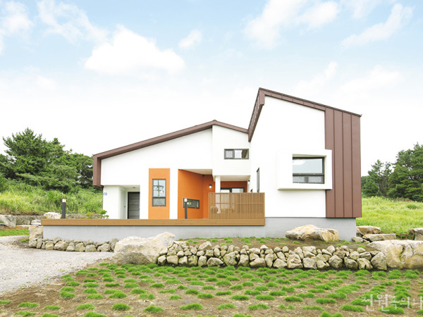 멀리서부터 지붕 위로 올라온 먼나무(난대수종으로, 가을이면 붉은 색 열매가 포도송이처럼 주렁주렁 달리는 모습이 특징이다. 우리나라 남해안 섬에서 많이 자라며 제주도에 많이 서식하는 나무)가 눈길을 끄는 언덕 위 전망 좋은 집. 대문 앞 ‘행복이 웃는 집’이라는 명패가 손님을 반기는 이 집은 시인이자 화가, 설치미술가인 건축주가 직접 디자인하고 시공한 집이다. 이국적인 풍경이 아름다운 제주에서 집주인의 개성과 예술적 감각이 묻어나는 서귀포 주택을 찾았다.취재 정사은, 조고은 사진 변종석 앞으로는 서귀포 시내와 바다의 풍경이, 뒤로는 한라산이 보이는 언덕에 단독주택 한 채가 새로 들어섰다. 서귀포시 서홍동은 한국의 명수(明水)로 소문난 ‘지장샘’이 있는 유서 깊은 마을이다. 제주 이민자들이 넘쳐나는 요즘이지만 아직 외지인들이 많지 않은 동네 중 하나로, 서귀포항이 가까워 차로 10분이면 바다를 만날 수 있다. 가까이 대형마트, 재래시장, 병원, 시청 등 편의시설이 모여 있어 생활하기도 편리하다. 이 집을 직접 디자인한 건축주 안대진 씨 역시 이런 점에 반해 이곳에 집을 지었다. 오랜 외국 생활 후, 2007년 제주도에 들어와 산 지 6년 만에 지은 ‘내 집’이다. 주택의 내부로 들어서자 그가 즐겨듣는 음악이 흘러나온다. 건축을 업으로 하고 있지만 화가이자 시인, 설치미술가이기도 한 그는 ‘입고(衣) 먹고(食) 사는(住) 일 모두 즐거워야 한다’는 자신의 가치관을 집에 그대로 담았다. ‘행복이 웃는 집’이라 이름 지은 것도 바로 그런 연유에서다. 대문에서 현관으로 향하는 길에 있는 오픈카페와 넓은 마당과 테라스, 주방과 연결된 외부 공간은 지인들을 초대해 어울리기 좋아하는 그의 성향을 그대로 반영한다. 세 자녀가 모두 독립해 식구는 부부 둘뿐인 터라 주택의 공간 구성은 단순하다. 1층에는 하나의 동선으로 이어지는 거실과 주방, 욕실, 침실이 있는데, 거실과 침실 모두 전면에 창을 내어 채광이 좋다. 특히, 종종 지인들과 자택에서 식사를 즐기는 그는 테이블 바로 옆에 세면대를 두어 불필요한 움직임을 최소화했다. 주방 옆으로 이어지는 외부 공간은 대나무 숲의 정경을 즐기며 식사를 하거나 차 한잔 하기 좋은 곳이다. ▲ 주택은 평범한 박공지붕에 단순한 형태의 매스이지만, 다양한 소재를 적절하게 혼합하여 매치해 개성을 살렸다. ▲ 옥상에는 1층 오픈카페에서 지붕을 뚫고 올라온 먼나무가 타원형의 조형물과 어울려 멋스러운 광경을 연출한다. HOUSE PLAN 대지위치 : 제주특별자치도 서귀포시 대지면적 : 456㎡(137.94평) 건물규모 : 지상 2층, 다락 건축면적 : 80.22㎡(24.27평) 연면적 : 127.84㎡(38.67평) 건폐율 : 18.11% 용적률 : 28.86% 주차대수 : 1대 최고높이 : 9.1m 공법 : 기초 - 철근콘크리트 매트기초 지상 - 철근콘크리트 구조재 : 철근콘크리트조 지붕재 : DBS COATING METAL 단열재 : 우레탄폼, 아이소핑크 70㎜ 외벽마감재 : 독일산 STO 창호재 : LG시스템 창호 계획설계 : 일소디자인 010-8812-1237 실시설계 : 이즈건축 시공 : ING건축 064-738-1267 건축비 : 3.3㎡(1평)당 520만원▲ 뻐꾸기창이 돋보이는 주택 전면은 푸른 잔디마당과 야자수, 제주의 맑은 하늘이 어우러져 한층 이국적인 분위기를 자아낸다. ▲ 지붕을 뚫고 서 있는 먼나무가 멋스러운 오픈 카페는 주택의 핵심이다. 세 개의 벽면을 각각 다른 소재로 마감하고, 딸과 건축주가 직접 그림을 그리고 메시지를 적어 넣어 예술적 공간을 연출했다. ▲ 주택의 곳곳에는 세로 혹은 가로로 길게 창을 내어 탁 트인 시야가 장관이다. 2층에서 내다보는 제주 풍경은 서귀포 시내 너머로 보이는 바다가 마치 하늘에 떠 있는 듯 느껴진다. ▲ 2층 사다리를 오르면 만날 수 있는 다락방. 널찍하고 아늑한 이 공간은 건축주의 작업실로 꾸며질 예정이다. ▲ 여러 사람과 함께 식사하기 좋도록 인덕션이 일체형인 가로로 긴 식탁을 제작했고, 식탁 가까이에 세면대를 두어 욕실까지 가지 않아도 손을 씻을 수 있다. INTERIOR SOURCES 내벽 마감 : 다래 실크벽지 바닥재 : LG 데코타일 멀바우 욕실 및 주방 타일 : PANARIA, BISAZZA 수전 등 욕실기기 : DADA 수전, 대림원피스비데 주방 가구 : 한샘, 로칼 계단재 : 우드 집성목 현관문 : 동아금속 KOREANA 방문 : 영림도어 붙박이장 : 원목 핸드메이드 데크재 : 에폭시 도장 2층에는 방 1개와 가족실, 욕실, 발코니가 있다. 이곳에도 공간마다 전면에 창을 내어 제주의 풍경이 한눈에 들어온다. 가족실에서 이어지는 다락방은 약 18평으로 널찍하지만 아늑하다. 넓은 다락방은 건축주가 주택을 디자인하거나 그림, 시 등의 작품 활동을 하는 작업실로 꾸며갈 예정이다. 집을 짓고 사는 사람이 즐겁고 행복해야 집을 찾는 이들도 행복하다는 건축주. 그는 제주에서만 두 개의 차실을 운영하고 있는데, 그곳의 이름도 ‘행복한 차실’이다. 그곳에도 행복과 사랑을 주제로 그가 직접 그리고 만든 그림과 조형물이 손님을 맞는다. 특유의 예술적 감성과 개성, 즐거움이 가득한 집에서의 나날들. 앞으로 그의 삶에는 웃을 일이 더 많을 것 같다. ※ 월간 <전원속의 내집> www.uujj.co.kr 본 콘텐츠의 저작권은 (주)주택문화사에 있으