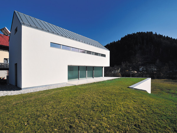 새하얀 집이 놓여 있다. 주변 건물과 사뭇 대조되는 모습이 지나는 이의 시선을 끈다. 건축가는 대지의 첫인상을 바탕으로, 사람과 건축 그리고 자연의 관계를 집으로 묘사했다. 자연의 이치를 거스르지 않고, 간결하며 실용성을 강조한 순백의 주택을 만나본다. 취재 김연정 사진 Marko Zoranovic중세를 품은 옛 건물과의 조화이 단독주택은 슬로베니아의 유명한 중세 도시 슈코퍄로카(Skofja Loka) 교외에 위치한 Suha 마을에 자리하고 있다. 건물은 농장 안뜰의 통합된 공간에서 동쪽을 차지하던 옛 농장건물을 대신하는 구조로 지어졌다. 때문에 이 새로운 건물은 문화유산 법규에 따라 박공지붕과 철거구조물의 최대허용규모에 맞게 제한된 규모로 세워져야 했다. 이곳에 거주하게 될 건축주는 이 농장의 주인 아들로, 학문적이고 교양 있는 사람이다. 따라서 전형적인 농촌지역에 위치하고 있지만, 주택의 설계방향만큼은 매우 도시적으로 풀어냈다.건물이 지어질 곳은 슈코퍄로카 마을 위, 높게 세워진 중세 성곽의 아름다운 전경을 어느 곳에서나 바라 볼 수 있고, 남서쪽으로 흐르는 Sora 강의 비탈면에 위치한다. 경사지에 수직으로 앉혀진 주택은 지하층, 지상 1, 2층으로 계획되었다. 이러한 방식은 지하층이 하안단구의 하부를 향해 개방되고, 넓은 유리로 표면이 마감된 1층은 하안단구 상부에 위치하는 농장 안뜰을 향해 열린 구조다. 침실은 모두 동향으로 두었다. 건물의 주된 진입은 남측으로 난 길을 통해 도보로 양방향 접근이 용이하며, 지하에 위치한 차고를 통해 차를 타고 내부로 진입할 수도 있다. 더불어 주출입구는 동측 외부 계단을 통해 연결된다. 건물의 서측에는 1층 거실 앞 풀밭과 연결되는 일본 계단정원 스타일의 잔디 슬로프를 놓았다. 이러한 방법으로 주택은 대지와 통합될 수 있었다. 파노라마 창을 통한 그림 같은 풍경주택은 농장 안뜰의 도시적인 이미지와 더불어 사방으로 둘러싸인 원형성을 유지시켜 준다. 마치 안뜰이 하나의 거대한 아트리움(Atrium)처럼 농장 주인의 여러 건물과 그의 자녀들이 사는 새 주택으로 둘러싸여 있는 형상이다.이 건물의 단면은 알파벳 ‘Z’ 모양이다. 1층은 건물 서쪽의 안뜰로 완전히 개방되는 한편, 2층은 건물 동쪽을 향하고 있다. 지하층에는 큰 차고와 창고, 헬스장 및 사우나, 보일러실, 기계실이 위치한다. 계단을 통해 지상층과 연결되며, 1층은 긴 직사각형 형태를 하고 있다. 좁은 북측 면에는 계단실 및 주출입구가 현관, 화장실과 함께 놓여있다. 하나로 연결된 1층의 나머지 넓은 공간에는 주방과 식당, 거실을 차례로 두었다. 이 공간은 지주가 없는 12미터 폭의 창을 통해 주택의 ‘아트리움’으로 개방되며, 강과 옛 도시를 향한 그림 같은 전경이 펼쳐진다. 이곳은 실질적으로 시야가 트인 ‘발코니’라 할 수 있다. 1층에서 2층으로 계단이 이어지다가 건물의 서쪽 면을 따라 난 복도로 연결되게 된다. 이 공간의 긴 창을 통해 도시의 파노라마적인 광경을 볼 수 있다. 복도의 동측에는 침실과 자녀와 부부의 작업 공간 및 욕실이 배치되어 있다. 특히 복도의 동쪽라인 전체는 옷장이 길게 늘어서 있는 것이 특징이다. 부부의 침실에는 별도의 욕실을 따로 두었고, 침대와 수평으로 마주하는 남측 벽면에 파노라마 창을 내어 그림 같은 주변 풍광을 감상할 수 있도록 했다. 환경까지 생각한 저에너지주택건물은 철근콘크리트 구조로, 격벽(Partition Wall)은 벽돌, 지붕은 목재를 사용해 만들어졌다. 1층 위로는 지상층의 대형 파노라마 창을 위한, 좀 더 복잡한 지지구조가 설계되어 있다. 외부 내력벽체는 25㎝ 두께의 단열재를 부착하고, 그 위를 화이트 톤의 플라스터(Plaster)로 마감했다. 아연(Zinc) 지붕은 밝은 그레이 빛을 띤다. 건물의 주출입구 위에는 돌출된 유리지붕을 설치하였고, 거실 앞 푸른 잔디 테라스에는 티그재(Teakwood)로 만든 넓은 도보 면을 갖춰 사용자의 편의를 고려하였다. 주택의 난방은 바닥난방시스템과 열회수장치, 히트펌프 및 두 개의 지열구멍의 조합으로 이뤄진다. 또한 최소한의 전기에너지가 소모되는 저에너지주택이기 때문에 에너지 소비를 줄이기 위한 목적으로, 꼭 필요한 곳이나 주변 환경에 대한 추가적인 시야를 개방할 수 있는 곳에만 개구부를 내었다. <글·Arhitektura d.o.o.>HOUSE PLAN대지위치 : Suha, Skofja Loka, Slovenia 구조설계 : Navor d.o.o.건축비용 : 450.000 eur설계기간 : 2010~2012설계 : Peter Gabrijelcic, Bostjan Gabrijelcic(Arhitektura d.o.o.) www.arhitektura-doo.si건축집단 Arhitektura d.o.o.1995년 슬로베니아 류블랴나(Ljubljana)에 설립된 Arhitektura d.o.o.는 건축가 Peter Gabrijelcic와 그의 두 아들 Bostjan과 Ales에 의해 현재까지 활발히 운영되고 있다. 도시설계와 유니크한 프로젝트, 리노베이션 등에 초점을 맞춰 다양한 작품 활동을 진행 중이다.▶ 본 기사는 본사에서 발간한 단행본 'HOUSE OF ARCHITECT Ⅱ / 건축가 42인의 주택작품집_해외편'에서 발췌한 내용으로 책에 대한 목차 및정보는 아래를 참고하세요.^^http://www.uujj.co.kr/shop/item.php?it_id=1383281854※ 월간 <전원속의 내집> www.uujj.co.kr 본 콘텐츠의 저작권은 (주)주택문화사에 있으며, 이를 무단 이용하는 경우 저