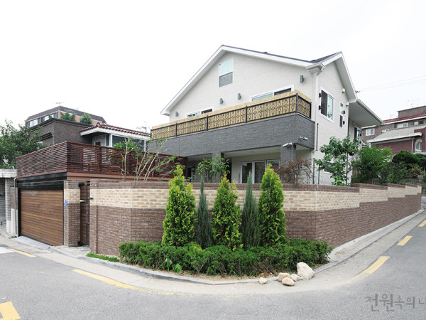 주변 공사가 한창인 화성 동탄신도시의 한 타운하우스 블록. 각 건설사에서 주택을 지어 분양하는 인근의 단지들과 달리 건축주별로 각자 집을 짓는 중이다. 취재 임수진 사진 변종석 ▲ 외부 벽면은 스터코를, 건물 기단부에는 인조석을 사용하여 전체적인 컬러와 재질이 조화를 이루도록 했다. 점토기와로 마감한 지붕에서 무게감 있고 고풍스러운 지중해풍 주택의 우아함이 엿보인다. ▲ 박스 형태의 매스에 사선 요소를 최소화시킨 미니멀한 지중해풍의 주택이 완성되었다. ◀ 주택의 정면으로는 데크를 넓게 내고 단차를 두어 공간을 분할했다. 데이블 세트와 파라솔 등 다양한 가구와 소품을 활용해 풍성한 외부공간을 완성하였다. ▶ 주택의 가장 큰 포인트는 직선과 곡선의 깔끔한 조화이다. 굴곡이 많은 앤틱적 요소는 배제하고, 큰 매스와 창호 모두 사각형으로 계획해 세미모던과 지중해풍을 적절히 매치했다. “미국에서 잠깐 생활할 때 듀플렉스 주택에 살았어요. 아파트가 아닌 마당이 있는 집에서 사는 게 너무 좋아서, 한국에 가면 주택을 지어야겠다고 생각했죠.” 건축주 부부는 9년 전 지인들과 의기투합해 땅을 분양받았다. 단지 내 도로를 내고 10필지로 나누었는데, 타운하우스 부지라서 외관을 동일한 스타일의 디자인으로 지어야 한다는 까다로운 규제가 있는 것을 나중에야 알았다. 이미 가장 첫 번째 주택이 지중해풍으로 설계해 허가가 떨어진 상태라 모던한 스타일을 꿈꿔왔던 의도는 방향을 틀어야 했다. 장장 3개월간 설계변경 끝에 허가를 받아냈다. 외관은 남편이, 인테리어는 아내가 설계에 참여해 집 곳곳에 아이디어를 더했다. 주차장 공간보다 땅을 조금 돋우어 건물을 앉혀 진입로부터 다른 집들과 다르다. 흔한 주차 문제로 이웃에게 피해를 주기 싫은 부부의 의견이 적극 반영된 결과다. 집의 정면은 남동쪽을 향해 있는데 데크를 널찍하게 내어 테이블과 파라솔을 놓고, 역시 단차를 두어 외부 공간을 효과적으로 구획했다. 데크를 지나 닿게 되는 현관에도 양철 우체통을 비롯해 상큼한 화초들까지, 갖가지 소품이 풍성하다. ▲ 내부는 설계에서부터 장식적 요소를 배제하여 깔끔하게 디자인했다. 전체적으로 데드스페이스(Dead space) 없는 공간 활용을 꾀하고, 메인 컬러는 화이트로 선택하였다. 붉은 기와를 얹은 지중해풍 외부와 달리 실내는 미니멀하고 깔끔한 것이 특징이다. 장식적 요소를 최대한 배제하고 모던한 스타일로 디자인했다. 이전 아파트에서 사용하던 가구들을 모두 가져오고 필요한 몇 가지만 추가로 제작해 마치 처음부터 그곳에 있었던 듯 모든 가구가 제자리를 찾았다. “인테리어라고 해서 어렵게 생각할 필요 없어요. 자기만의 취향을 정확히 알면 알맞은 가구나 소품은 다 찾을 수 있으니까요. 적당한 위치에 놓기만 하면 되는 거죠. 가장 신경 쓴 부분은 주방이에요. 불필요한 살림은 최대한 줄이고 하부장을 넉넉히 짜 넣었더니 답답한 상부장은 필요 없었어요. 조명도 화려한 것을 배제하고 천창을 두어서 훨씬 시원스러운 실내를 꾸밀 수 있게 되었지요.” 주방은 모임지붕 형태의 천장구조에 꼭대기에는 작은 천창을 두고 식탁까지 일체형으로 제작했다. 깔끔한 이 집의 컨셉을 극명하게 나타내는 공간이다. 여기에 2층 층고의 거실은 풍성한 공간감을 자랑한다. 안방 역시 침대와 소파 등의 기본 가구만 둔 채, 나머지는 드레스룸에 짜 넣은 벽장 안으로 모두 수납했다. 2층은 자녀들을 위해 꾸몄다. 침실에는 미니주방을 두어 편의를 염두에 두었으며 지붕선이 살아있는 작은 다락방을 계획해 아늑함을 더했다. 발코니 앞으로는 좌식테이블과 세련된 조명, 몇몇 소품을 배치해 작은 공간 하나도 놓치지 않았다. ▲ 거실과 주방은 깊은 공간감을 강조할 수 있도록 천장을 높였다. 주방은 천장을 사선으로 높이고 천창을 내어 실내가 한층 밝다. ▲ 2층 계단에서 바라본 모습. 아늑하게 꾸며진 소거실과 자녀침실이 보인다. ◀ 철제 난간과 멋스런 샹들리에, 깔끔한 버티컬로 꾸며진 계단실 ▶ 2층의 한쪽 공간에는 작은 다락방을 만들어 휴식과 사색의 장소로 활용한다. ▲ 1층에 자리한 서재는 손님이 방문할 경우 게스트룸의 역할까지 겸한다. 비록 단지 내 규제라는 예상하지 못한 난관에 부딪혔지만, 이상적으로 꿈꾸던 집의 모습을 명확히 그리고 그것을 현실로 이루어낸 건축주의 실행력은 놀랍다. 설계와 실내 디자인의 적절한 조화로 ‘아늑한 집’이라는 결과를 완성한 주택. 지중해풍과 모던함을 동시에 만족시키며 직선과 곡선이 조화를 이루는 모습으로, 하나둘 들어설 이웃집들의 좋은 본보기가 되고 있다. HOUSE PLAN 대지위치 : 경기도 화성시 대지면적 : 308.50㎡(93평) 건물규모 : 지상 2층 건축면적 : 107.53㎡(33평) 연면적 : 161.51㎡(49평) 건폐율 : 34.87% 용적률 : 52.35% 주차대수 : 2대 최고높이 : 8.17m 공법 : 매트기초 구조재 : 경량목구조 지붕재 : 테릴 점토기와 단열재 : 이소바 인슐레이션(유리섬유) R11, R19, R30 외벽마감재 : 스터코, 인조석 창호재 : 융기 드리움(미국식, 독일식) 설계 및 시공 : (주)더존하우징 1644-3696 www.dujon.co.kr평당 건축비 : 3.3㎡(1평)당 48