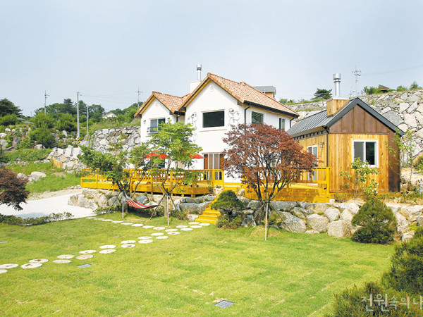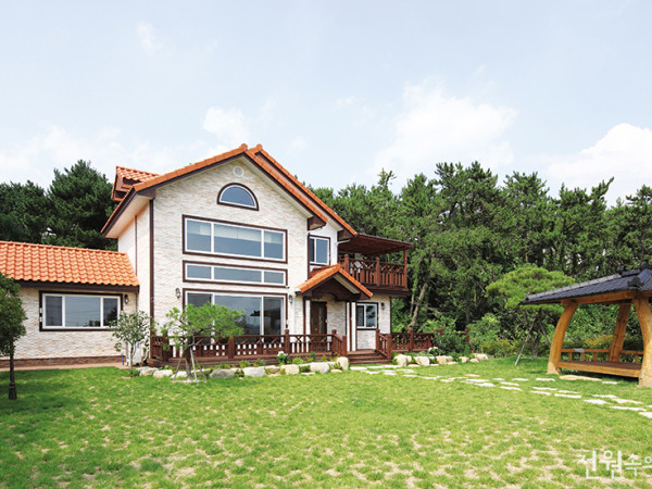 삶의 방식과 태도는 사람마다 다르지만 편안함과 휴식, 즐거움 등 집이 충족시켜주길 바라는 욕구는 크게 다르지 않을 것이다. 어릴 적 누구나 그리던 ‘빨간 지붕 이층집’의 모습을 그대로 재현하며 멋들어진 마당까지 갖춘 집으로 초대한다.취재 정사은 사진 변종석 부산에서 차로 1시간 거리인 울산은 시골의 정취를 느낄 수 있으면서도, 도시의 편리함을 갖춘 배후지가 많아 편리하게 전원생활을 즐기기 안성맞춤이다. 부산에 거취를 둔 건축주는 바쁜 생활에서 여유를 갖고자 이곳에 주말주택을 마련했다. ▲ 풍경을 감상할 수 있는 2층 테라스는 건축주의 휴식공간이다. ◀ 디딤석이 총총히 놓인 진입로 ▶ 거대한 서까래가 돋보이는 거실부. 친환경 목재를 사용한 건강한 인테리어다. 습도 조절과 단열에 탁월한 효과를 보이는 목재로 골조를 올린 주택은 외관을 석재와 사이딩으로 마감해 산뜻한 분위기를 풍긴다. 마당에는 잔디를 심고 쉬어가는 오두막을 두어 안팎으로 여유가 느껴진다. 화단에는 고추와 방울토마토를 심어 주말의 소일거리를 일부러 만들었다는 건축주의 설명에 주말주택의 풍요로움이 물씬 풍긴다. 마당에 총총히 깔린 디딤석을 지나 건물 내부로 들어서면 한옥의 보와 서까래를 재현한 중량 목구조의 부재를 고스란히 마주한다. 이 거실은 집의 메인공간으로 그 면적 또한 상당하다. 잘 말려 틀어짐이 적은 홍송보를 부재로 사용했기 때문에 구조의 안정감이 뛰어나며 박공모양의 높은 층고로 비례가 좋다. 계단 또한 고주파로 건조한 홍송 원목을 투시형으로 배치해 거실의 탁 트인 느낌을 살리는 데 제격이다. 무엇보다 1층과 2층을 각 2,500㎜로 높게 지었는데, 이는 공간을 더 넓게 느끼게끔 해준다. 추운 지방에서는 난방비의 과다 지출이 우려되어 층고를 높이는 설계에 신중을 기해야 하지만, 남쪽인 울산은 따뜻한 지역이기에 가능한 디자인이다. ▲ 언제든 야외로 나갈 수 있도록 식당 옆에 데크공간을 마련했다. ▲ 정갈한 안주인의 성품을 고스란히 드러내는 단정한 부엌 ▲ 투시형 계단으로 답답함 없이 탁 트인 실내를 누릴 수 있다. ◀ 현관으로 들어서면 보이는 거실 풍경 ▶ 빨간 쿠션의 라탄 소파는 안주인이 직접 고른 인테리어 아이템이다. ▲ 미송으로 마감한 안방의 웰빙 인테리어 실내는 군더더기가 없다. 꼭 필요한 실만 있되, 단순하고 정갈한 짜임으로 불필요한 동선을 최소화했다. 주말주택답게 집안 곳곳에는 쉴만한 곳이 널려 있는데, 거실뿐 아니라 2층의 소(小)거실 책장에도 책이 가득하다. 2층 테라스 또한 그늘을 피하며 풍경을 감상하고 여유를 누리게끔 마당을 향해 배치되어 있다. 황토 타일로 마감한 황토방은 손님을 위한 공간으로, 황 벽돌이나 미장의 단점들을 극복했다. 눈에 보이는 내·외부 마감뿐 아니라 모든 자재를 친환경 등급을 받은 재료들로 택하고 거실 전면의 아트월은 원적외선을 방출하고 공기정화 효과가 있는 산호석을 사용했다. 펼쳐진 배밭을 한 눈에 감상할 수 있는 주말주택. 전원에서의 쉼을 통해 매주 재충전하고 돌아간다는 건축주의 말처럼, 이곳에서 누리는 여유는 무엇과도 바꿀 수 없는 자연의 값진 선물이다. HOUSE PLAN 대지위치 : 울산광역시 서생면 대지면적 : 657㎡(198.74평) 건물규모 : 지상 2층 건축면적 : 120.06㎡(36.32평) 연면적 : 157.95㎡(47.78평) 건폐율 : 18.27% 용적률 : 24.04% 주차대수 : 지상 자주식 2면 최고높이 : 8.79m 공법 : 기초 - 콘크리트 매트기초 / 지상 - 2×6 경량 목구조 구조재 : S.P.F 구조목 지붕재 : 라파즈 기와 단열재 : 인슐레이션 외벽마감재 : 투라인 가공석. 시멘트사이딩 창호재 : 베카드리움 설계 및 시공 : 계림주택건설(주) 055-324-0488 www.kaelim.co.kr건축비 : 3.3㎡(1평)당 430만원INTERIOR SOURCES 내벽 마감 : 실크벽지, 미송루바, 황토타일 바닥재 : 강화마루 욕실 및 주방 타일 : 국내 및 수입타일 수전 등 욕실기기 : 대림, 인터바스 주방 가구 : 럭키부엌가구 원목장 조명 : 무궁화조명 계단재 : 홍송 원목(고주파 건조) 현관문 : 캡스톤 3/4 오발 미듐오크 방문 : 홍송문 아트월 : 산호석 붙박이장 : 럭키부엌가구 하이그로시 데크재 : 방부목※ 월간 <전원속의 내집> www.uujj.co.kr 본 콘텐츠의 저작권은 (주)주택문화사에 있으며, 이를 무단 이용하는 경우 저작권법 등에 따라 법적책임을 질 수 있습니다.