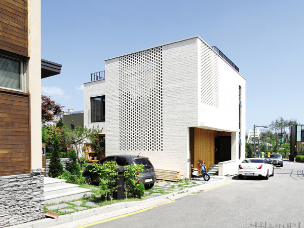 경기도 성남시 분당구에 자리 잡은 흰벽돌집, 지나는 이들의 호기심을 자극시키면서 동네의 랜드마크로 자리했다. 그만큼 집을 짓는 과정에 건축주 부부의 땀과 노력이 배어 있을 것 같은데, 그들은 정작 밥 짓듯이 집을 편안하게 지었다고 한다. 밥이 잘 될 때도 있고, 못될 때도 있다는 마음으로...취재 이세정 사진 변종석 ▲ 도로에서 바라 본 주택, 호주산 벽돌 입면에 패턴을 주었다. ▲ 마당을 감싸 안은주택과 벽돌로쌓은 벽초대해 주셔서 감사합니다. 입주를 하신 후에 ‘오픈하우스’ 행사도 하셨죠? 아내 / 네. 집 지으면서 만난 다양한 분들과 이웃들을 한자리에 초대하는 오픈하우스를 열었어요. 정말 생각보다 많은 분들이 와주셨는데, 다들 덕담도 나누고 집에 대한 정보도 공유하는 좋은 시간이었어요. 판교 지역은 고급 단지라는 이미지가 강해서, 그런 교류들이 별로 없을 것 같은데요. 남편 / 그런 면이 없다고는 할 수 없지만, 온라인을 통한 커뮤니티도 활성화되어 있고 막상 들어와 살다보면 다 친하게들 지내요. 단독주택에 산다는 공통분모가 있잖아요. 저희는 폐쇄된 집보다는 따뜻하고 편한 집을 먼저 생각했어요. 그런데다 직접 몸으로 겪으며 건축을 끝내니 소회가 남달랐죠. 원래 주택살이 경험이 있었나요? 아내 / 저는 평생 아파트에서만 살았어요. 늘 답답하다, 떠나고 싶다, 한번은 남편한테 베란다창을 통째로 뜯어내고 싶다고도 했어요. 아이들도 어릴 때나 마당에서 놀지, 중고등학생 되면 방 안으로 다시 틀어 박힌다구요. 남편 / 사업장이 근처라 판교는 택지지구가 조성될 때부터 자주 들렀어요. 그런데 2, 3년 전까지만 해도 분양가에 프리미엄도 많이 붙어, 저흰 거의 포기 상태였어요. 그러다 요즘은 어떨까 하며 우연히 부동산에 들렀는데, 오히려 가격이 조금 안정화되고 있더군요. 그동안 아파트 대출금도 거의 갚았을 시기고 해서 가족들과 ‘한번 해보자! ’ 마음먹었죠. 매물로 나온 다양한 필지 중에, 어떤 기준으로 고르셨나요? 남편 / 처음에는 산으로 둘러싸인 운중동 쪽이 좋아보였어요. 그런데 막상 가보니 위쪽에 외곽순환고속도로가 있어 소음과 진동이 좀 느껴졌어요. 차라리 조금 조용한 데가 낫겠다 싶어, 상가와 좀 떨어져 있으면서 마을 같이 생긴 곳으로 택했죠. 아내 / 운이 좋았는지, 땅도 분양가에 조금 더한 정도로 구입할 수 있었어요. 몇 번 가계약까지 가는 시행착오를 거치긴 했는데, 오히려 더 좋은 땅을 만나기 위한 과정이었다고 생각해요.아파트에서 주택으로 이사오면서, 공백은 없었나요? 남편 / 아파트 매매가 줄어드는 시기라, 생각했던 것보다 더 일찍 내놨어요. 그런데, 한달만에 산다는 사람이 나타난 거에요. 우리는 주택 설계를 막 시작한 때였지만, 임자 있을 때 팔아야 한다는 부동산 말에 당장 매매했어요. 그리고 달랑 짐 싸들고 12평짜리 오피스텔로 이사했지요. 가족 모두에게 색다른 경험이었겠네요. 아내 / 애초 다섯 달만 참으면 된다 했는데, 공사가 미뤄져 총 열 개월을 있었어요. 처음에는 소꿉놀이하듯 재밌었죠. 그런데 두세 달 지나니 서로 잔소리가 많아지고 스트레스가 쌓이고. 그 좁은 오피스텔에서 네 식구 빨래를 넌다고 생각해봐요. 아휴. 공사가 길어진 특별한 이유가 있었나요? 아내 / 계약한 시공사가 골조와 외부 마감까지 하고 다음 공사 진행을 안했어요. 현장에 나와 봐도 아무도 없고 연락하면 핑계만 대고. 몇 개월을 지지부진한 통에 결국 손을 놓고 다른 방법을 찾기로 했지요. 남편 / 어떤 시공사를 택할까 고민하던 차에, 아내가 저보고 해 보라는 거에요. 처음엔 이 사람이 날 말려죽일 셈인가, 그랬어요(허허). 공사 중단된 현장을 맡으려는 시공사는 거의 없는 편이죠. 아내 / 맞아요. 한번 트러블이 생기고 나니 믿을만한 시공사 찾기가 더 힘들어요. 제 딴에는 골조와 외장재가 끝났으니, 할만하지 않을까 싶었어요. 우리가 쓰고 싶은 자재로 우리 마음대로 지을 수 있잖아요. 공사 중에 시공사가 가져온 자재 카다로그를 보면 도통 마음에 드는 것이 없었어요. 단지, 예산 때문에 이 안에서 택해야 하나, 제대로 말도 못하고, 그런 회의가 들었거든요. 이 창호도 저희가 새로 교체한 거에요. 새 것을 전부 뜯어내고요? 아내 / 단열이 안 되는 80년대 하이샤시 같은 제품을 끼워놓은 거죠. 이쪽 동네에서는 찾아볼래야 찾아볼 수 없는 저급 창호였어요. 시공사에서 그런 창호를 설치해 뒀길래, 눈물을 머금고 바꿨죠. 되팔 수도 없다고 해서, 철거비 대신 고철 가격으로 받고 뜯어갔어요. 설계 수정은 없었어요? 도면도 바뀌면 일이 많아지잖아요. 남편 / 다행히 설계를 완벽하게 끝내고 공사에 들어가서 수정은 없었어요. 우린 설계를 오래 하진 않았지만, 확실한 컨셉을 갖고 마음에 쏙 들게 했어요. 건축사사무소 공감의 이현수 소장님께 맡겼는데, 젊고 살짝 과감한 부분이 우리와 맞았어요. 아내 / 남편이 독특한 주장을 많이 하는 편인데, 소장님이 잘 받아주었죠. 우리가 치장 벽돌이 좋다고 제안하면 소장님은 창문 앞에 벽돌을 두는 사진을 보여주며 더 새로운 제안을 해주는 식이죠. 2층에 거실과 주방이 있어서 놀랐어요. 